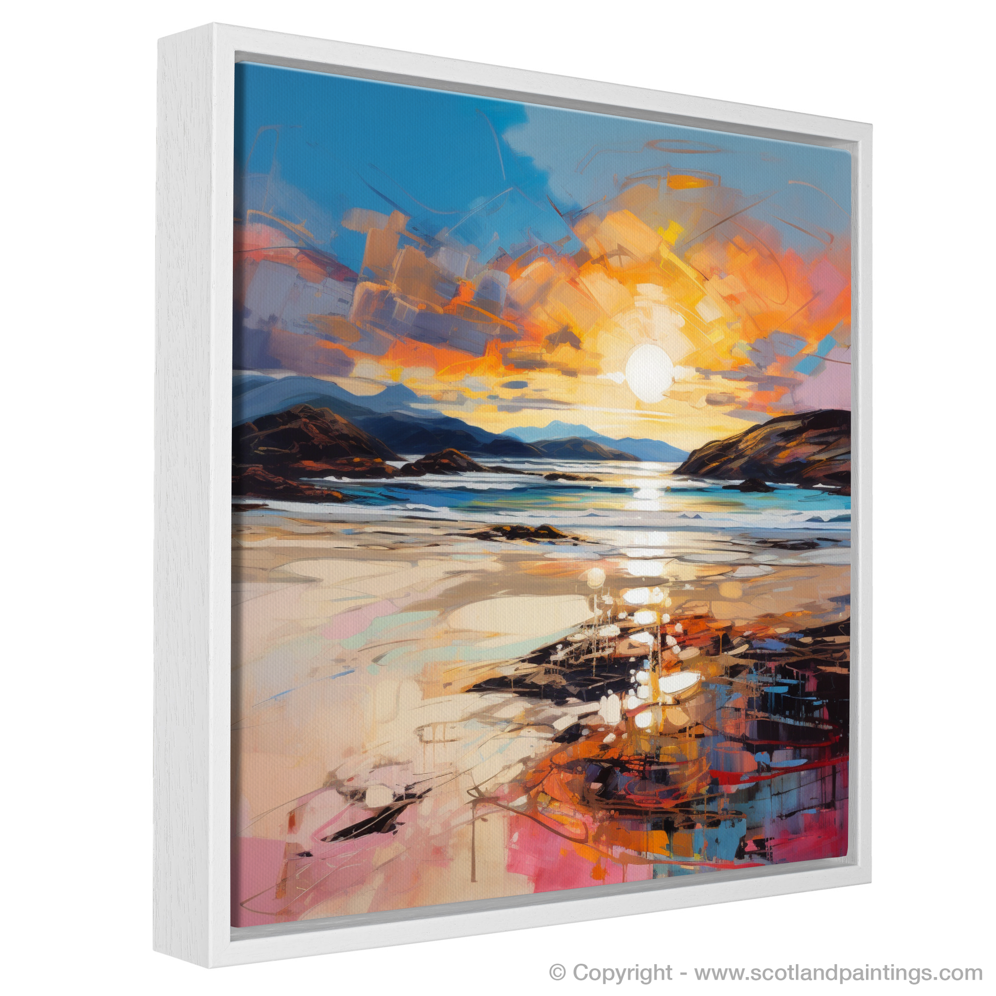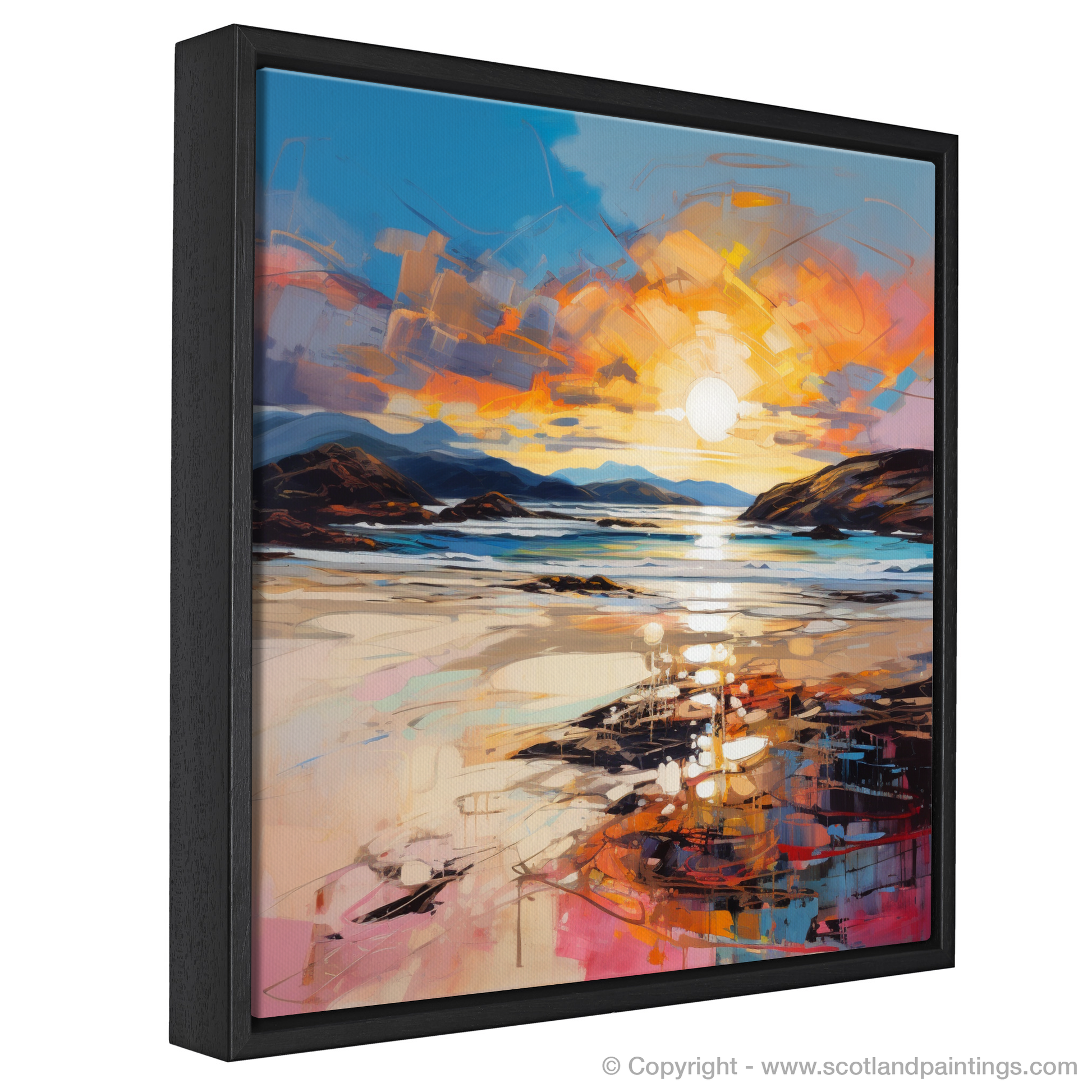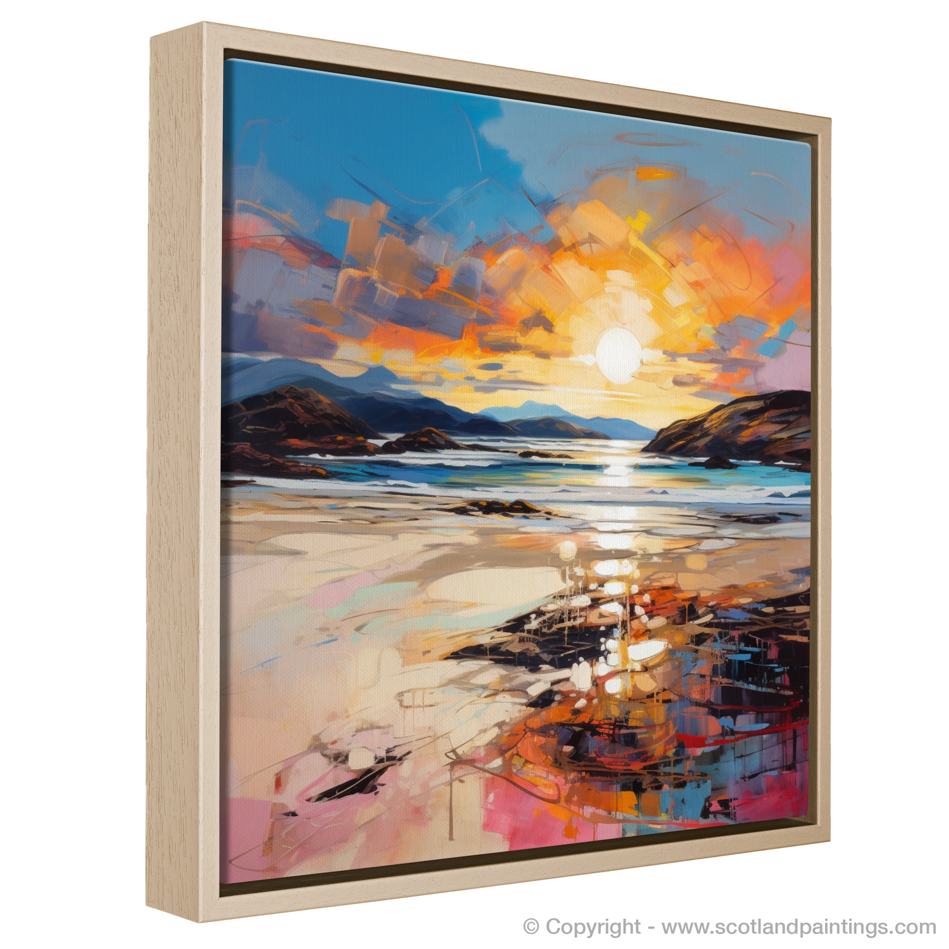 The expressive quality of the piece adds a sense of passion and vitality, making it more than a mere depiction of a location; it is a celebration of nature's ephemeral beauty. This print from our 'Scottish Beaches' collection offers a window into the soul of Traigh Mhor's landscape, promising to infuse any space with the poetic majesty of Scotland's shores at the most magical time of day.