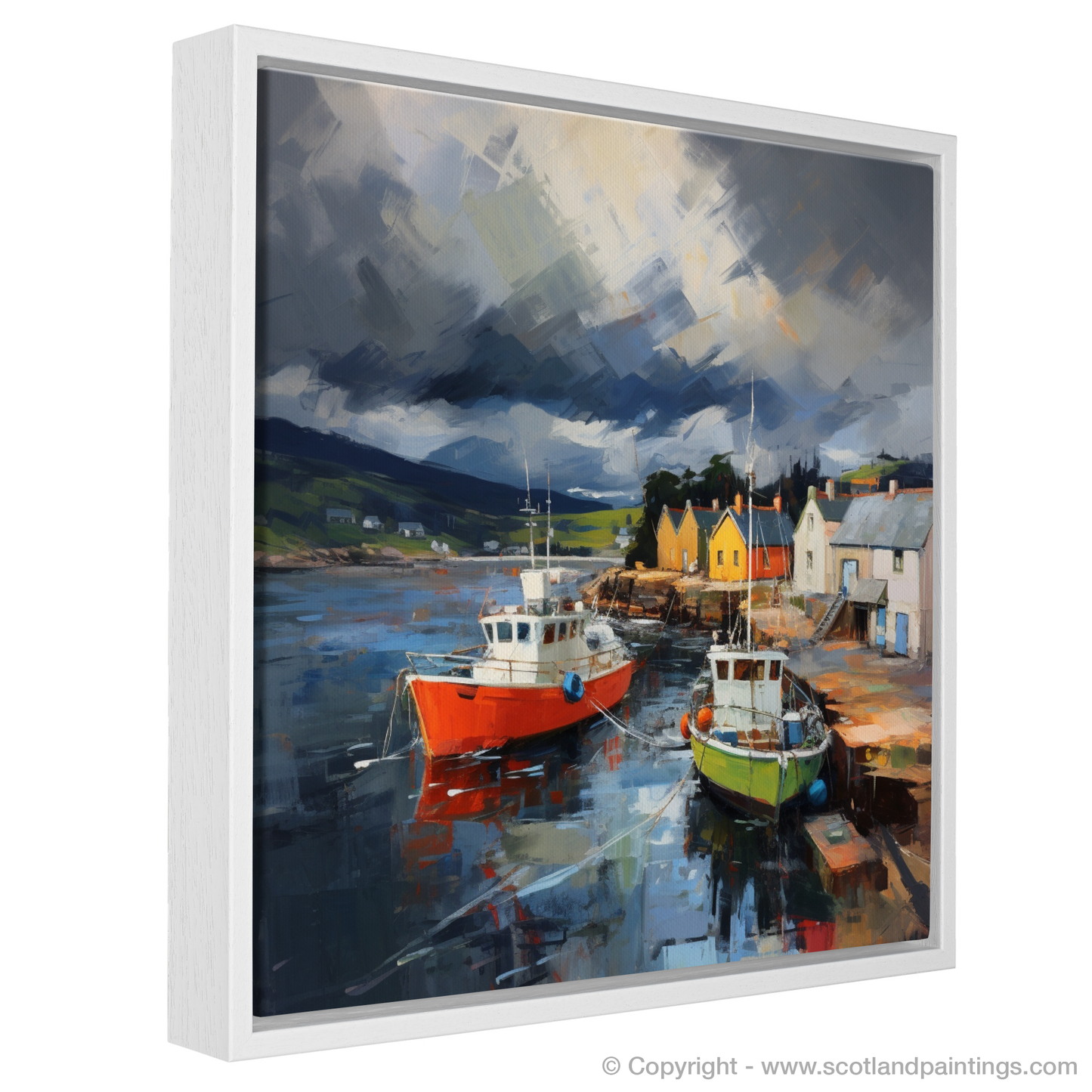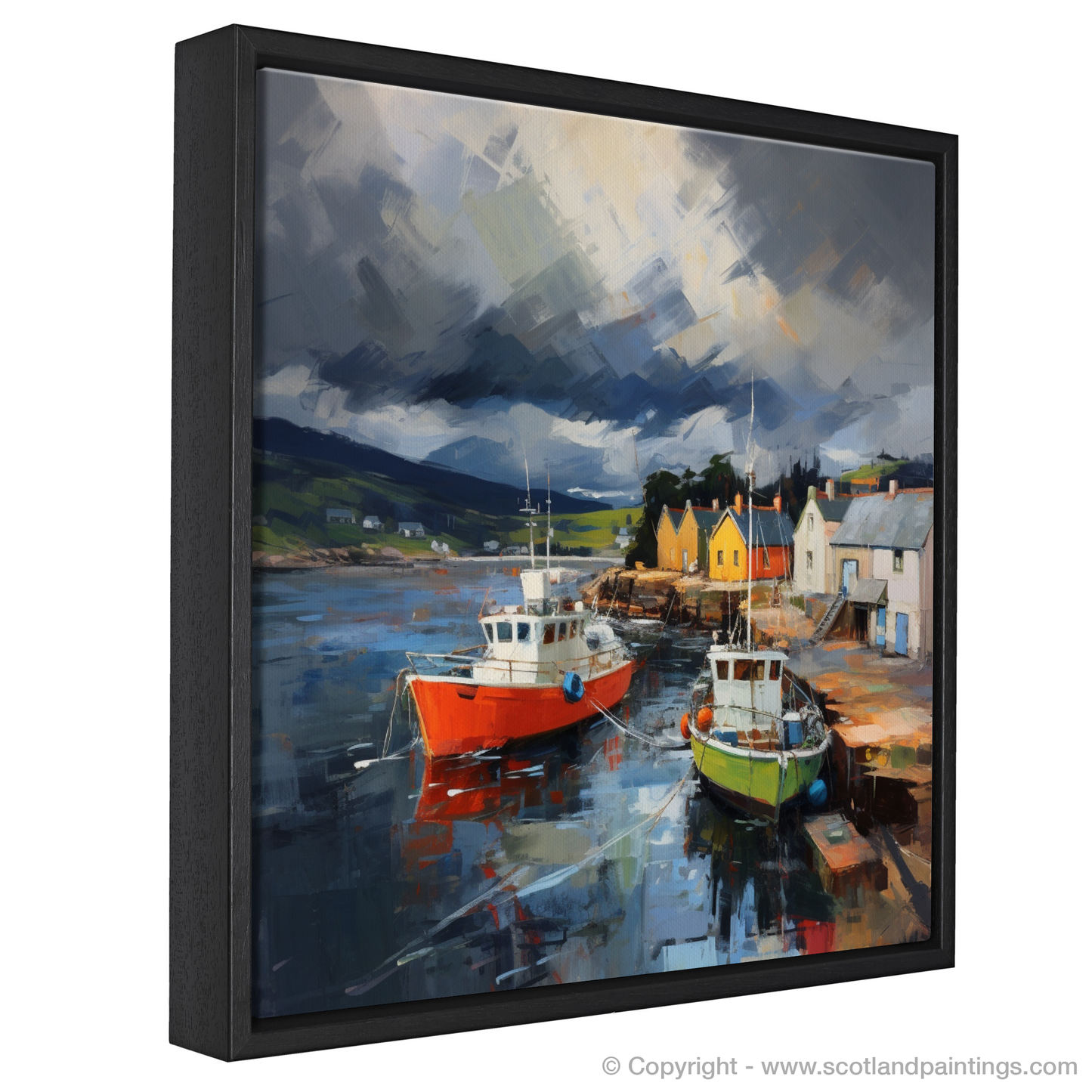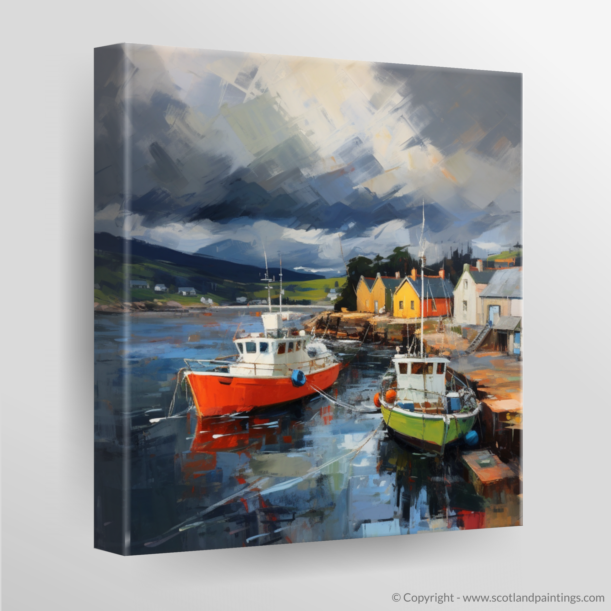 This piece, firmly rooted in the expressionist tradition, utilises a dynamic palette knife technique to imbue the scene with an impression of movement and raw emotion. The thick, impasto strokes carve into the canvas, creating a landscape that is as much about the fierce beauty of nature as it is about the resolute spirit of the coastal community it represents. This print, a part of the 'Scottish Harbours' collection, is a testament to the untamed allure of Scotland's maritime heritage, inviting viewers to experience the convergence of nature and human perseverance at the edge of the sea.