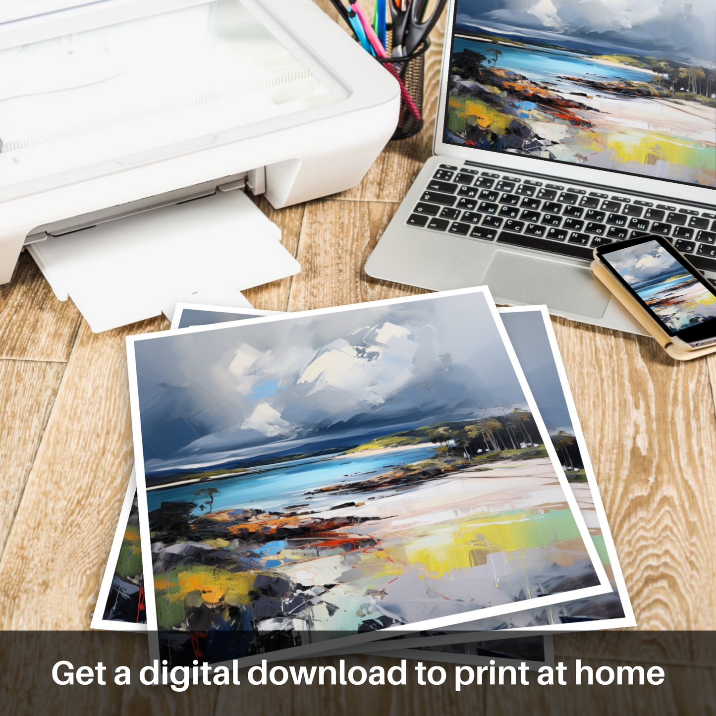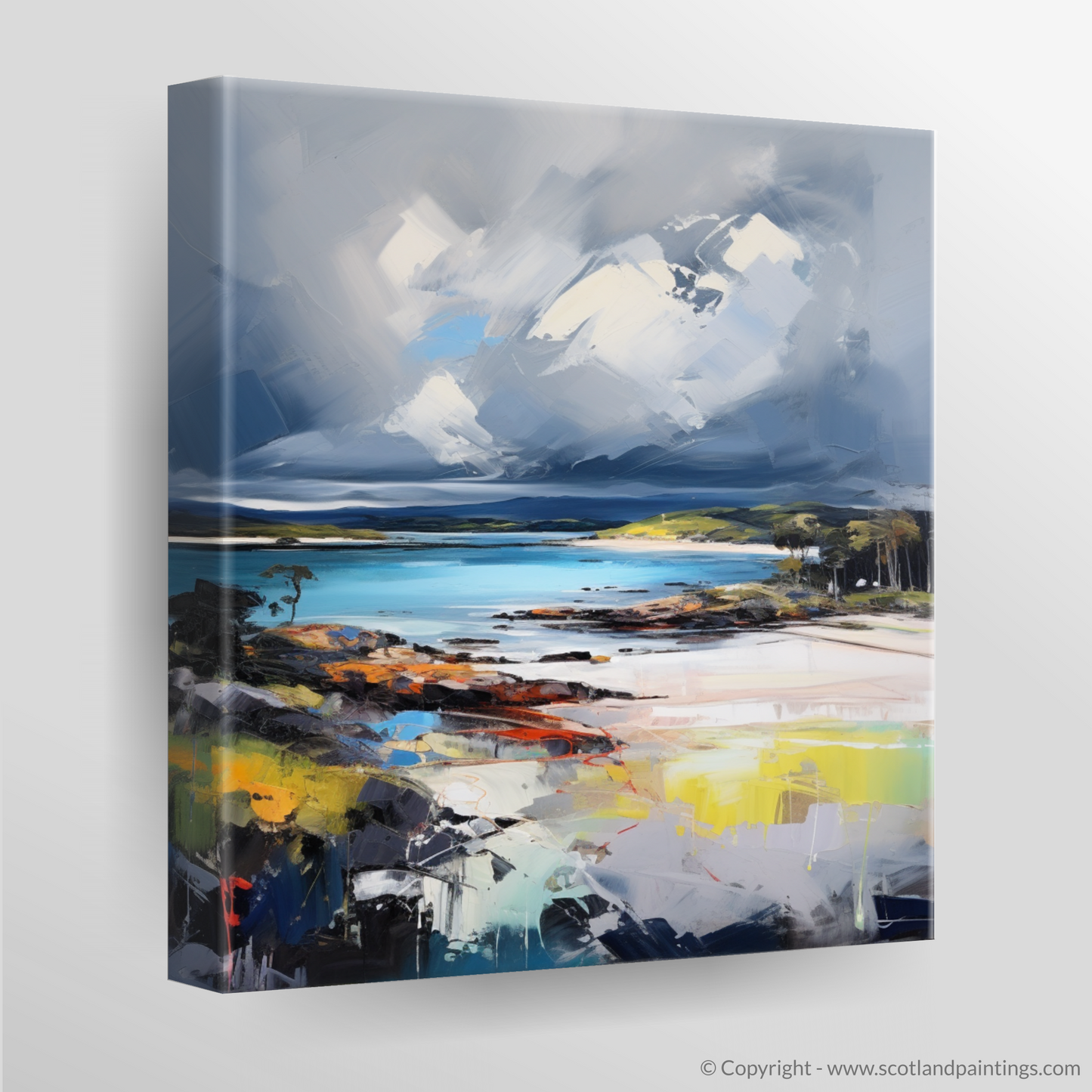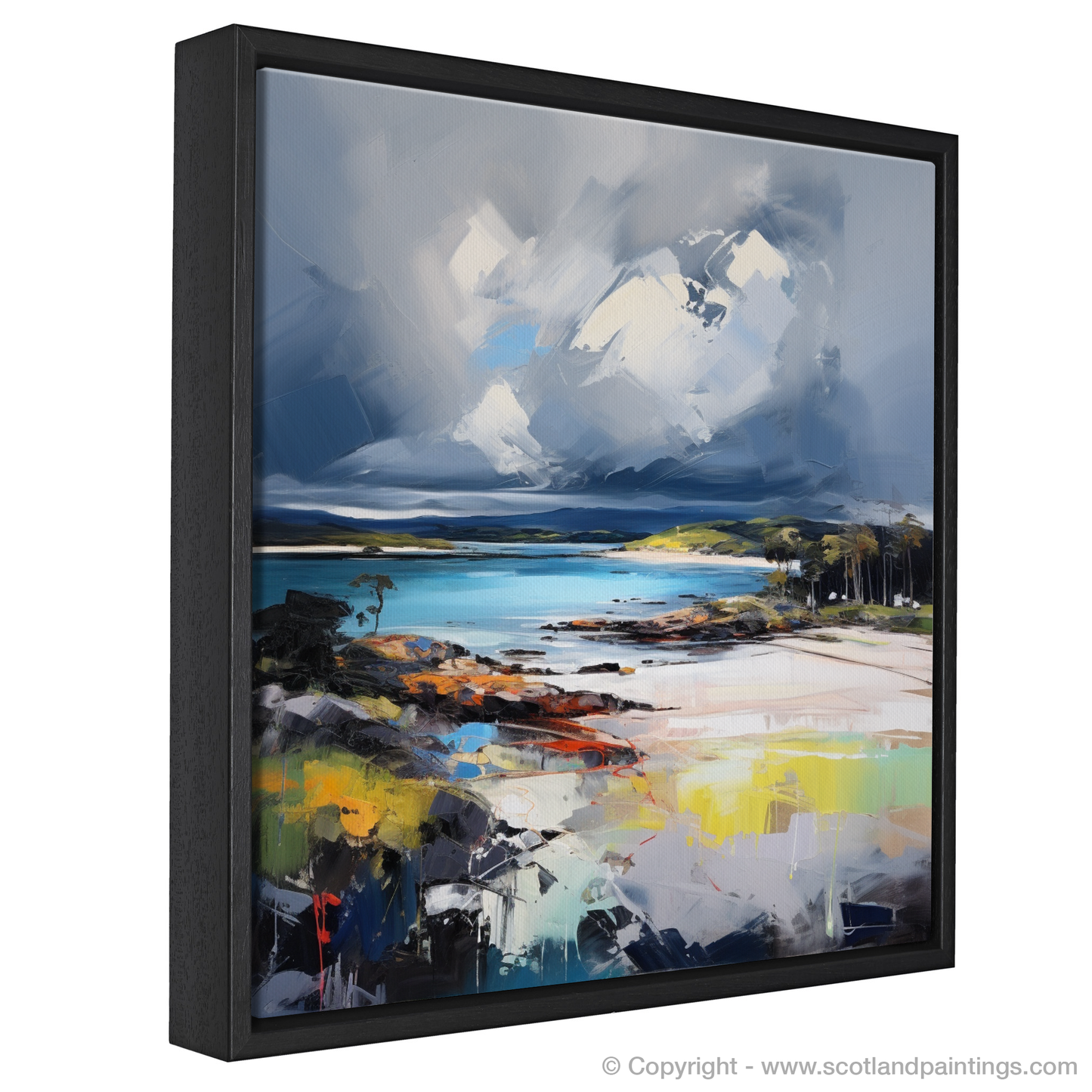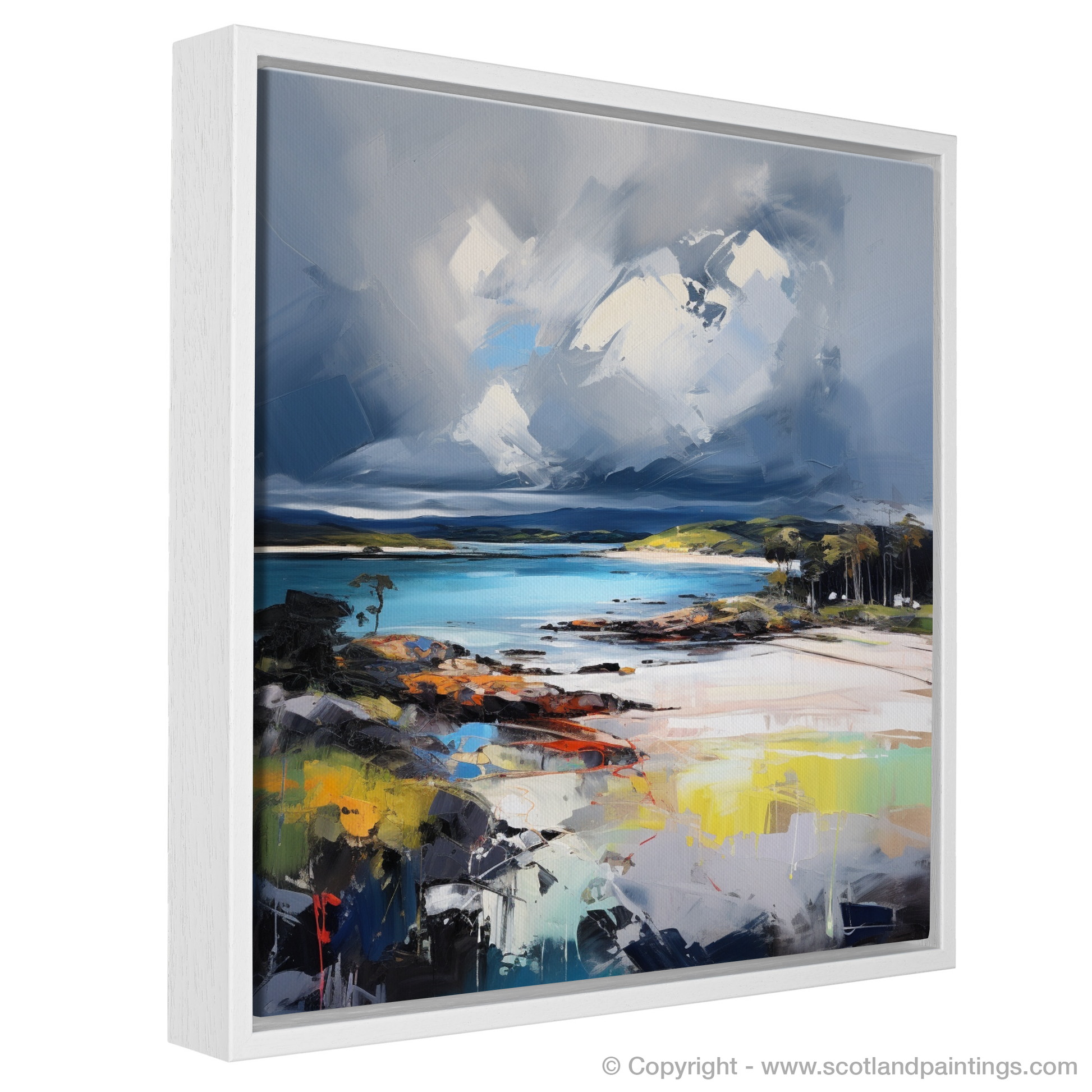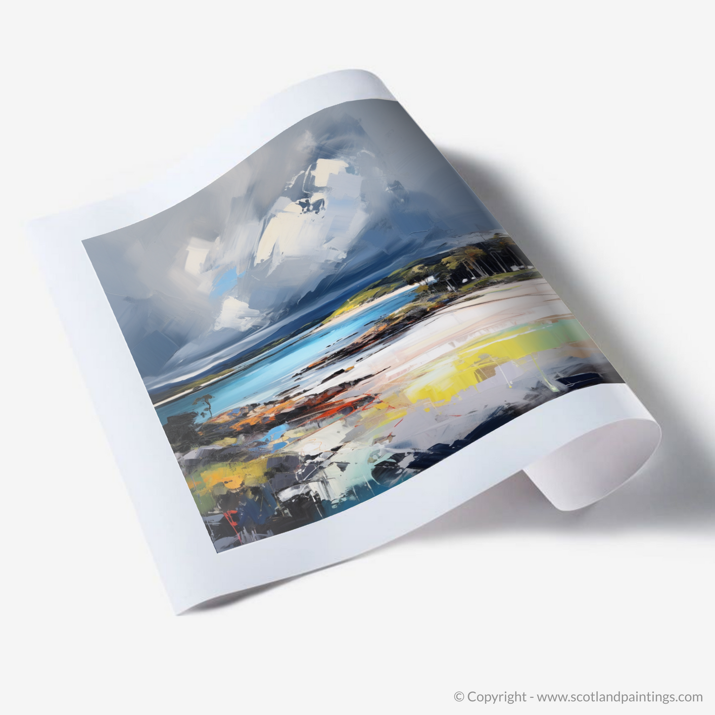 This piece is an invitation to feel the salt-laden winds and hear the distant roll of thunder, a print that doesn't just capture a location but resonates with the emotional intensity of the scene. It is a stunning homage to the wild spirit of Scottish beaches, one that will evoke contemplation and admiration in equal measure.
