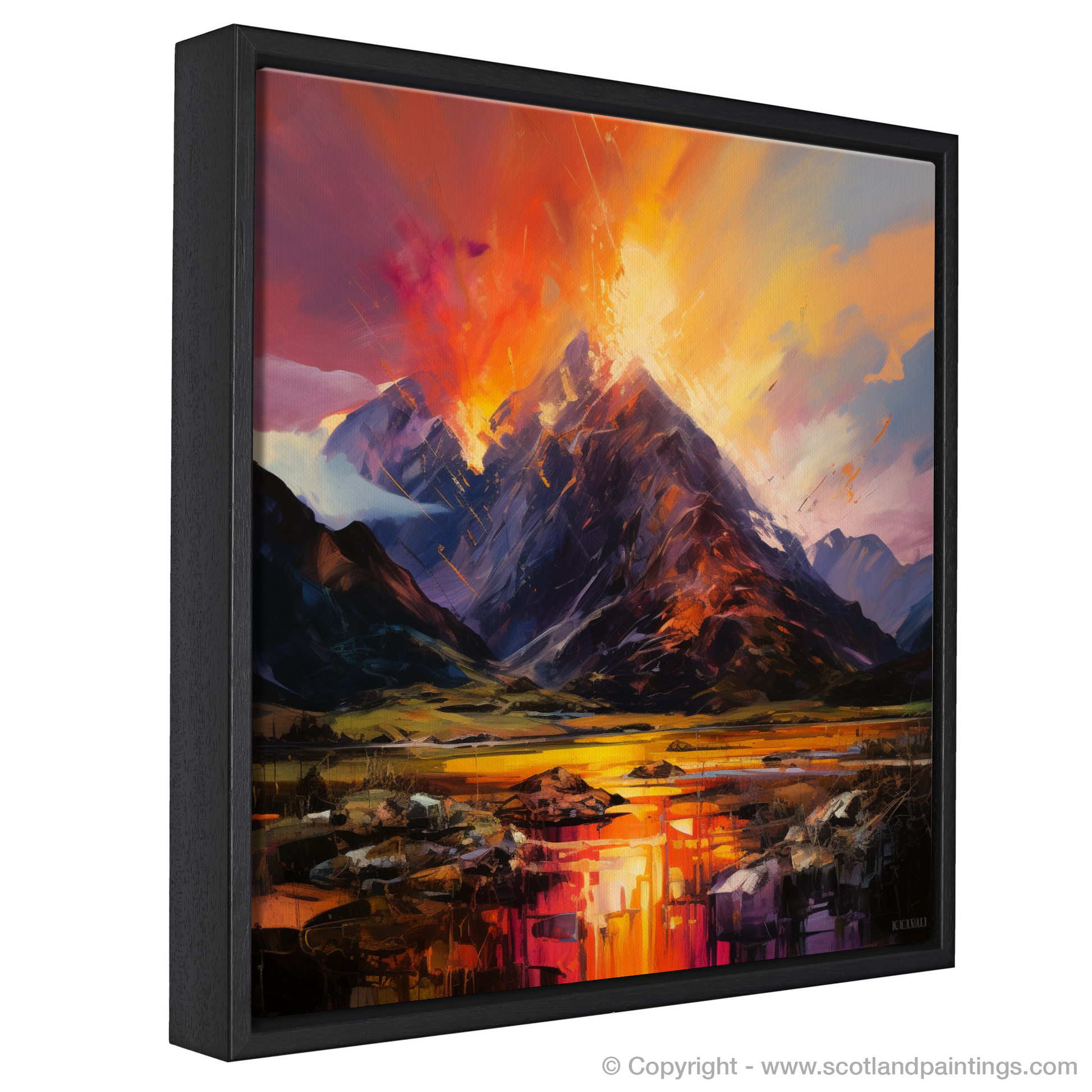 Capturing the raw emotional power of nature, this enthralling print presents a dramatic and atmospheric rendition of Glencoe, one of Scotland's most majestic landscapes. Set at a moment where the sky and earth seem to converge in a fiery display, the work is a testament to the beauty and ferocity of the natural world.