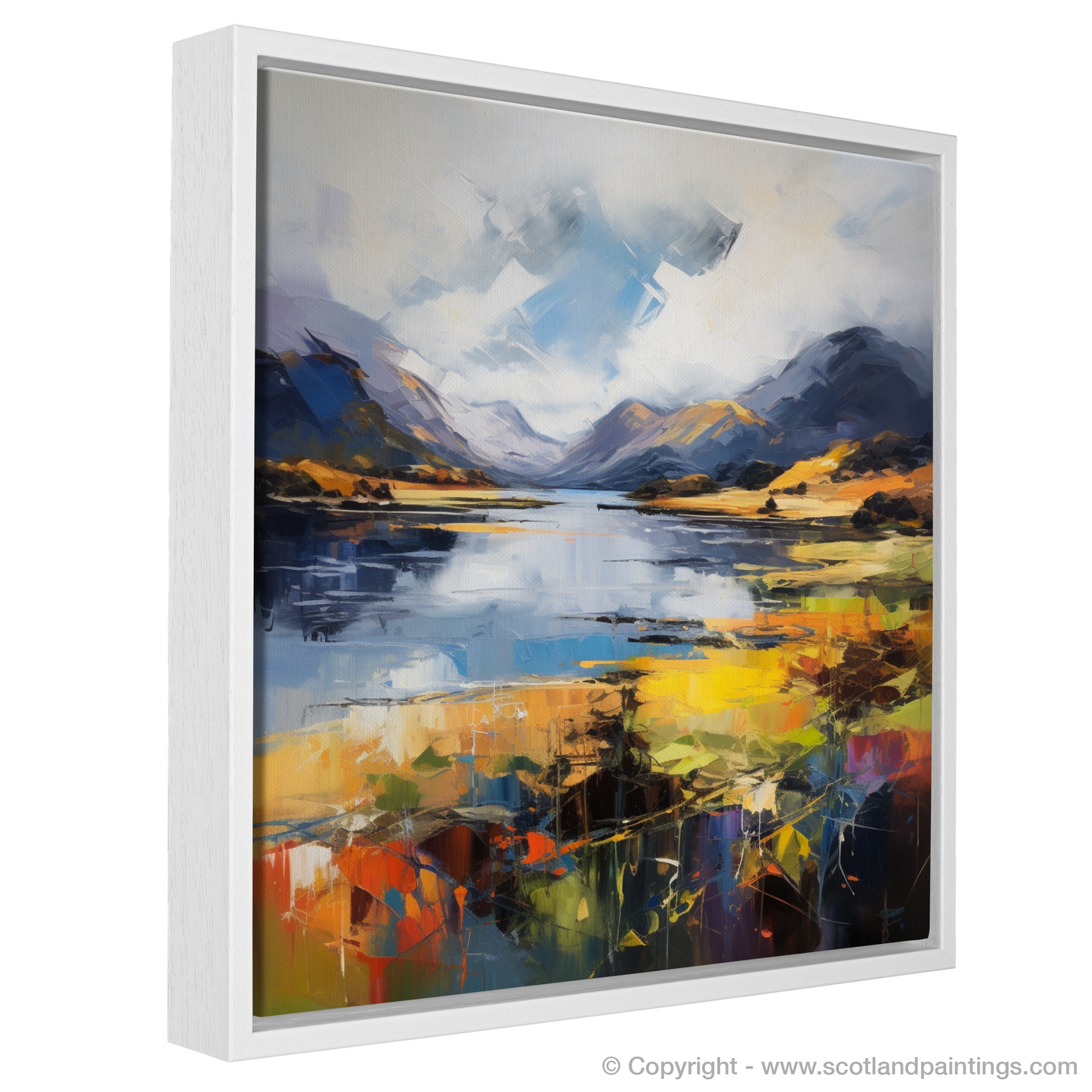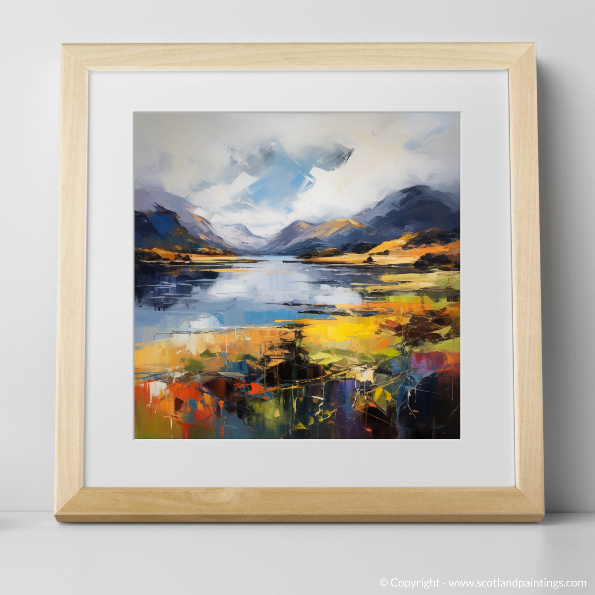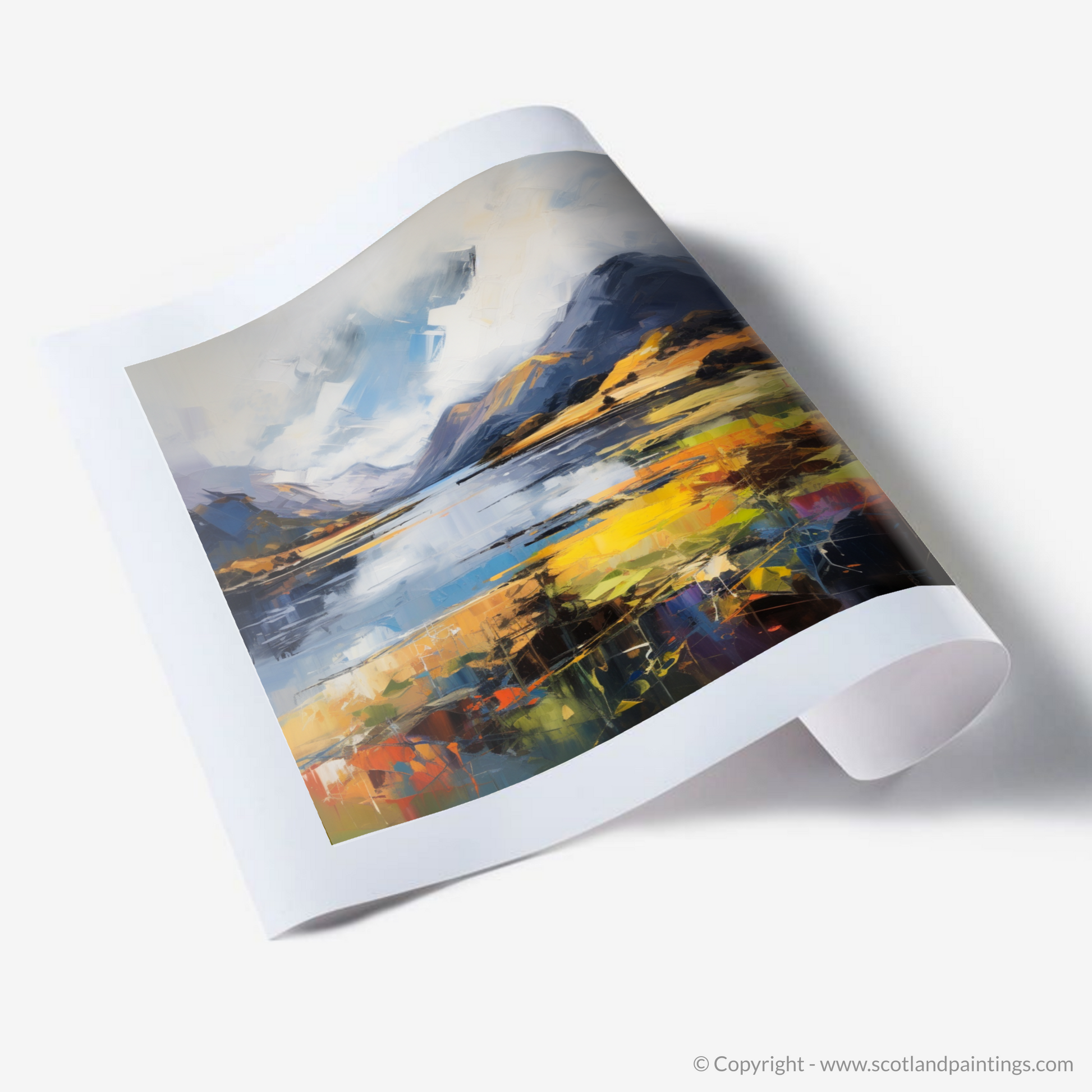 Capture the raw beauty of the Scottish Highlands with this expressive print inspired by the stunning Loch Shiel. This piece is a symphony of vibrant colour and emotion, where the tumult of the natural landscape is portrayed with bold strokes and an intense palette.