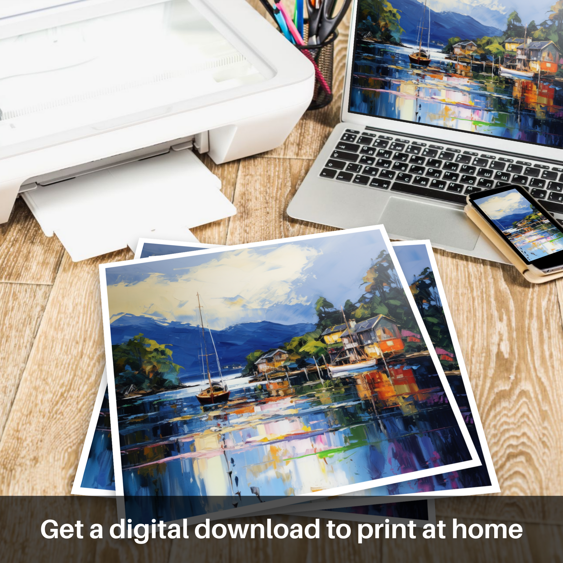 This print invites viewers to experience Balmaha Harbour through an expressionist lens, where emotion and sensation triumph over realism, and where the beauty of Scotland's natural harbours is reimagined with a passionate, artistic vision.