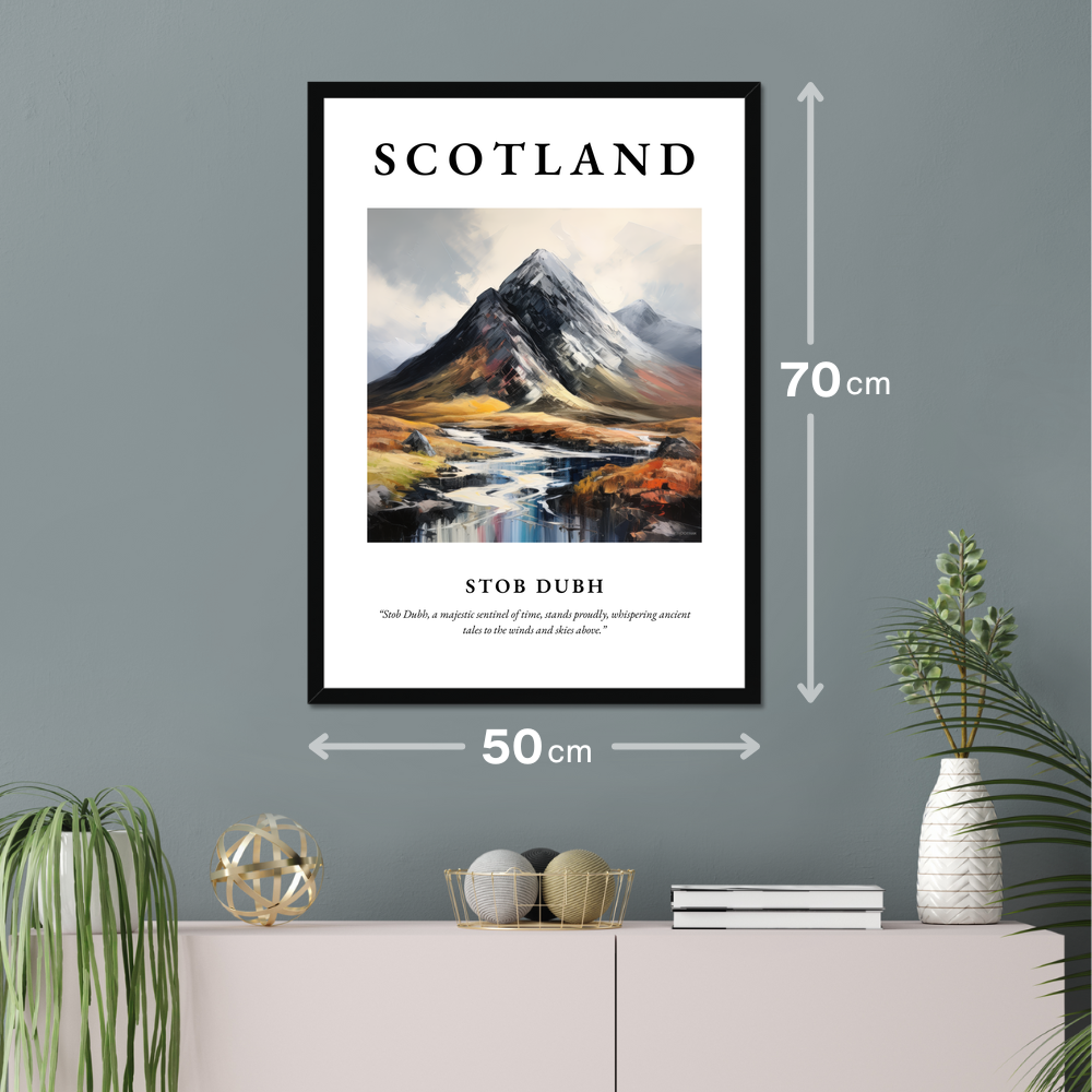 Transform your living space with our magnificent 50cm x 70cm framed poster print, a visual homage to the rugged beauty of Scotland’s Stob Dubh. Part of the exclusive "Scottish Munros" collection, this large wall art accentuates any room with its striking design that doesn't break the bank. Elegantly framed in your choice of black, white, or natural wood-effect finishes, it’s a timeless piece that appeals to art lovers and Scotland enthusiasts alike.
