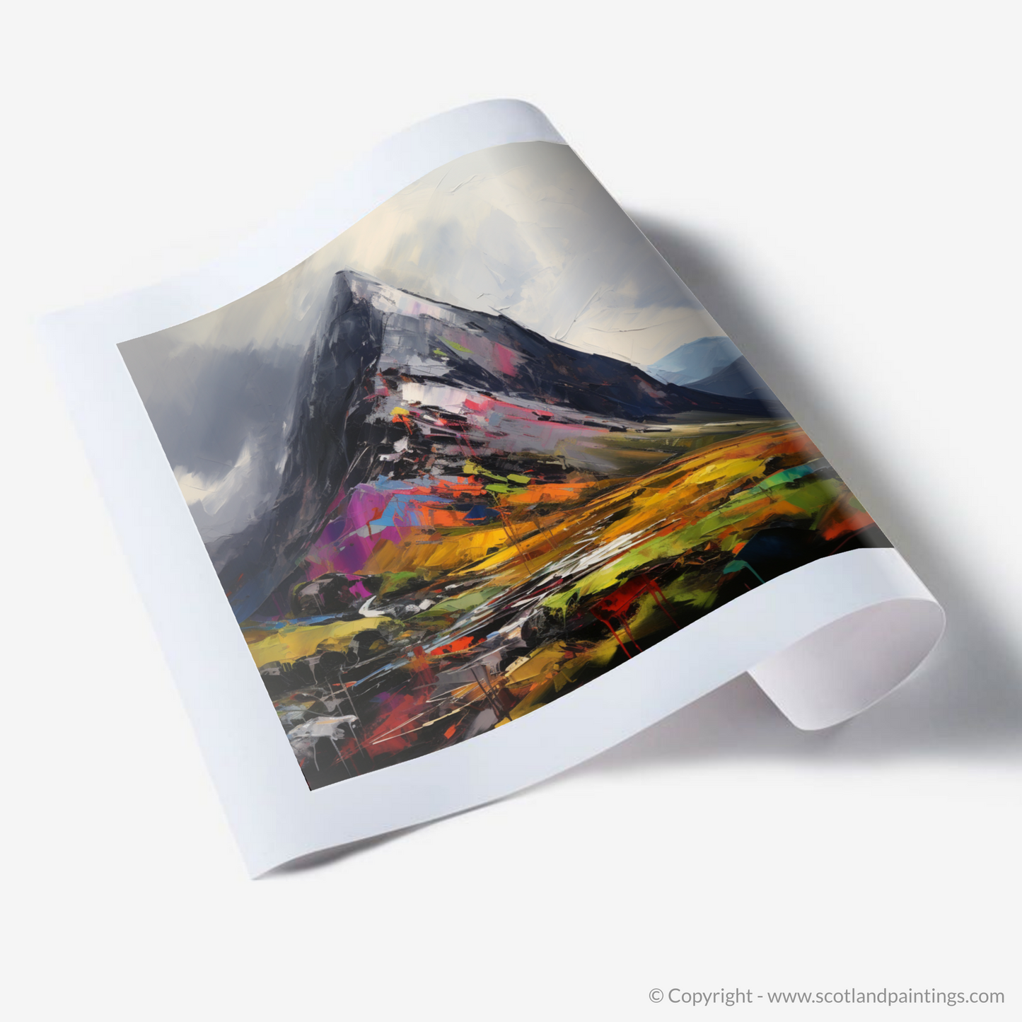 This expressive rendition of Stob Dubh is a part of our 'Scottish Munros' collection, a tribute to the timeless beauty of Scotland's mountainous landscapes. It beckons the viewer to experience a sensorial journey through the Highlands, with each brushstroke echoing the raw, natural energy of this ancient and mystical land. It is a print that offers more than just a view but an experience, a piece that will surely be a conversation starter and a source of inspiration in any space it inhabits.