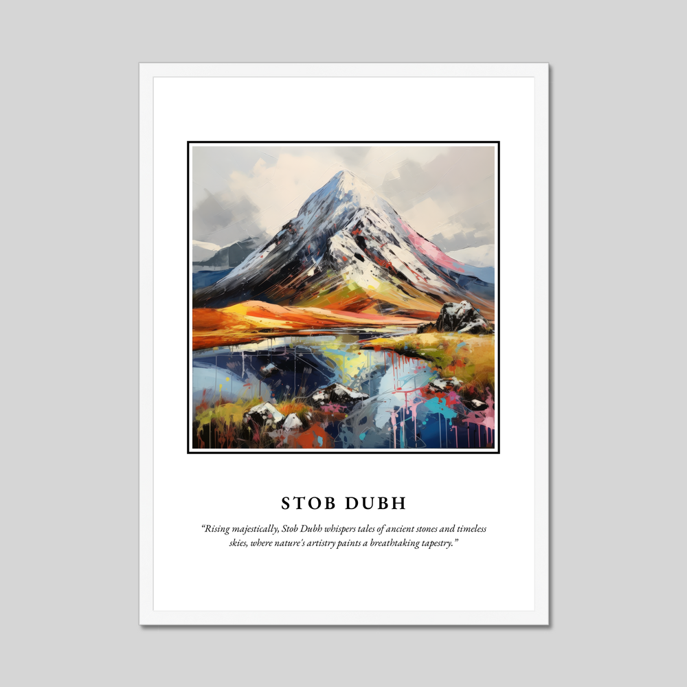 This framed print is more than just a piece of art; it's a reminder of the untamed beauty and historic depth of Scotland. Whether you’ve visited Stob Dubh or simply dream of its grandeur, this artwork will transport you to the heart of the Highlands, where every glance uncovers a new story waiting to be told.