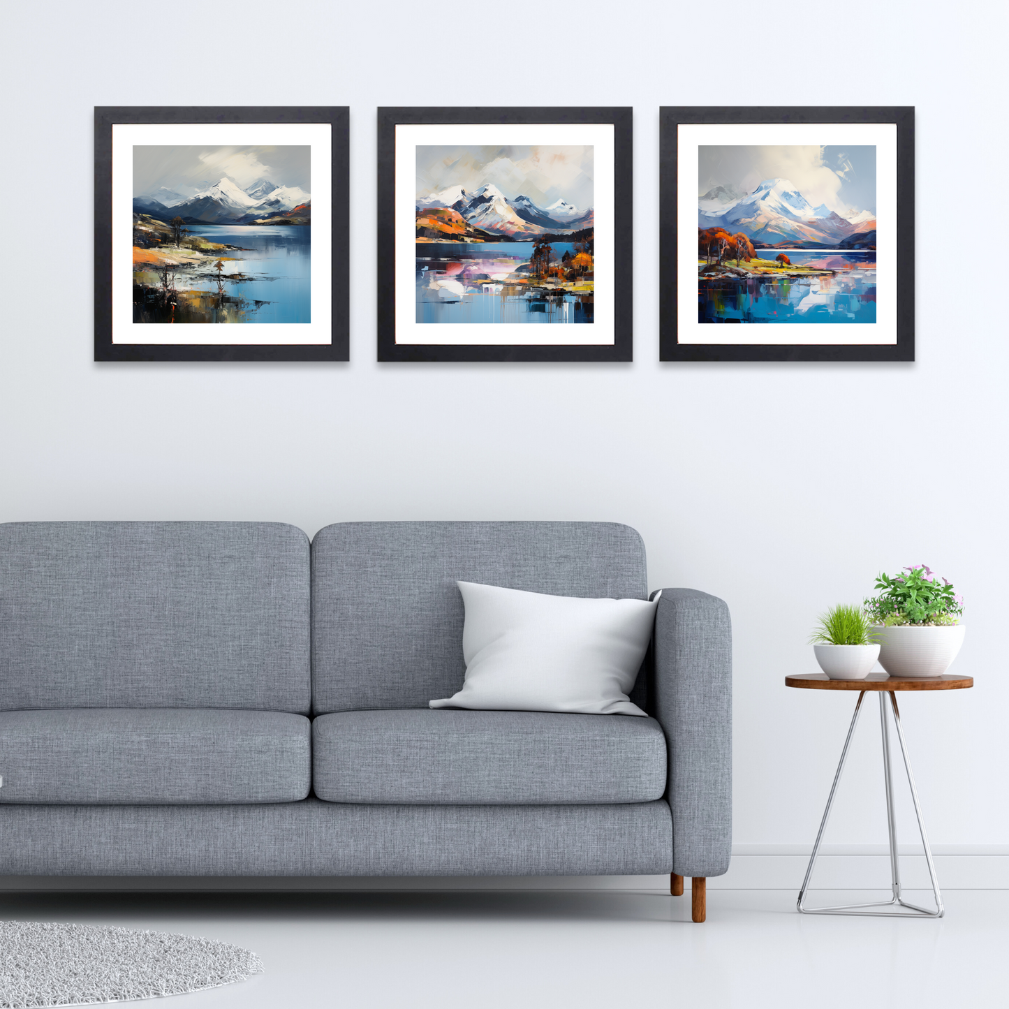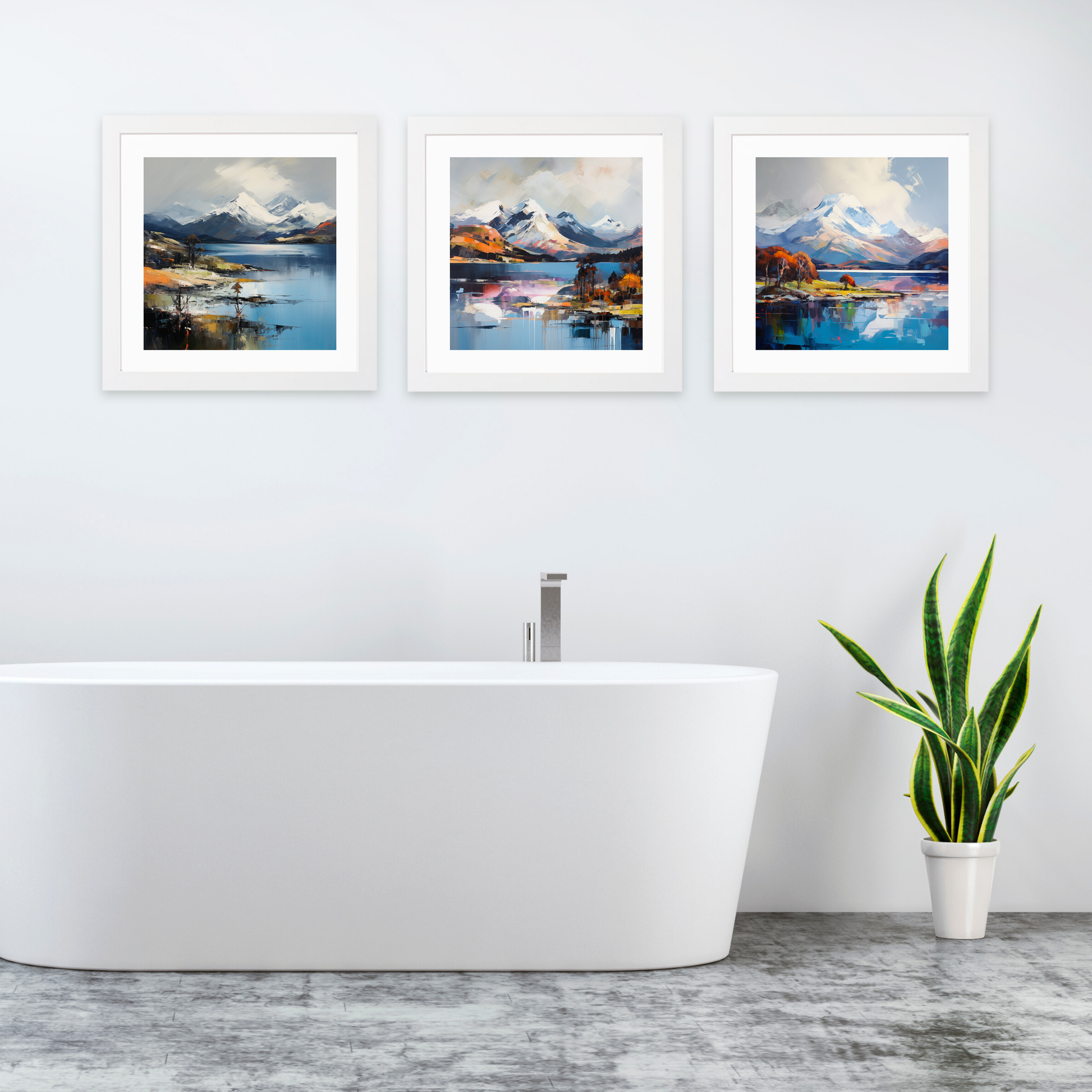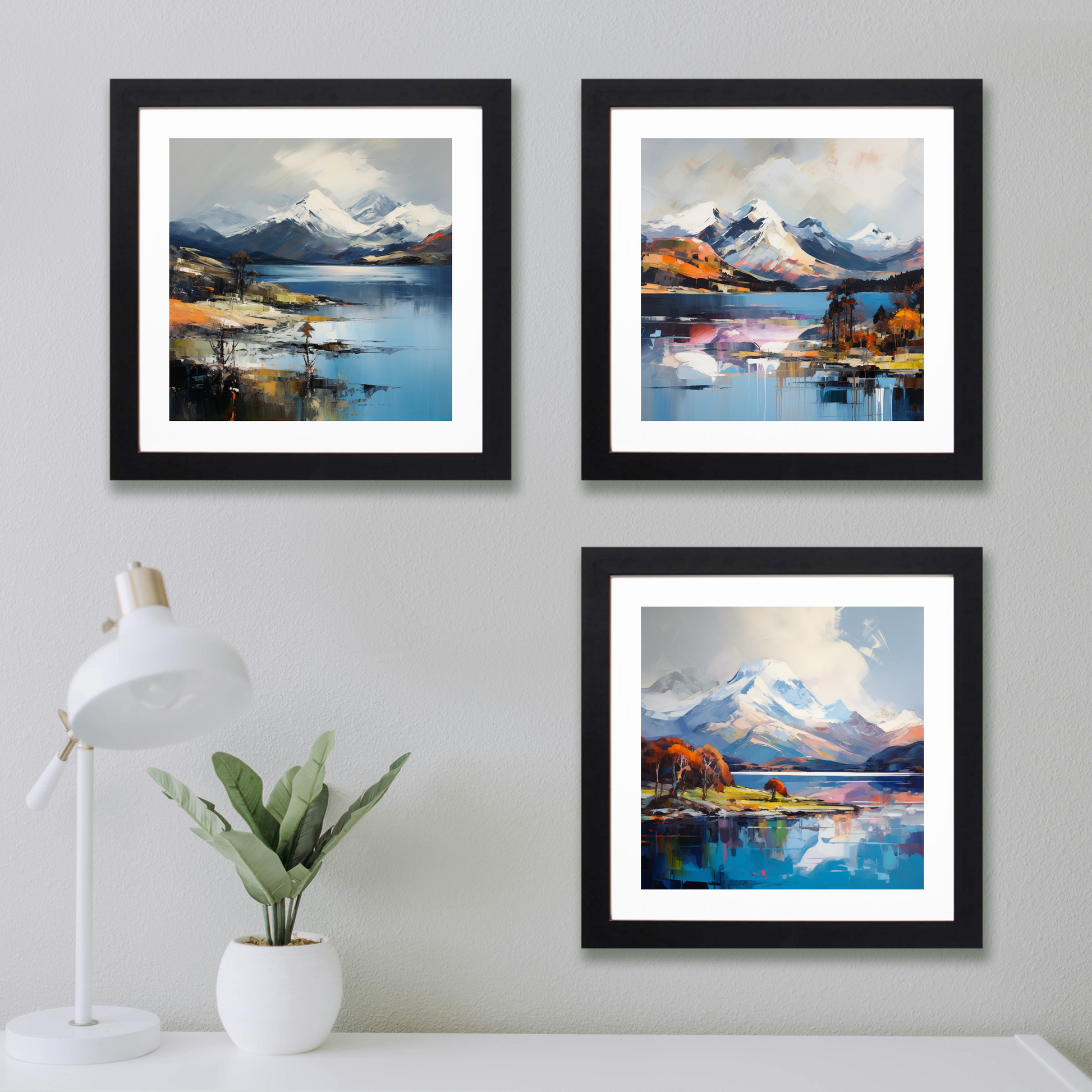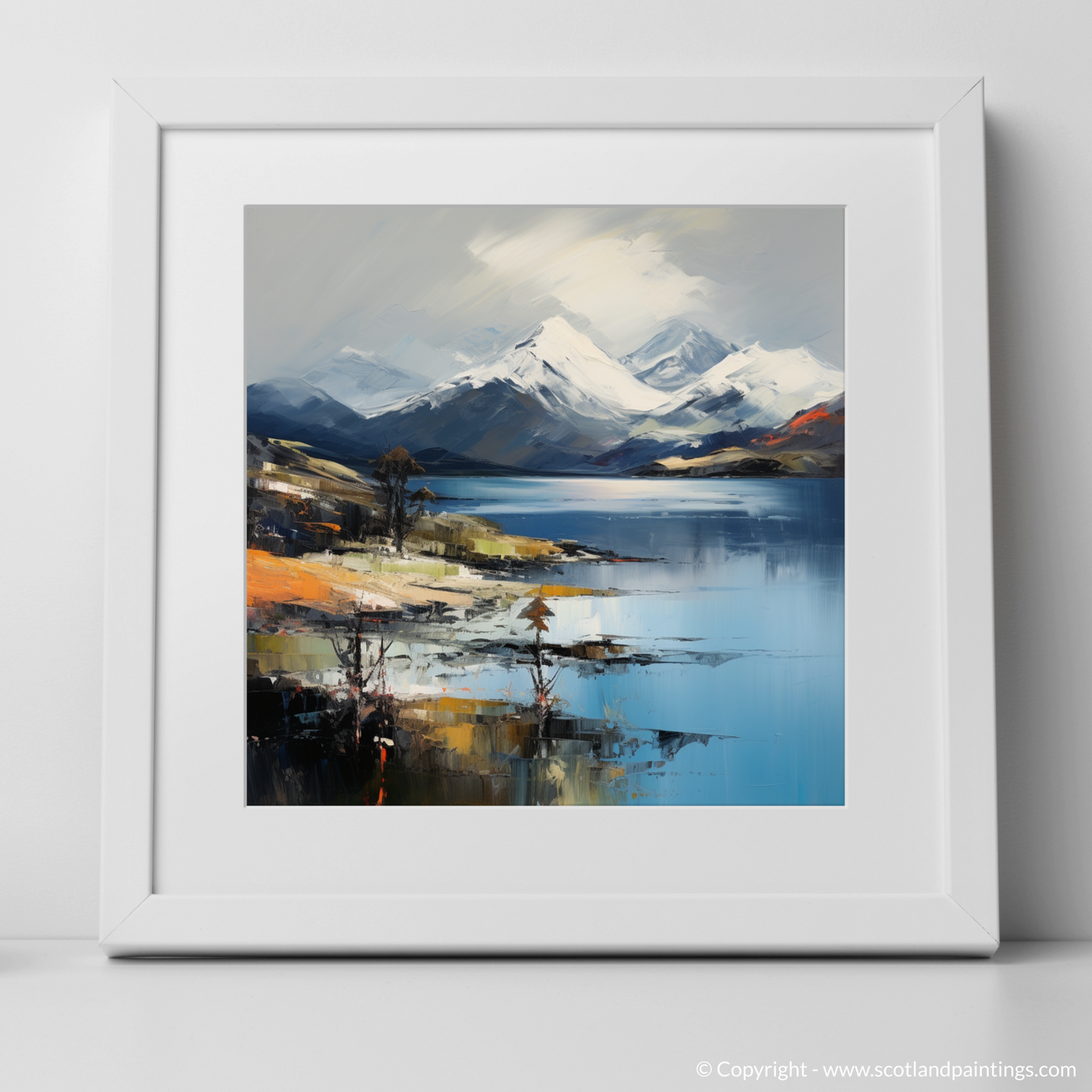 **Discover the enchanting beauty of the Highlands with our Loch Lomond Collection framed prints, exclusively at ScotlandPaintings.com. This exquisite set of three showcases stunning snow-capped peaks gently watching over the tranquil waters of Loch Lomond, capturing the serene and majestic allure of Scotland's breathtaking landscapes.**