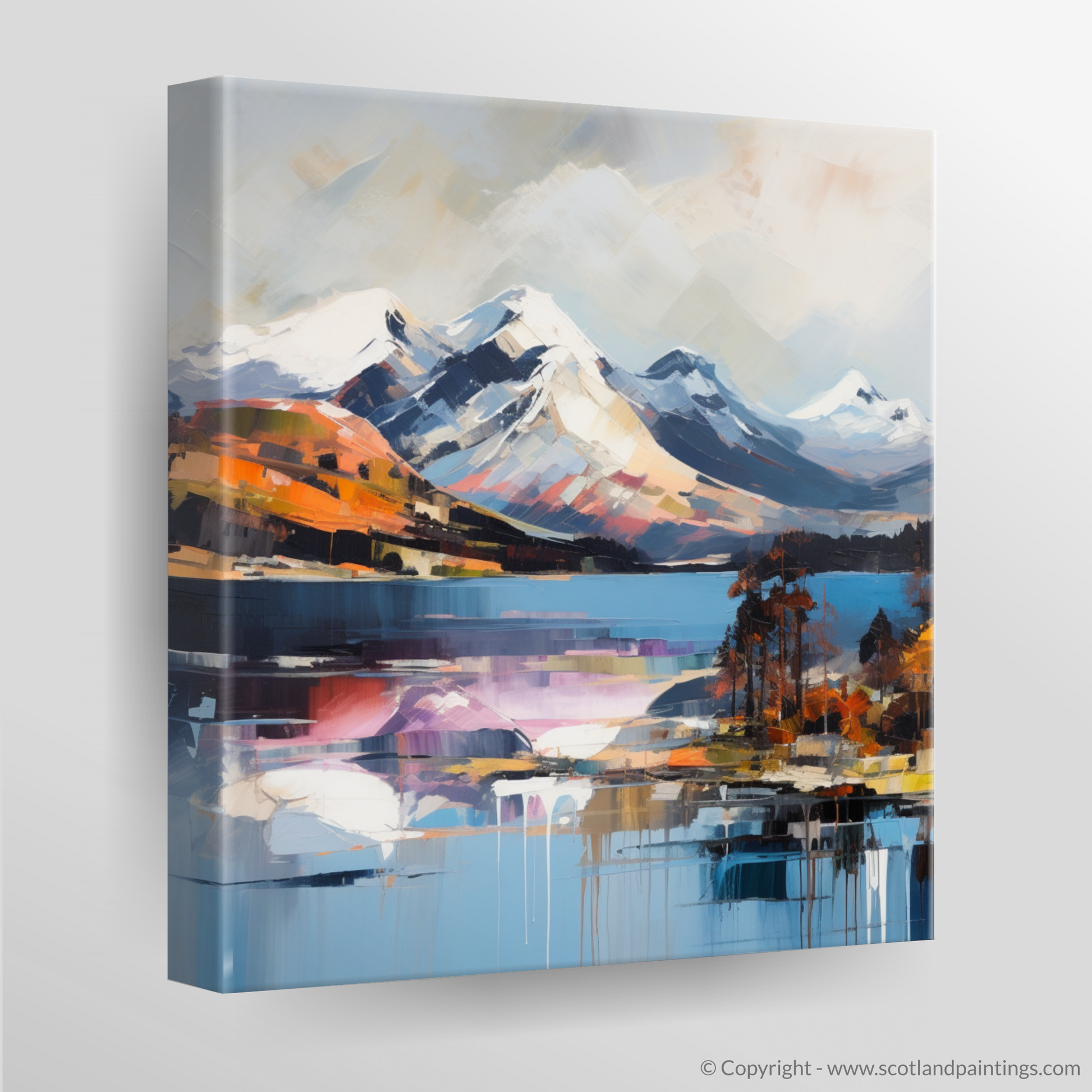 Painting and Art Print of Snow-capped peaks overlooking Loch Lomond entitled "Expressionist Majesty: Snow-capped Peaks Over Loch Lomond".