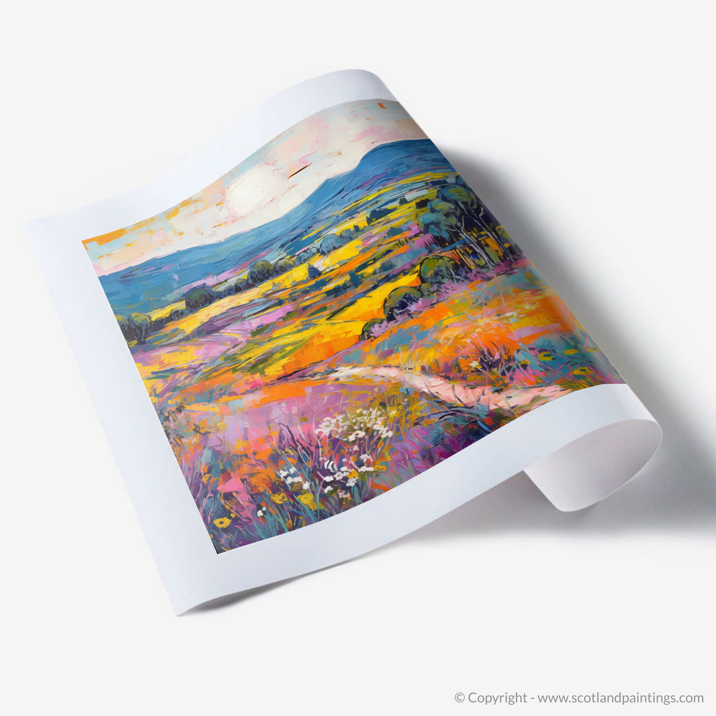 The print's gestural brushwork and textured application of paint amplify its abstract quality, while still evoking the unmistakable allure of Scotland's rural scenery during the most verdant season. This piece would make a striking addition to any space, infusing it with the warmth and vitality of a Scottish summer.