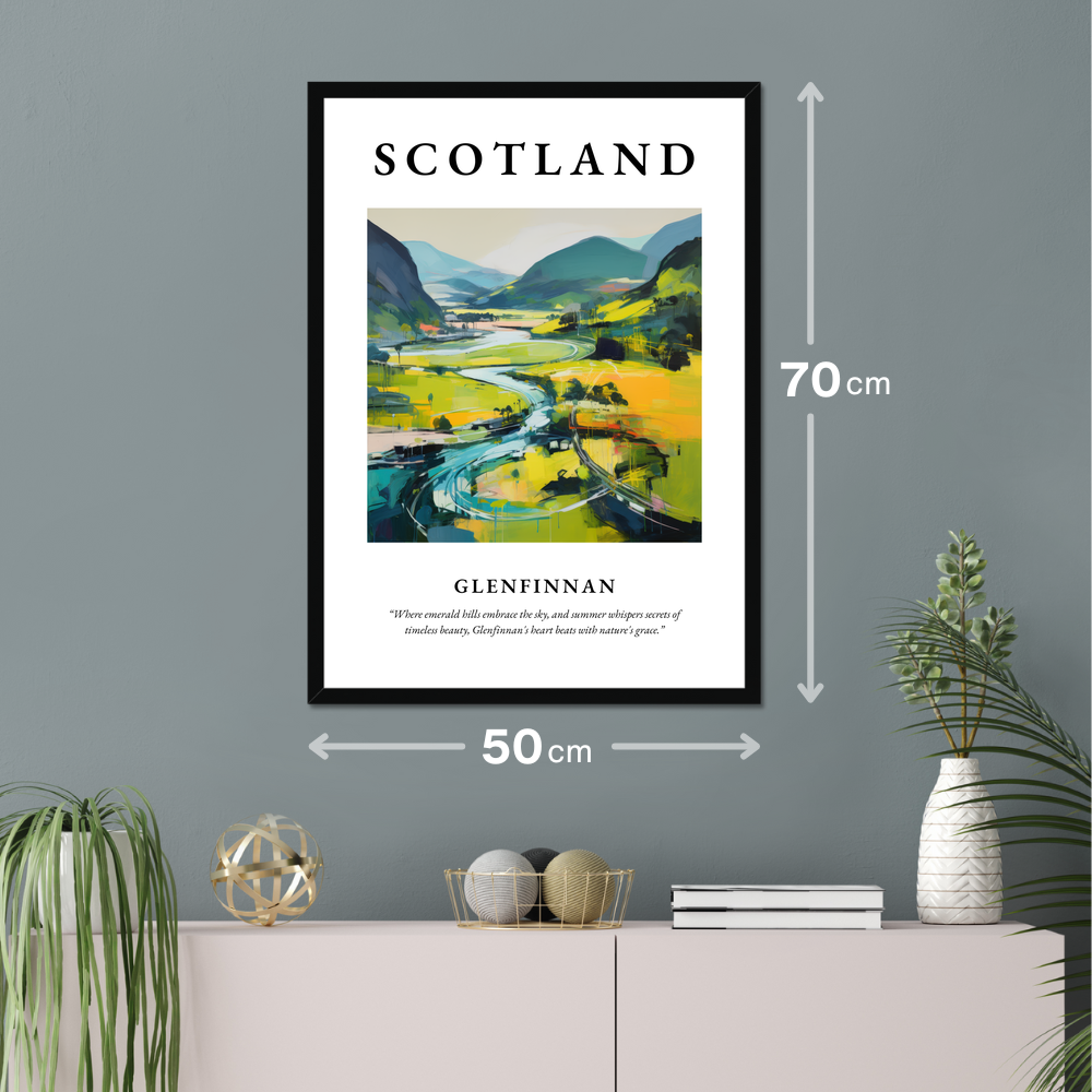 Transform your space with a striking piece from our "Scotland in Summer" collection, featuring a captivating, modern rendition of Glenfinnan. This large 50cm x 70cm poster commands attention, making it an affordable way to cover a significant wall area while infusing your room with elegance and cultural richness. Available in black, white, or a natural wood-effect frame, it seamlessly integrates into any décor style, ensuring your wall becomes a conversation starter.
