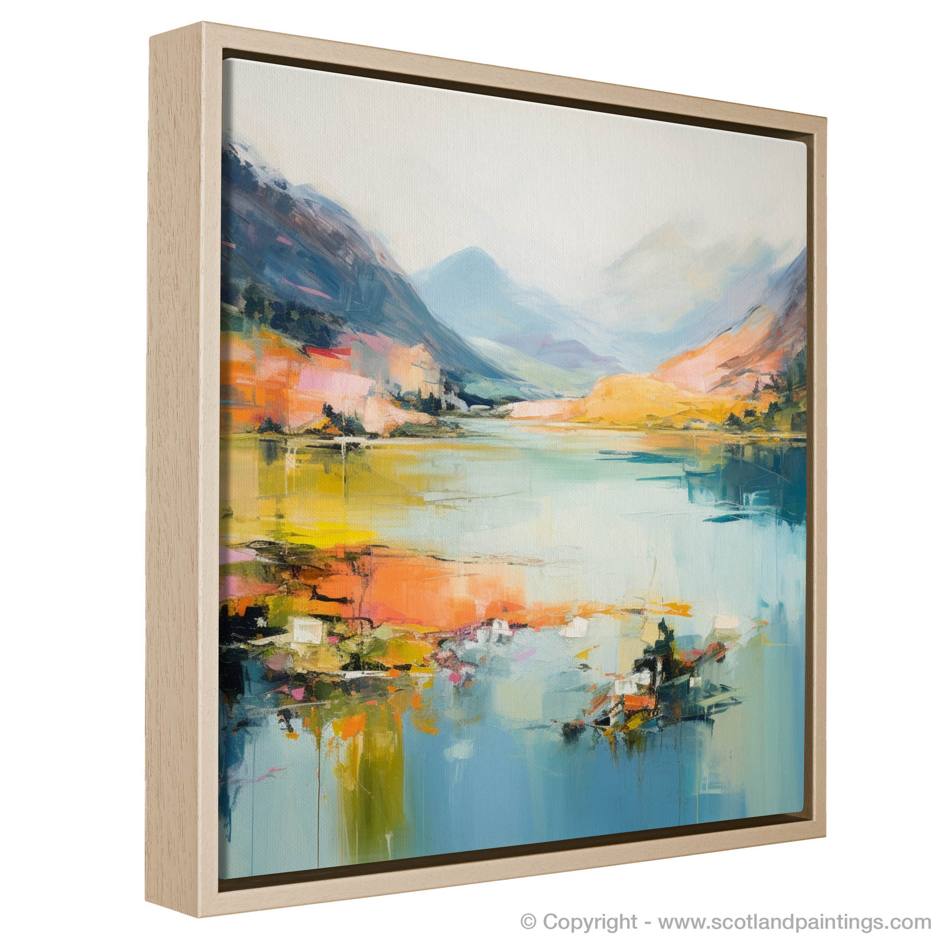 This captivating abstract print invites viewers into the heart of the Scottish Highlands with a vivid portrayal of Loch Morar in the height of summer. The artwork pulses with vitality, showcasing a symphony of vibrant, almost incandescent hues that suggest the warmth of sunlight bathing the landscape.