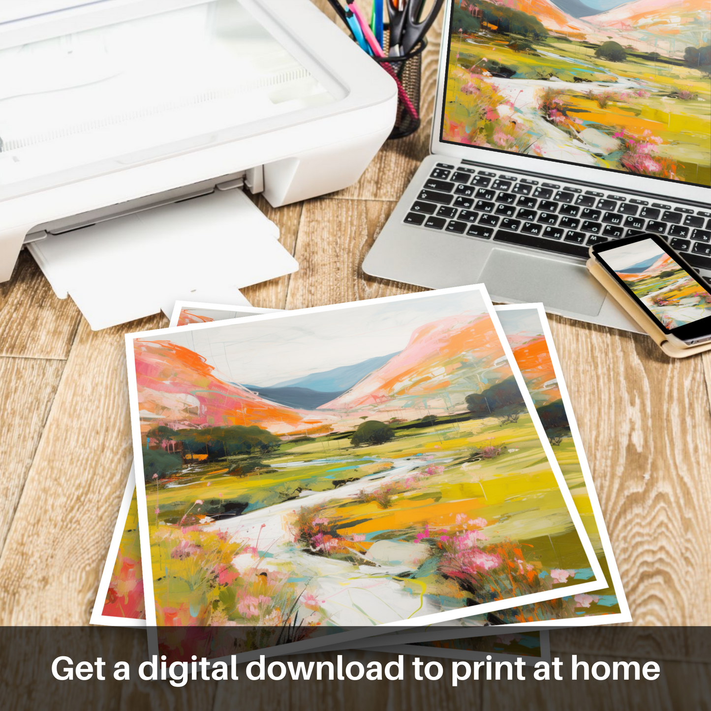 This contemporary interpretation of Glen Roy encapsulates the essence of Scotland's summer splendour, offering a window into a world where nature's palette is both vivid and endlessly inspiring. Whether it evokes memories or fuels the imagination, this print promises to be a stunning visual statement on any wall, inviting viewers to lose themselves in the untamed beauty of the Highlands.