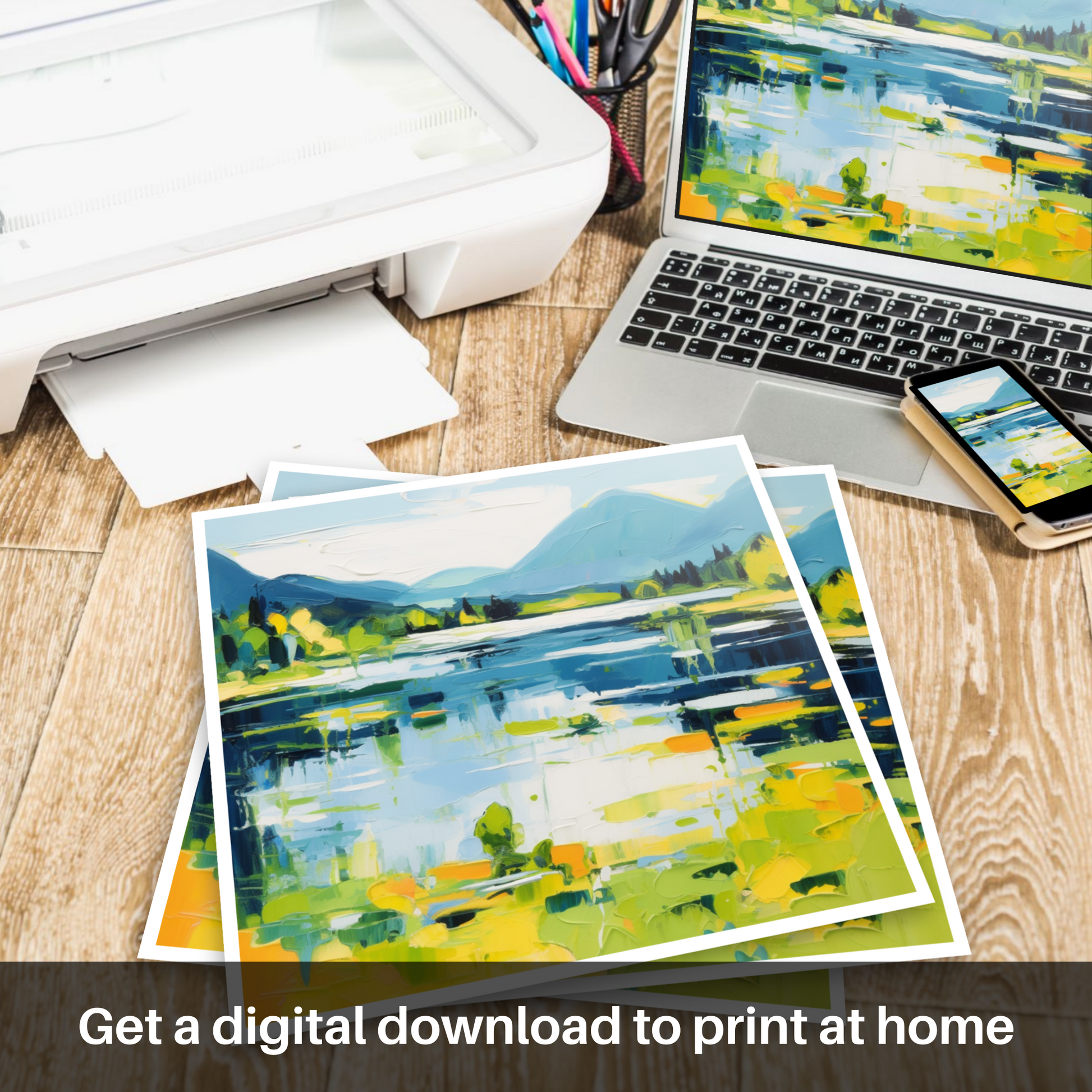 Painting and Art Print of Loch Achray in summer. Abstract Serenade of Loch Achray in Summer Splendour.