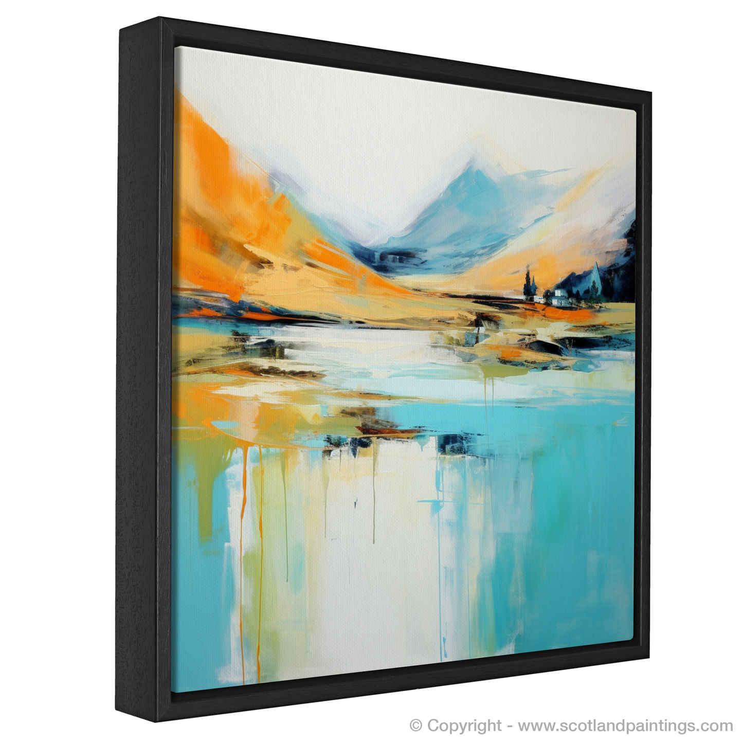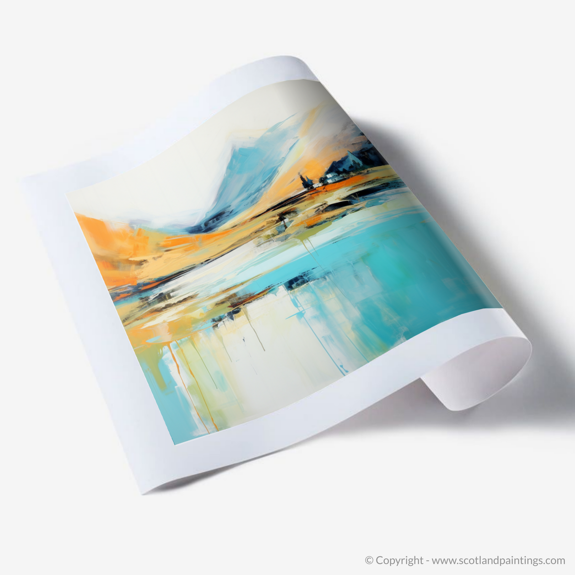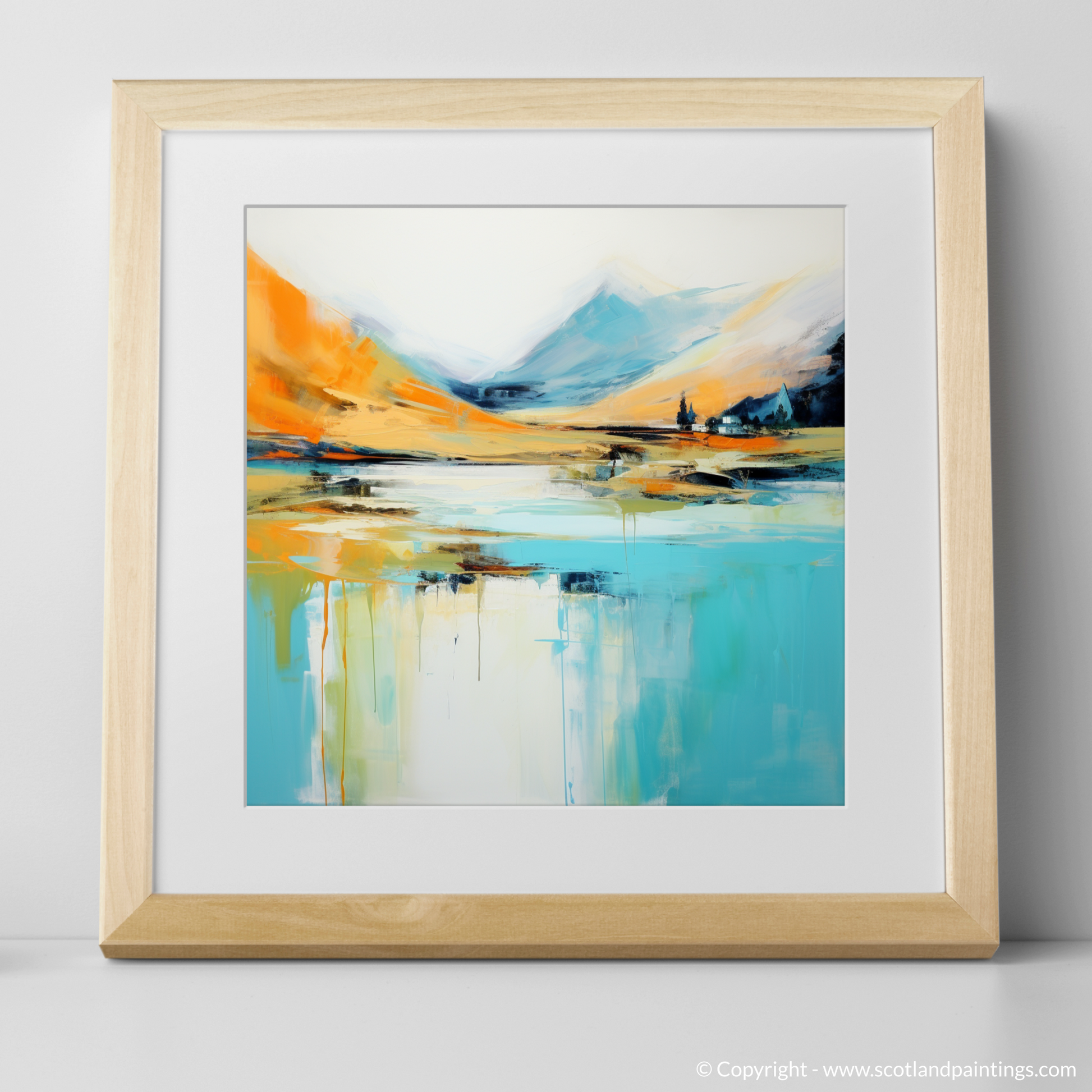 Capturing the essence of a Highland summer, this evocative abstract work brings the vibrant energy and natural splendour of Glenfinnan to life. With a harmonious palette that blends warm oranges, soothing blues, and subtle hints of white and black, the print offers a dynamic interpretation of the Scottish landscape's rugged beauty.
