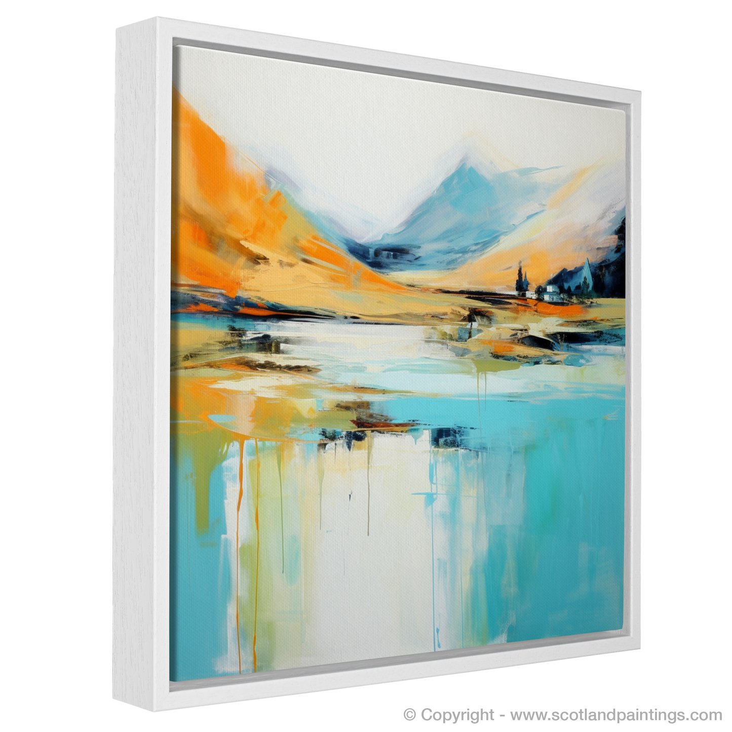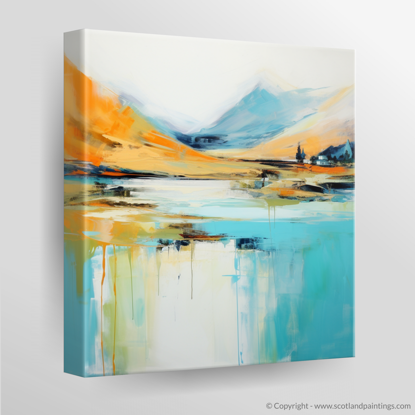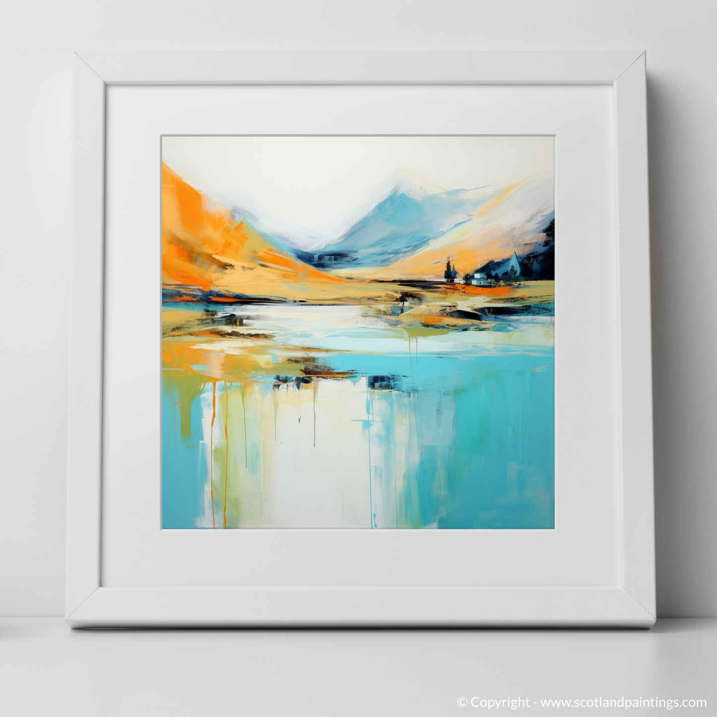 Capturing the essence of a Highland summer, this evocative abstract work brings the vibrant energy and natural splendour of Glenfinnan to life. With a harmonious palette that blends warm oranges, soothing blues, and subtle hints of white and black, the print offers a dynamic interpretation of the Scottish landscape's rugged beauty.