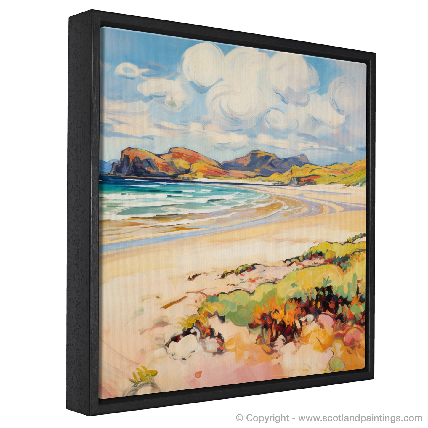 Capture the essence of a Scottish summer with this vibrant print inspired by the serene beauty of Sandwood Bay, Sutherland. The striking composition showcases the wild and unspoiled beach, renowned for its long stretch of golden sands and majestic dunes, nestled between dramatic cliffs and the Atlantic's crisp waters.