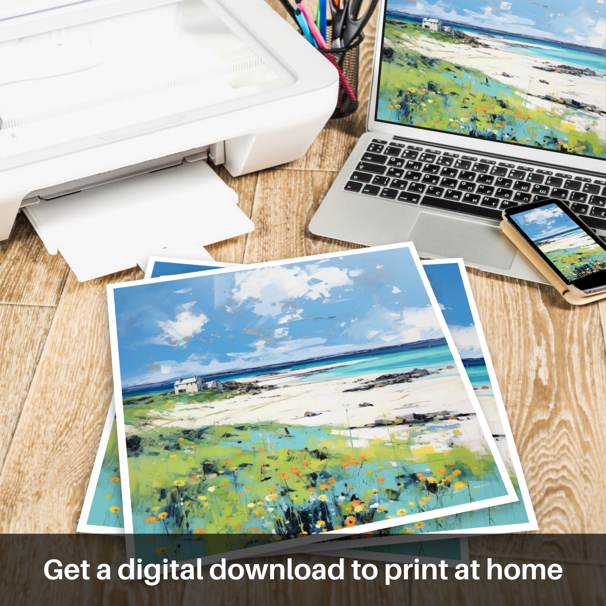 Painting and Art Print of Isle of Tiree, Inner Hebrides in summer entitled "Hebridean Summer Symphony".