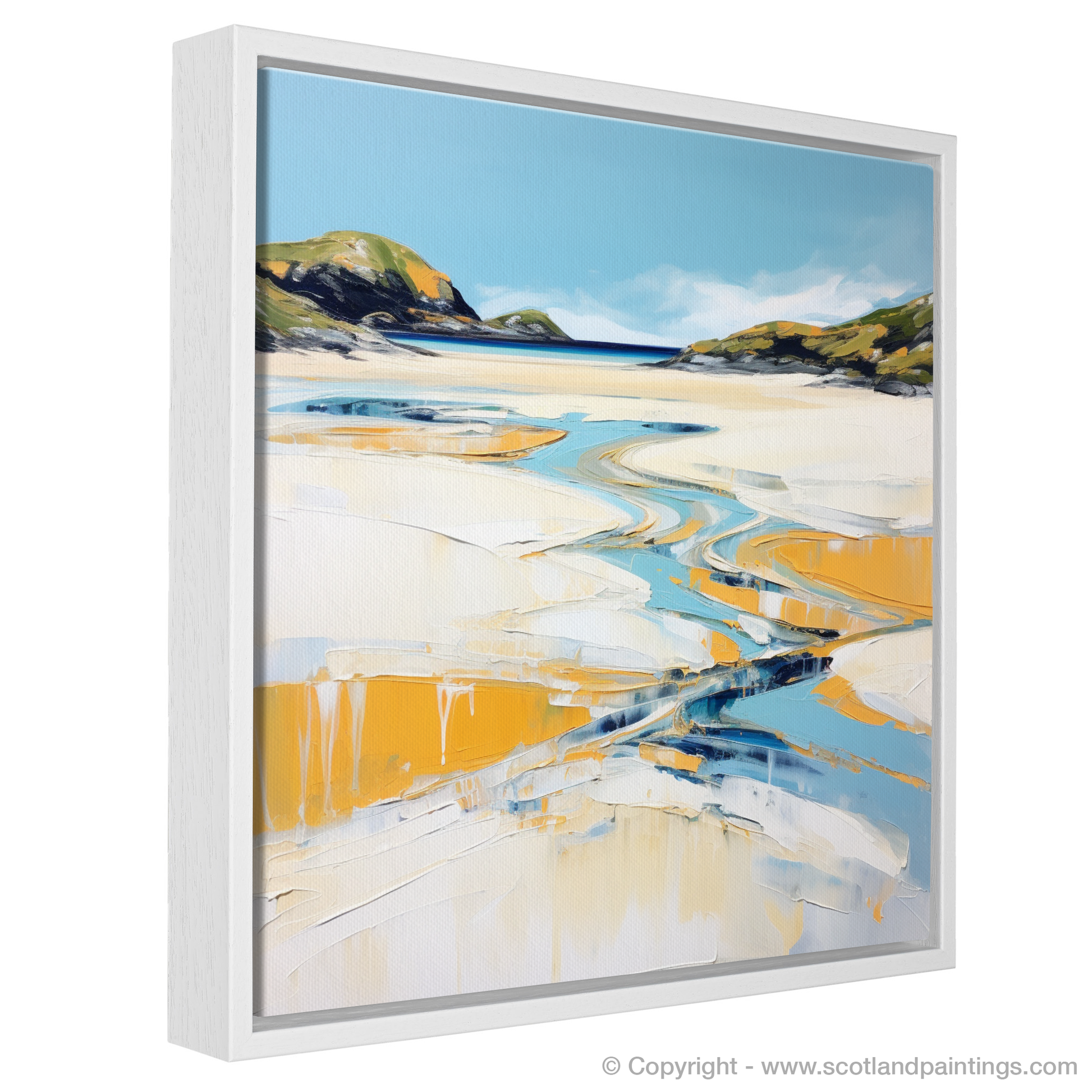 Capture the essence of Scotland's natural beauty with this vibrant abstract interpretation of the Silver Sands of Morar. Swirling hues of golden yellows, deep blues, and pristine whites dance across the canvas, echoing the sunlit grace of this coastal haven.