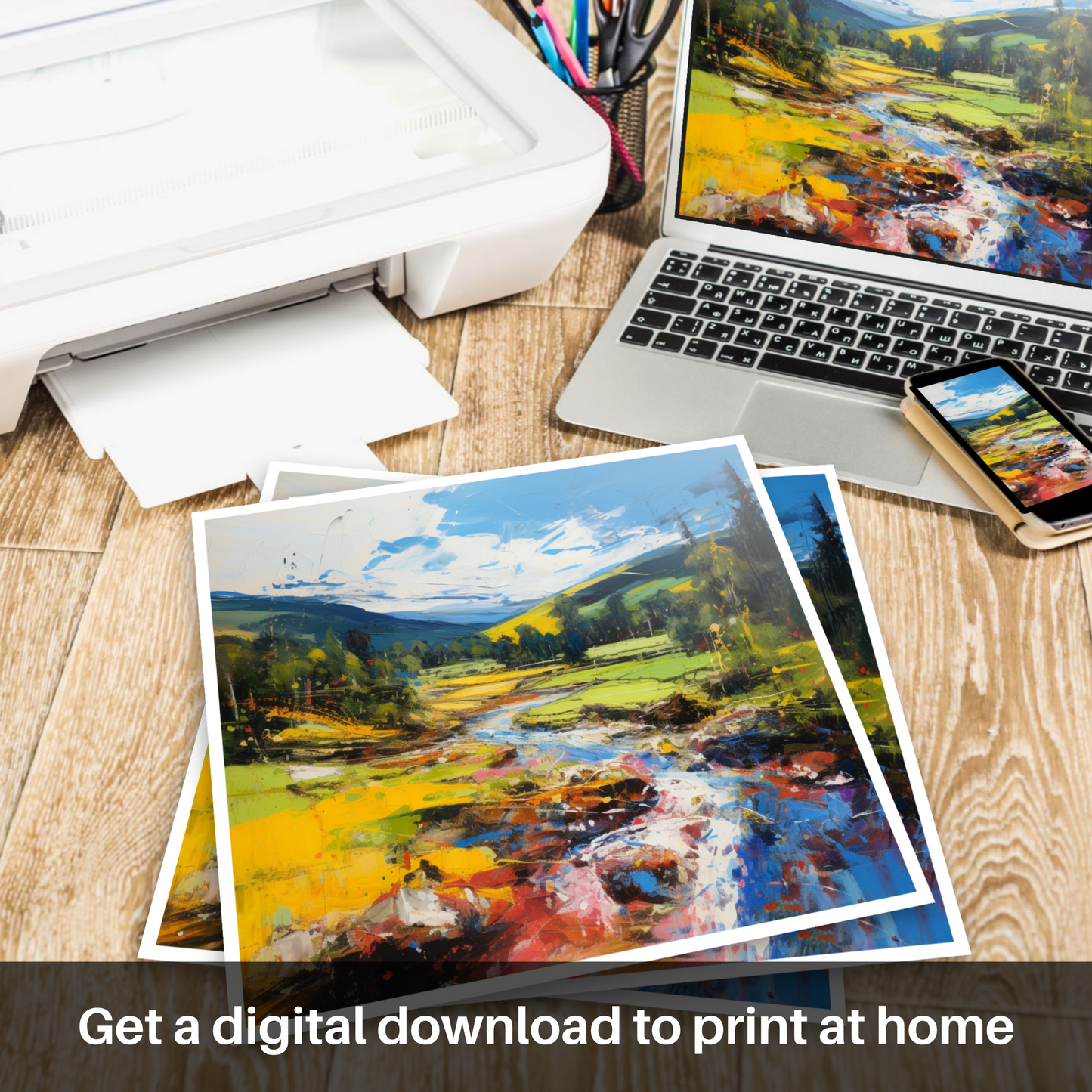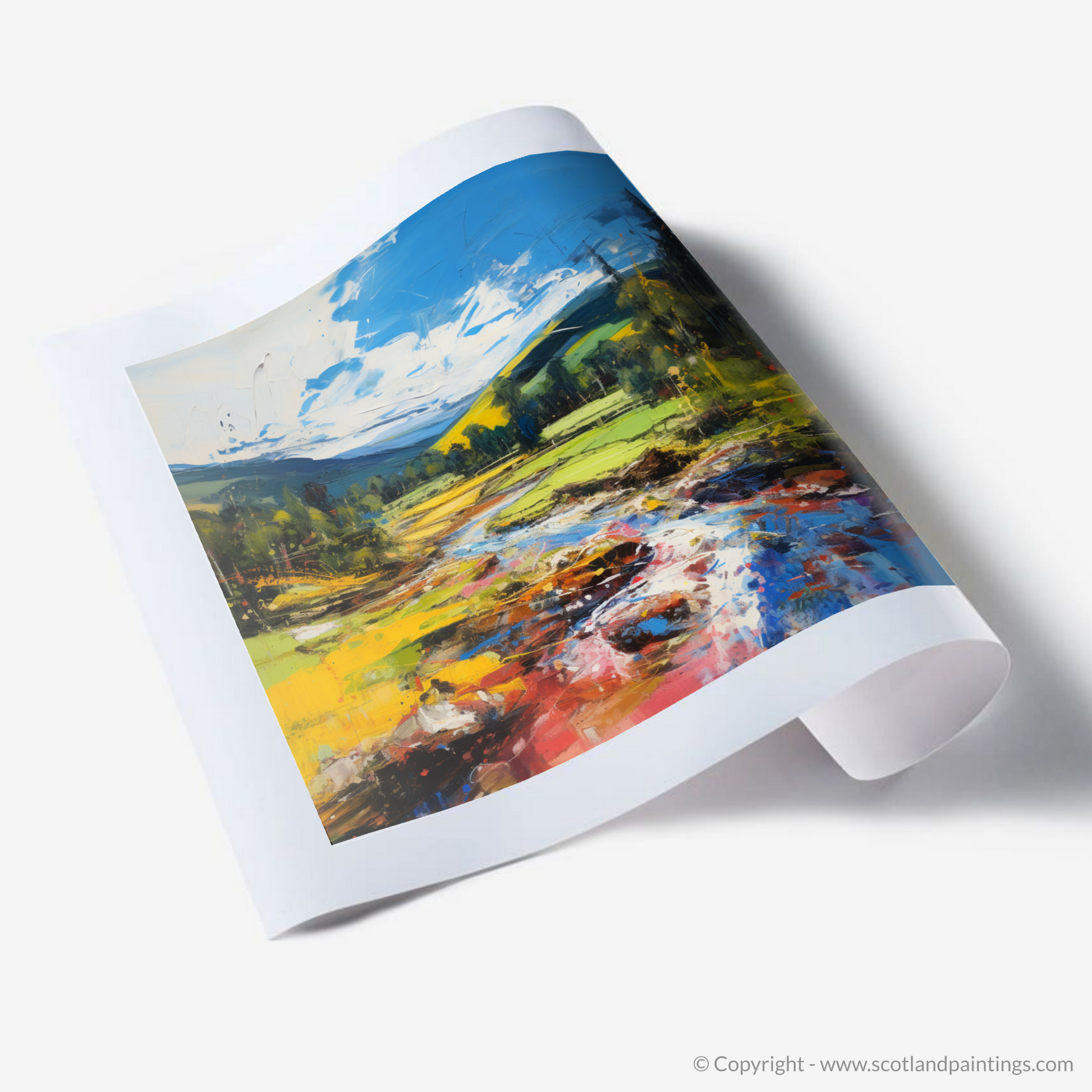 Captivate your senses with a vibrant foray into Scotland's heartland through this abstract interpretation of Glen Tilt in Perthshire during the height of summer. This evocative print invites the viewer to experience a moment of passionate artistry, with its dynamic composition and vivacious use of color.