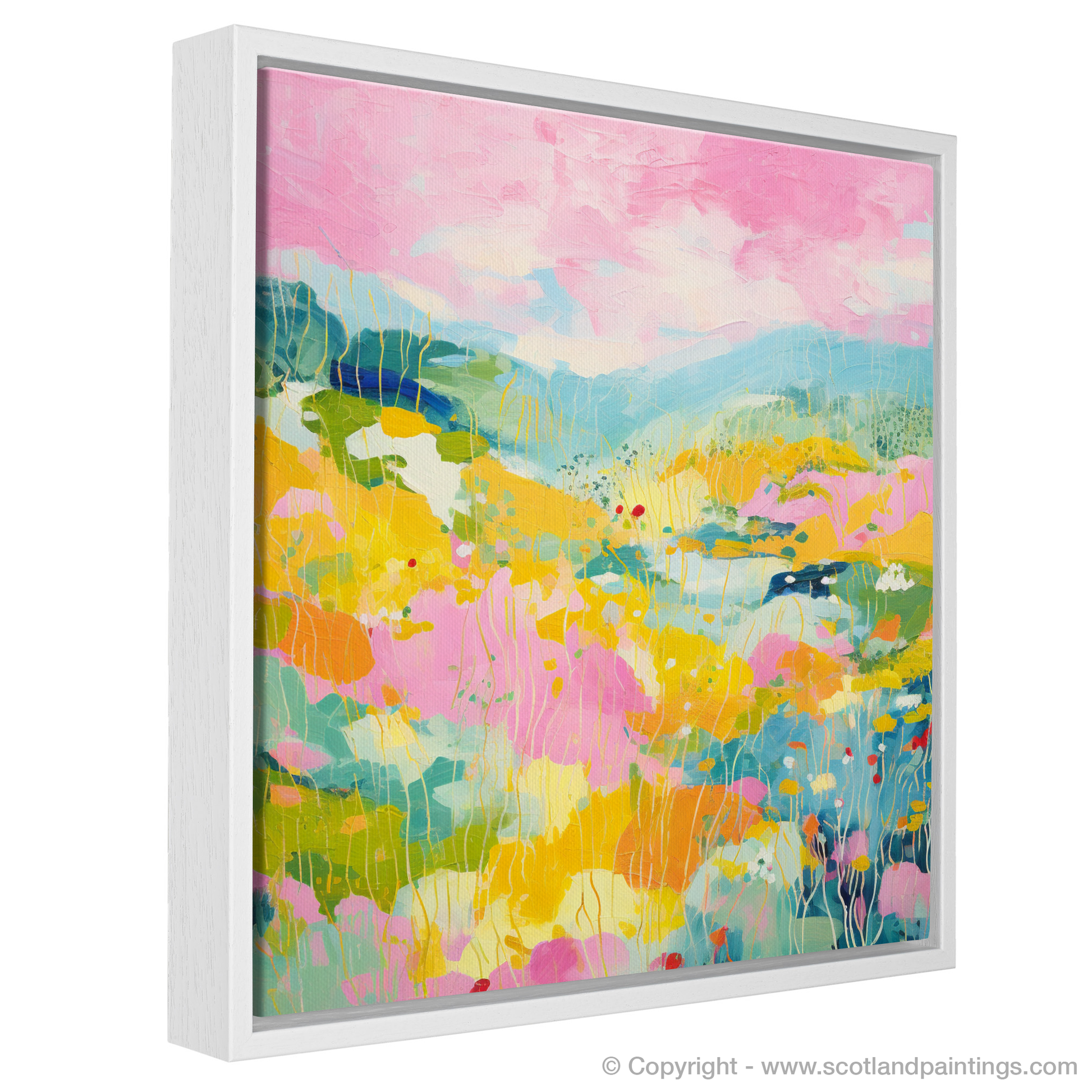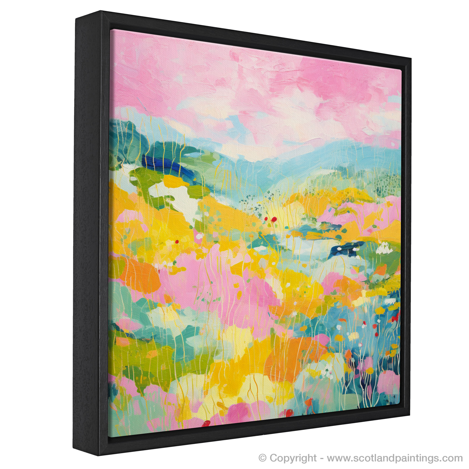 Capturing the essence of Glenmore in the Highlands during the height of summer, this evocative abstract print invites a vibrant celebration of colour and form into your space. The piece exudes the warmth and brightness of the season, achieved through a masterful application of vivid pinks, refreshing blues, and energising yellows, suggesting the lively play of sunlight across the landscape.