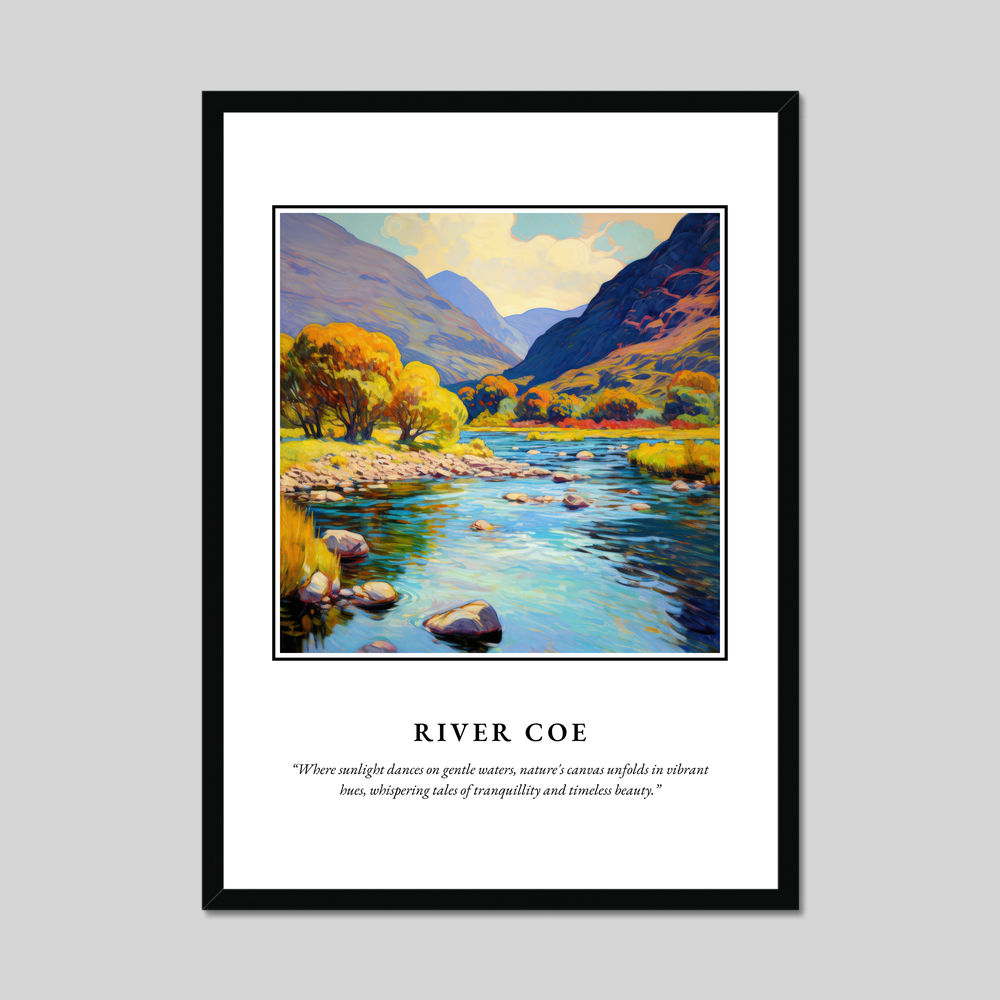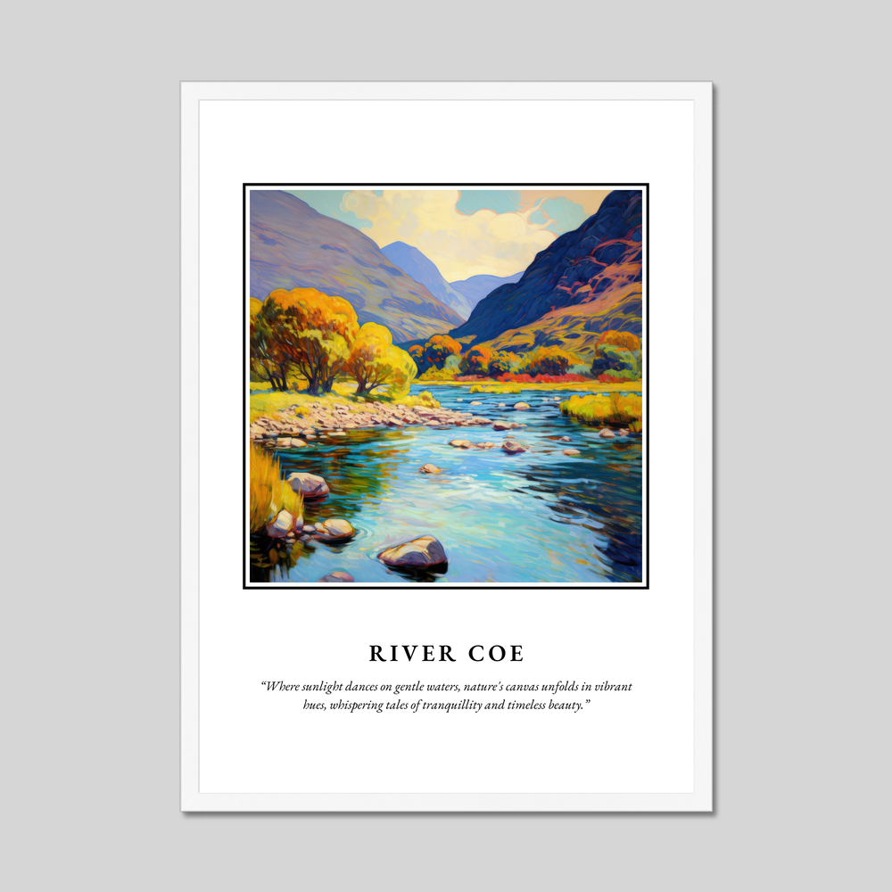 River Coe, located in the heart of the Scottish Highlands, is a picturesque haven steeped in history and natural beauty. Known for its dramatic glens and rugged terrains, the area offers a serene escape for travellers and locals alike. The painting beautifully reflects River Coe’s tranquil atmosphere, where nature paints an ever-changing portrait across its landscape. Whether you have walked its trails or simply dream of its beauty, this poster is a window into a world of peace and timeless allure.