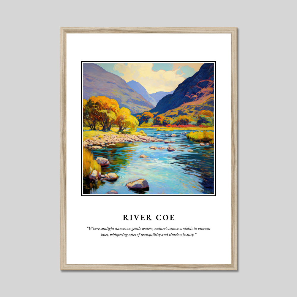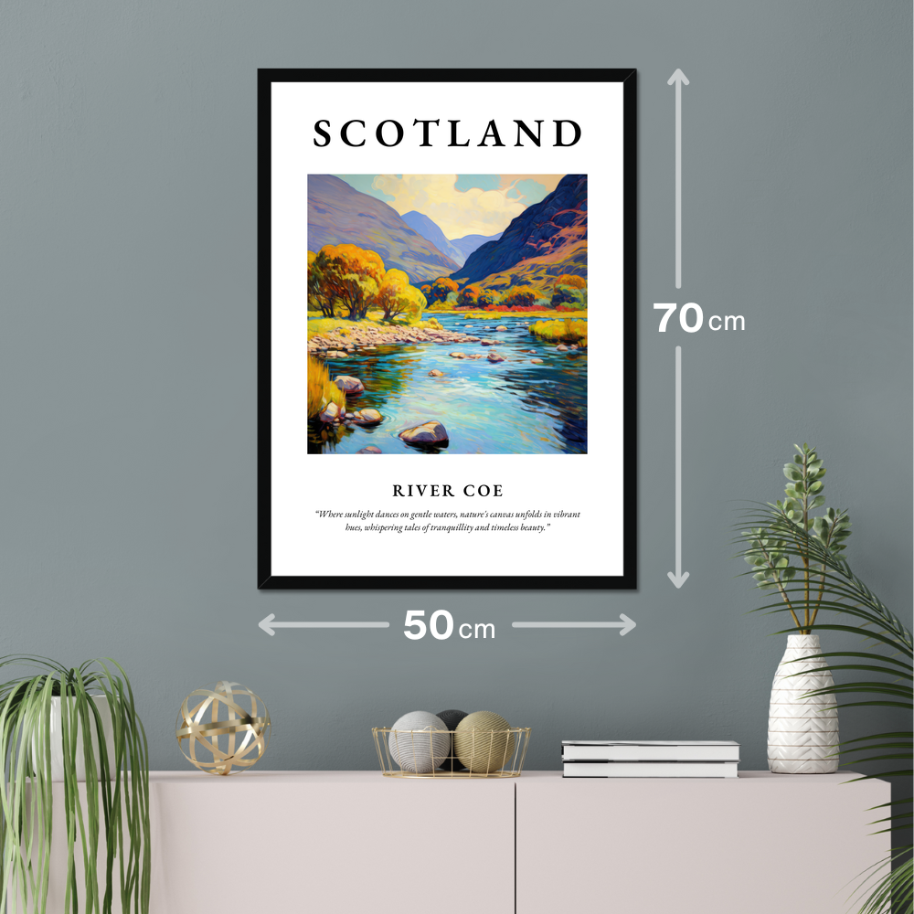 Immerse yourself in the stunning beauty of Scotland with this captivating poster print from our exclusive “Scotland in Summer” collection. Measuring an impressive 50cm x 70cm, this large format artwork is perfect for transforming any wall into a vibrant homage to the natural beauty of River Coe. Available in your choice of black, white, or natural wood-effect frame, this piece effortlessly complements any decor, bringing a touch of elegance and cultural richness to your space without breaking the bank.