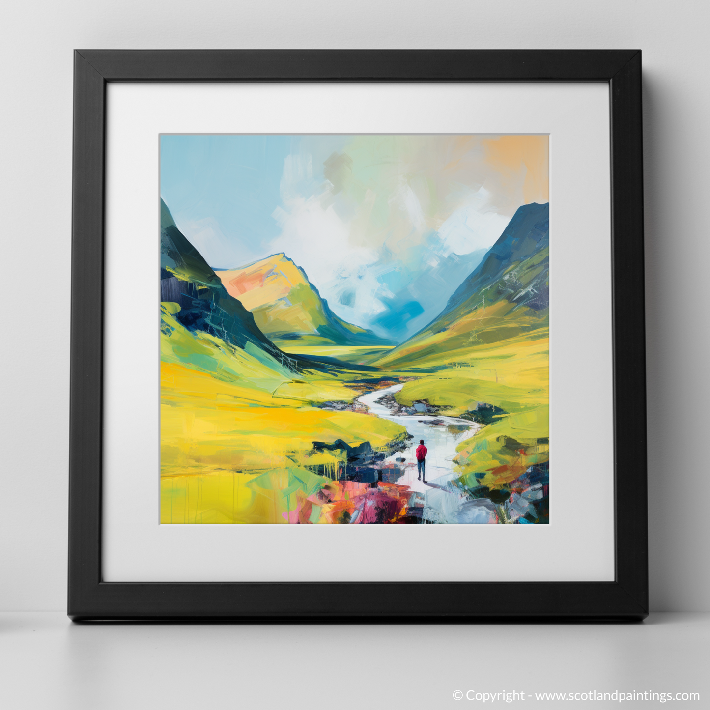 Glencoe, famed for its dramatic landscapes and evocative history, serves as the perfect muse for these artworks. During summer, the valley bursts into life with vibrant colours and a sense of tranquility, mirrored beautifully in the paintings. The lone hiker becomes a symbol of adventure and introspection against the backdrop of towering mountains and meandering paths. Whether you've experienced Glencoe firsthand or dream of visiting, these prints capture the essence of its allure, inviting a slice of Scotland's natural splendour into your home.