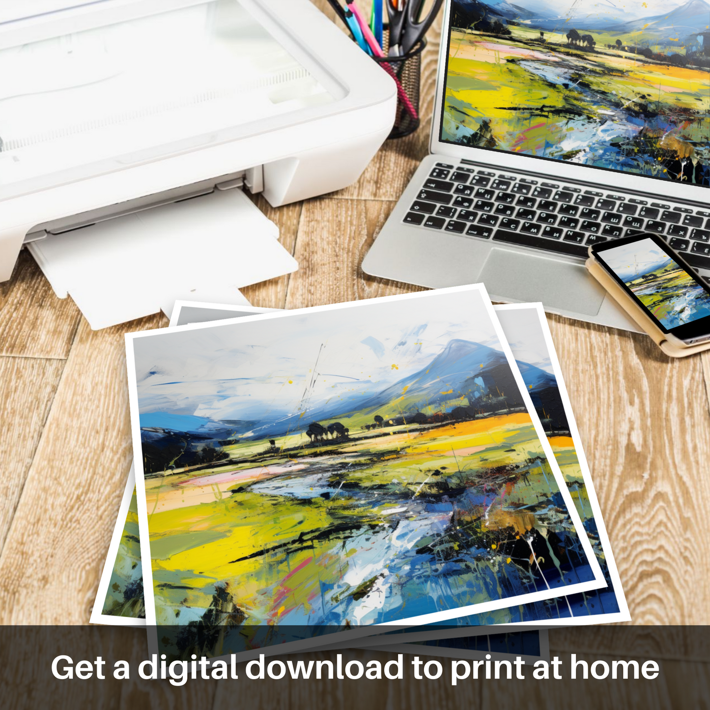 This print is an homage to the untamed beauty of Scotland's summertime, designed to bring the allure of Glen Esk's captivating landscape into any space it adorns. Whether for those who cherish Scotland's natural grandeur or for lovers of abstract art seeking a piece rich in emotion and atmosphere, this print is an inviting and bold choice for an array of environments.