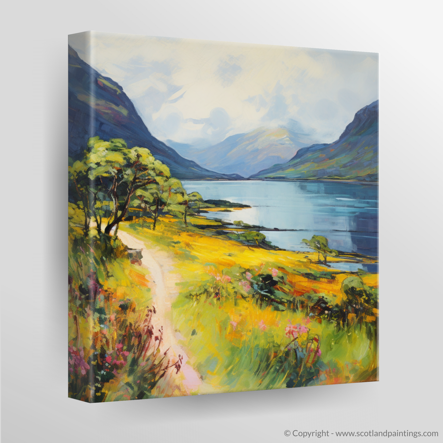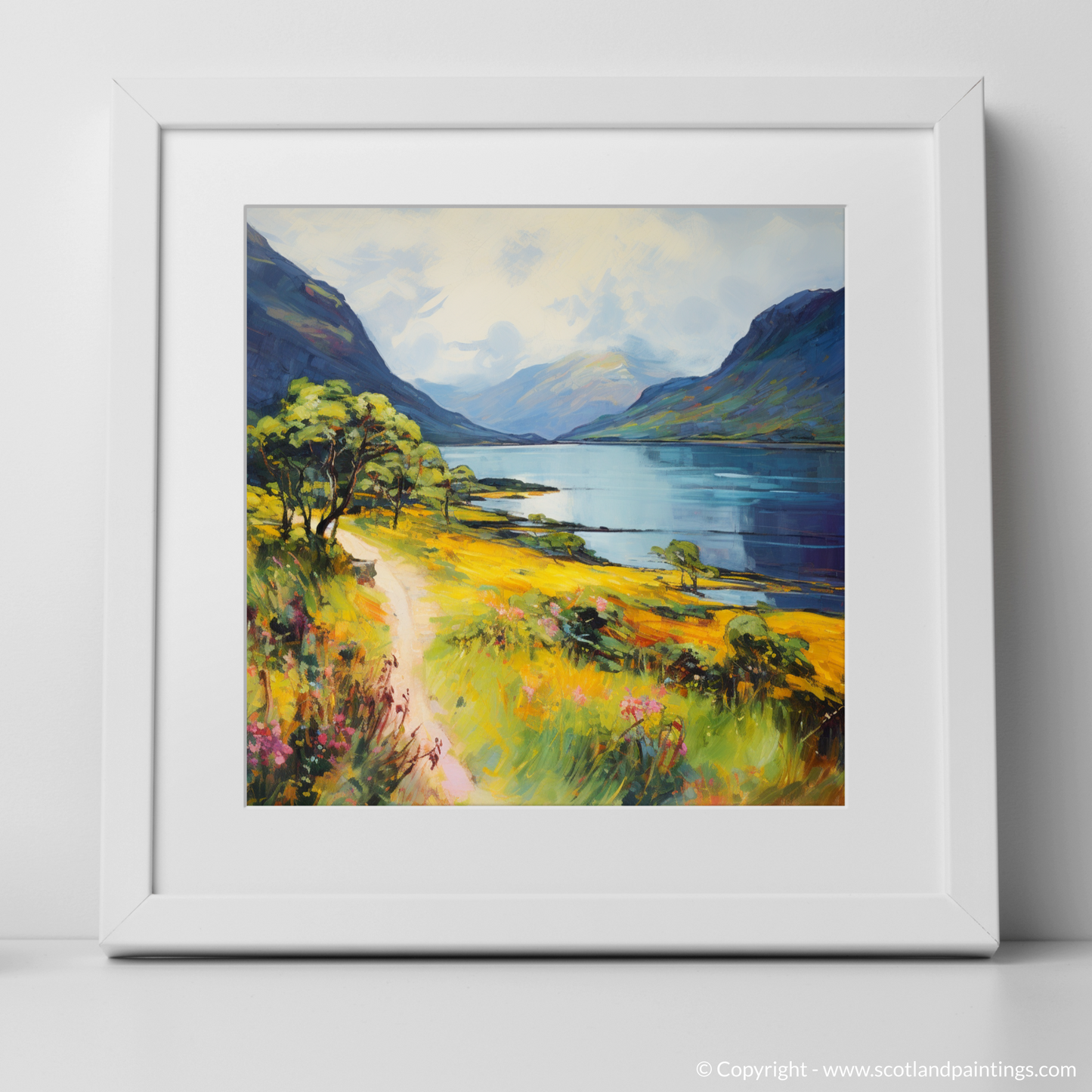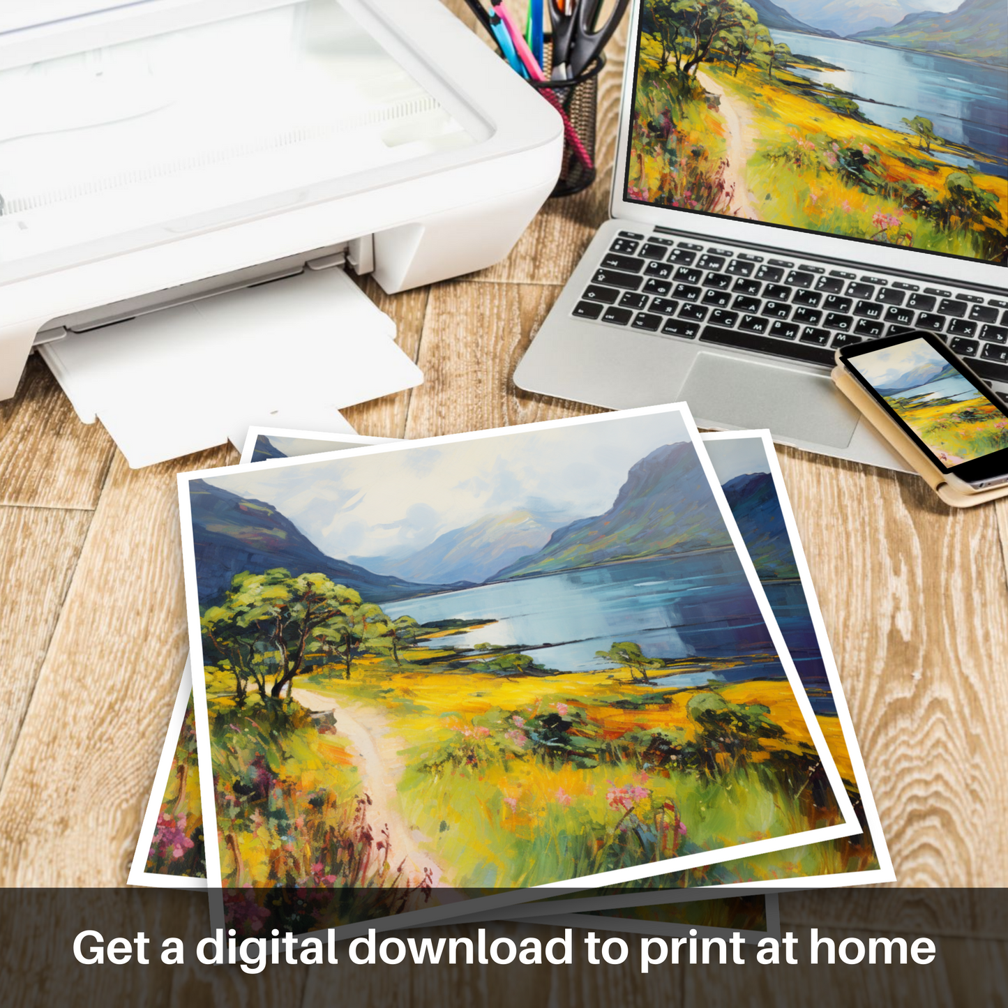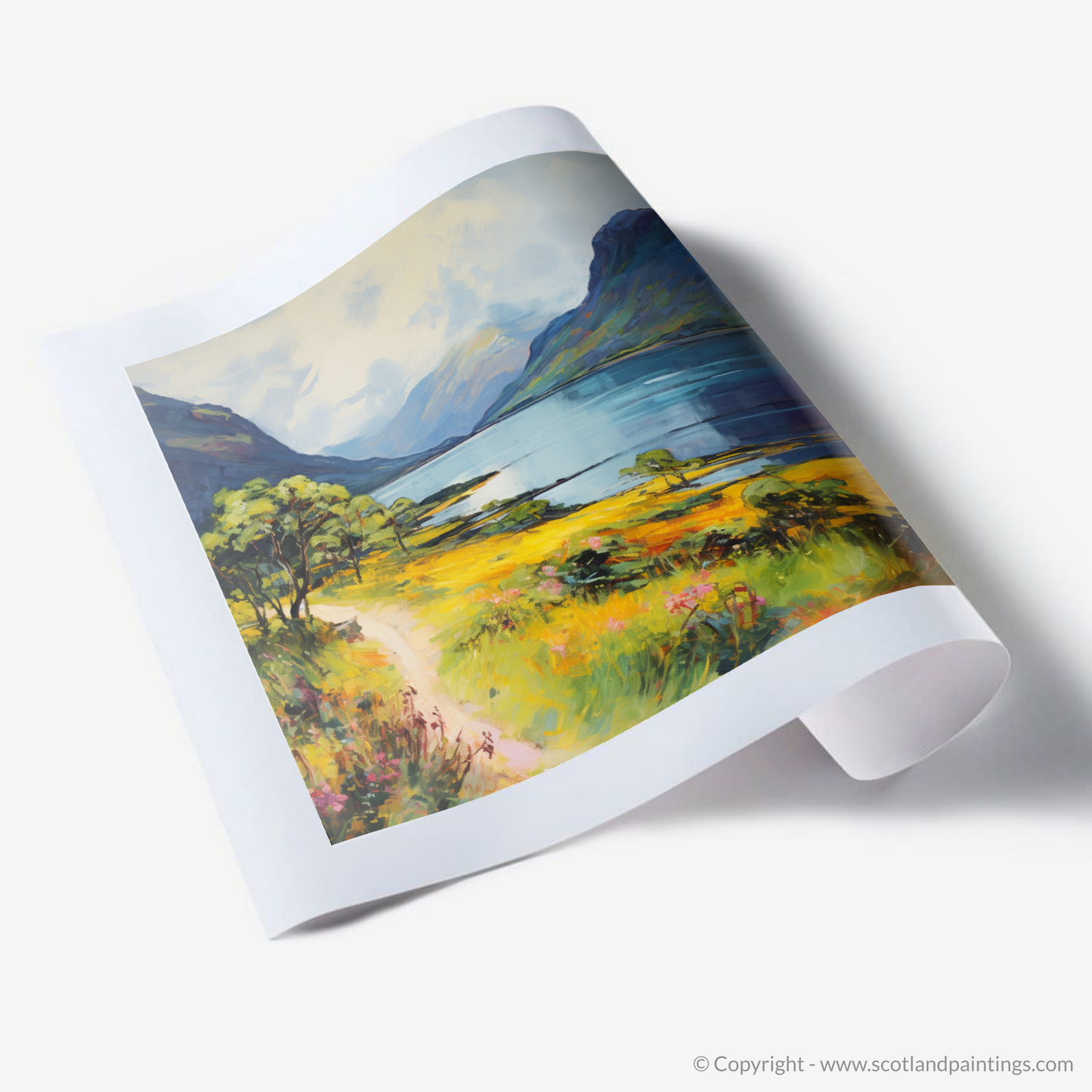 Capturing the enchanting essence of Loch Maree in Wester Ross during the height of summer, this captivating print is a vibrant celebration of Scotland's natural beauty. The artwork, inspired by the Impressionist movement, masterfully translates the serene landscape through a symphony of exuberant brushstrokes, imbuing the scene with life and a sense of movement.