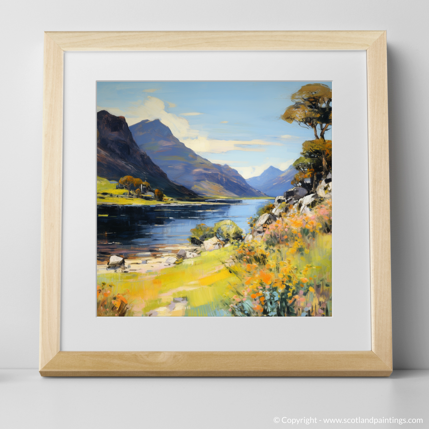 This print would draw the viewer into a harmonious landscape where every glance reveals another nuance of Scotland's enchanting summer—a cherished addition to any space that seeks to evoke the timeless allure of the highlands.