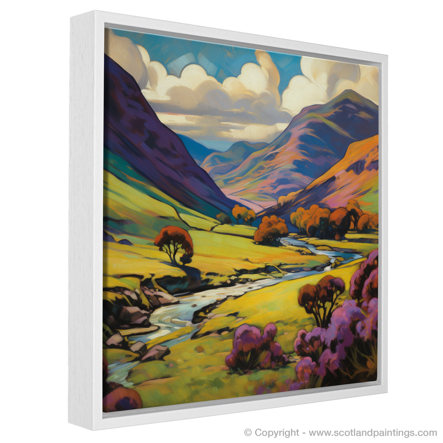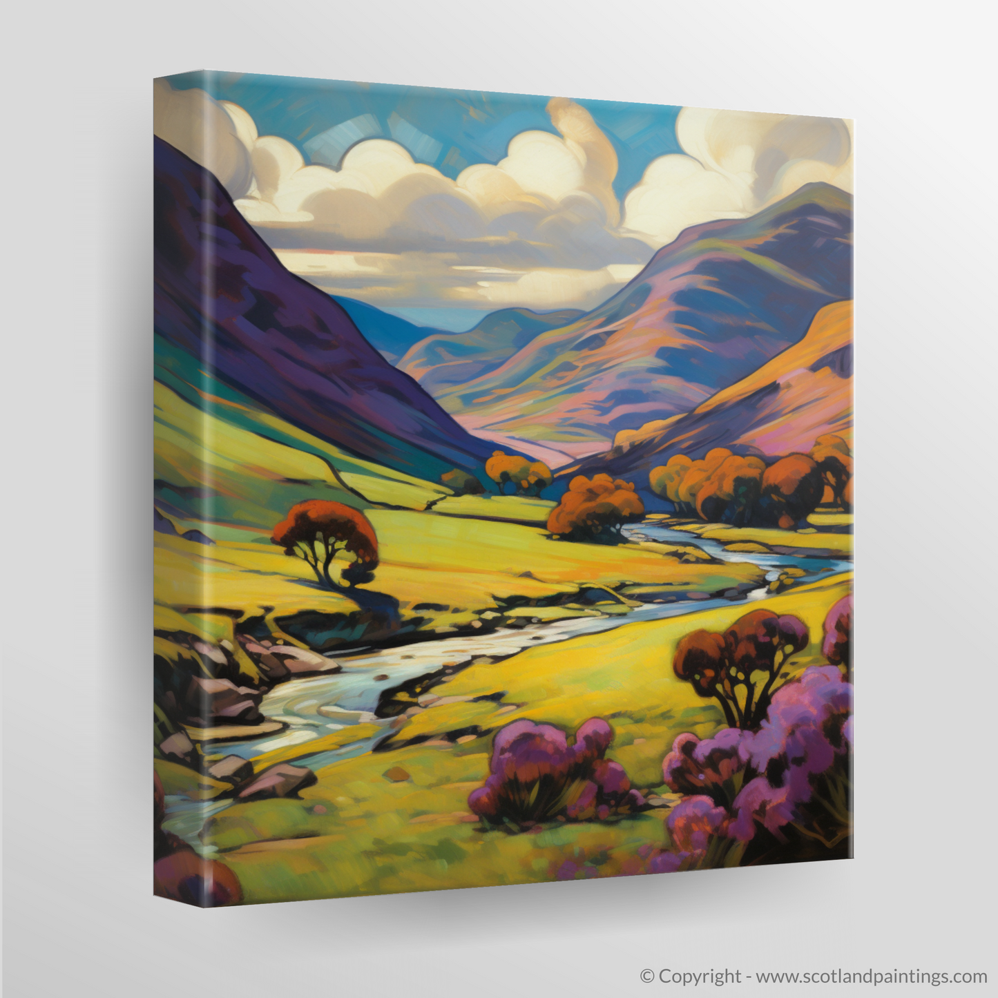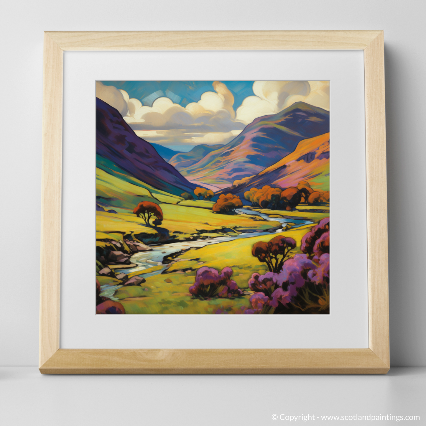 Capturing the essence of the Scottish Highlands during the balmier months, this vibrant print translates the sweeping beauty of Glen Roy into a symphony of colour and light. The painting's Impressionistic style lends a dream-like quality to the landscape, with broad, emotive brushstrokes that evoke the movement and warmth of summer air.