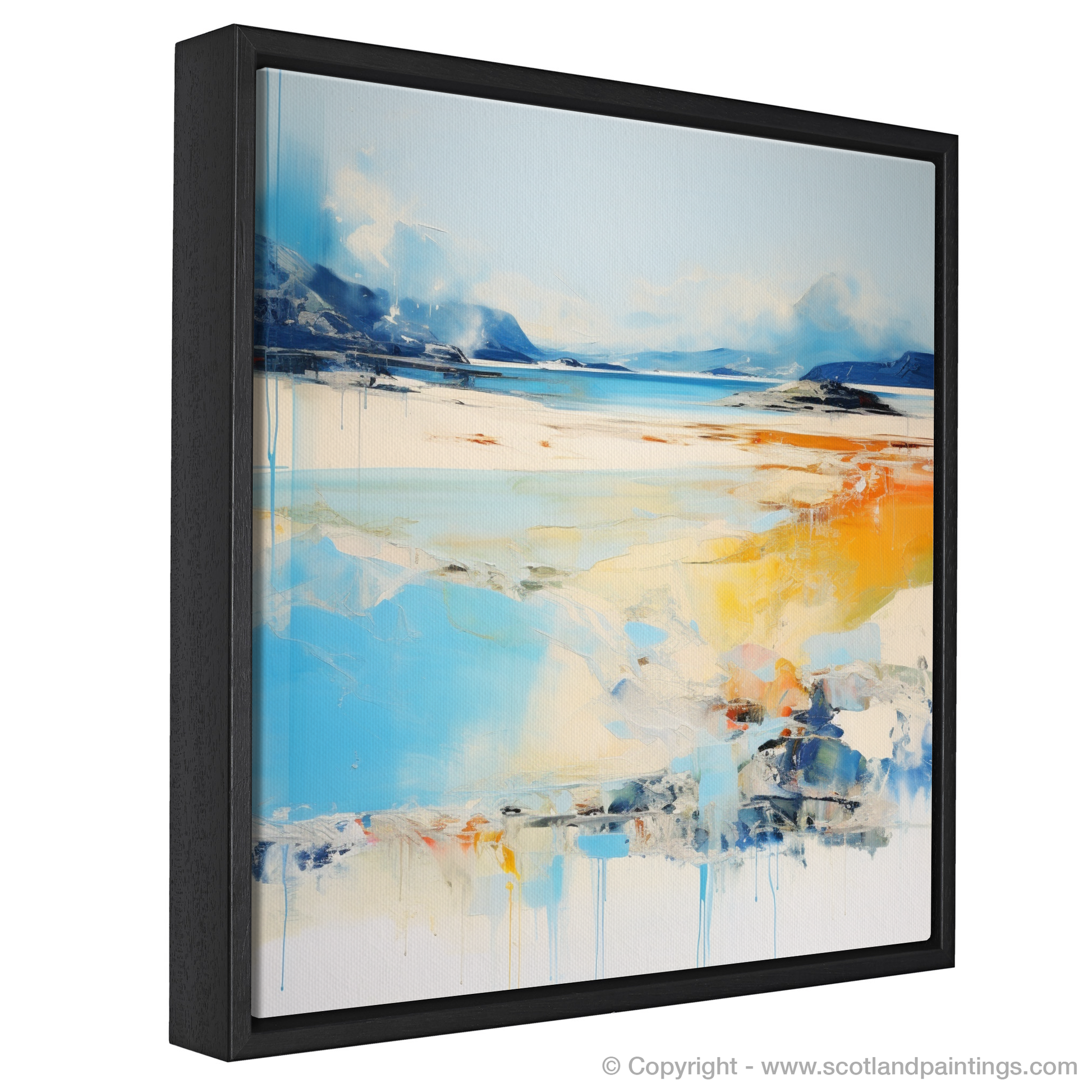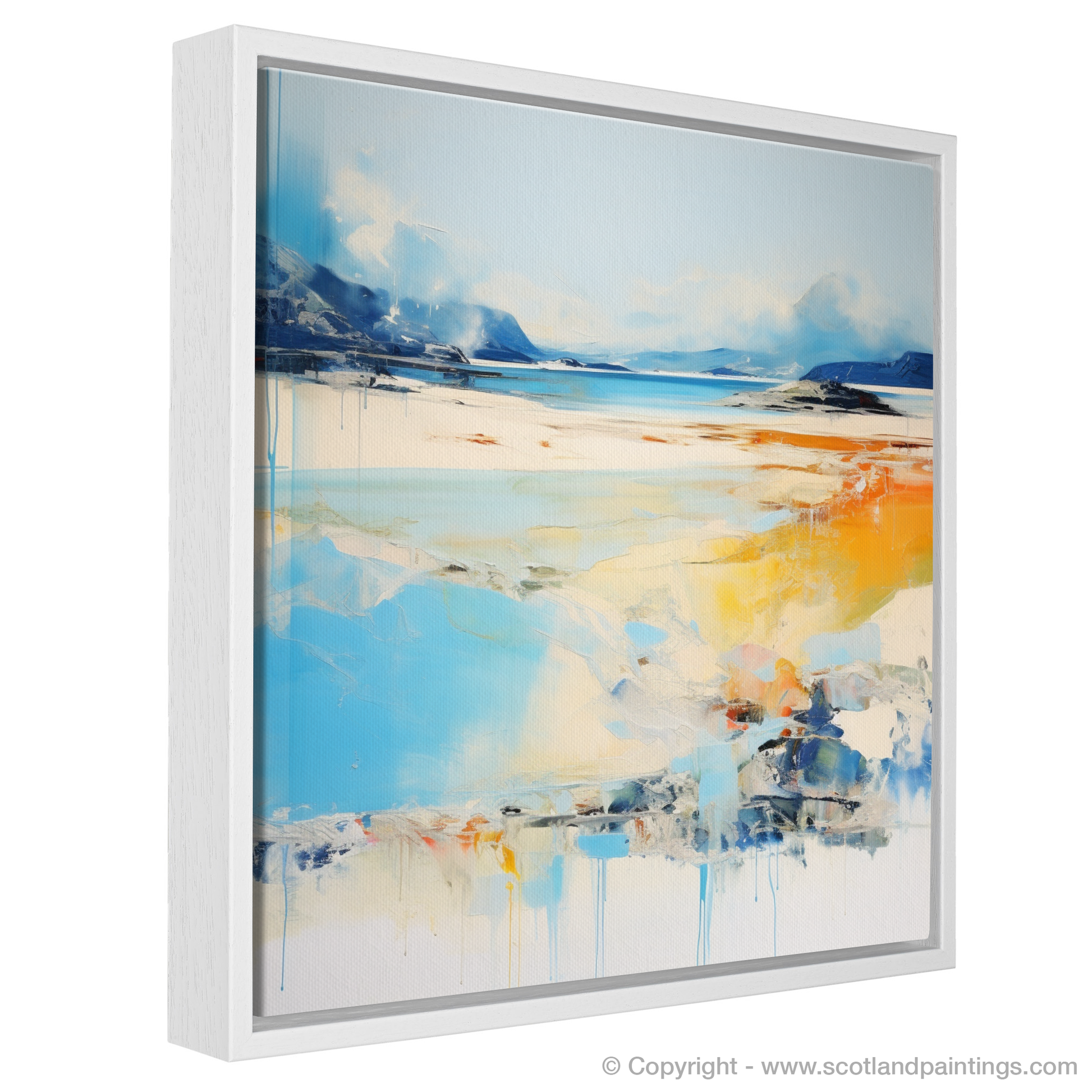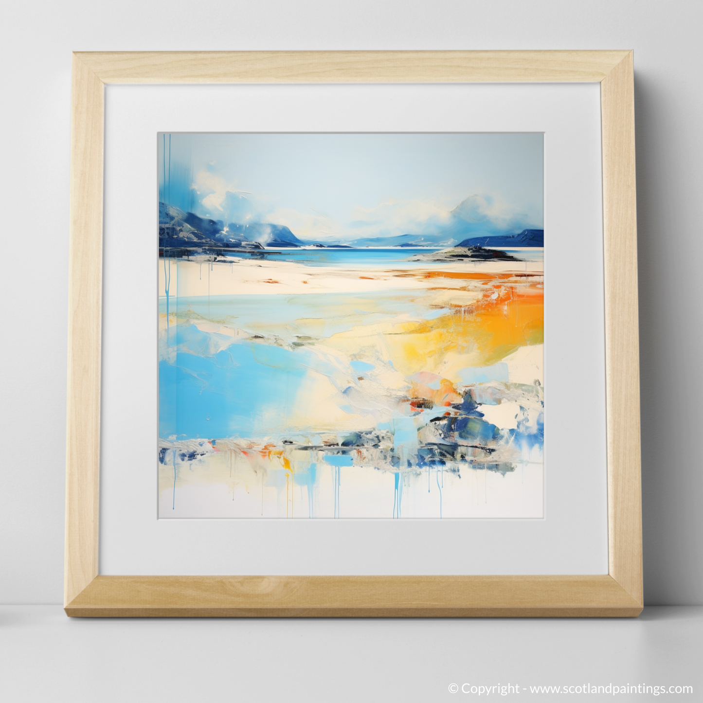 Captivate your senses with this stirring abstract representation of the Silver Sands of Morar, a delightful homage to the Scottish summertime. With its vivid, sweeping strokes of azure, cerulean, and cobalt, this piece invites you to experience the crispness of a summer sky and the tranquil expanse of the sea. The horizon melds ocean with the heavens in a symphony of blue tones, suggesting the seamless beauty of the natural world.