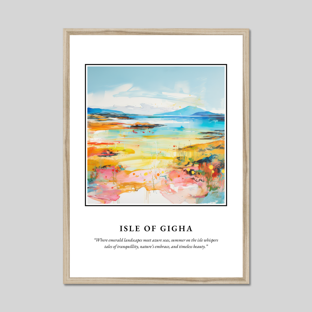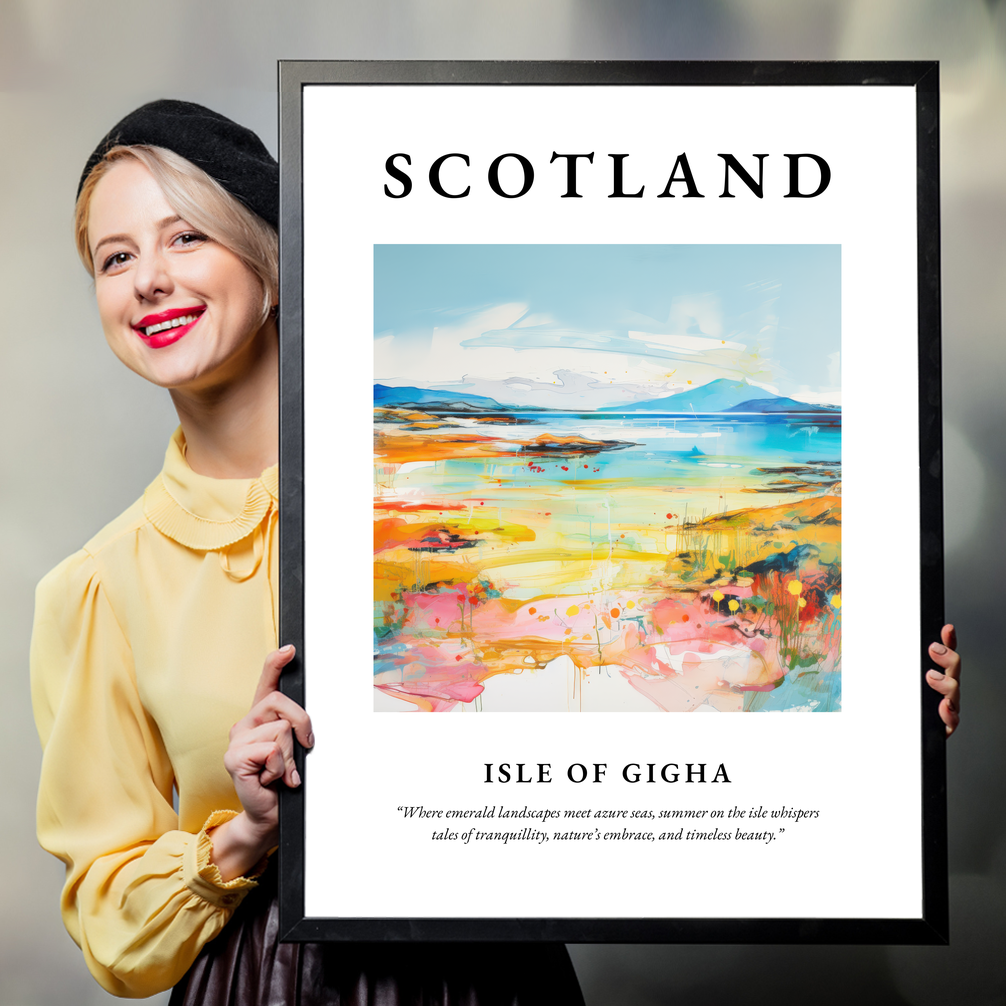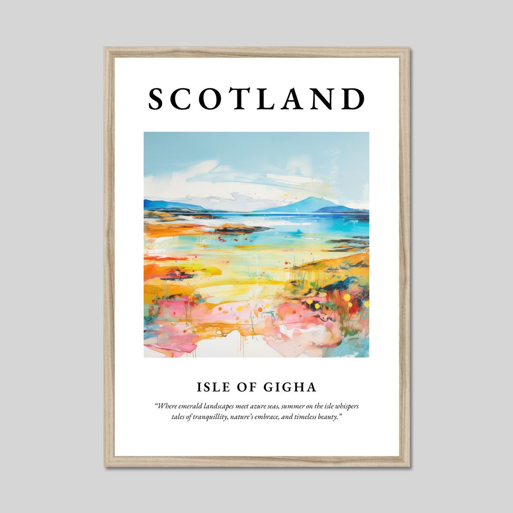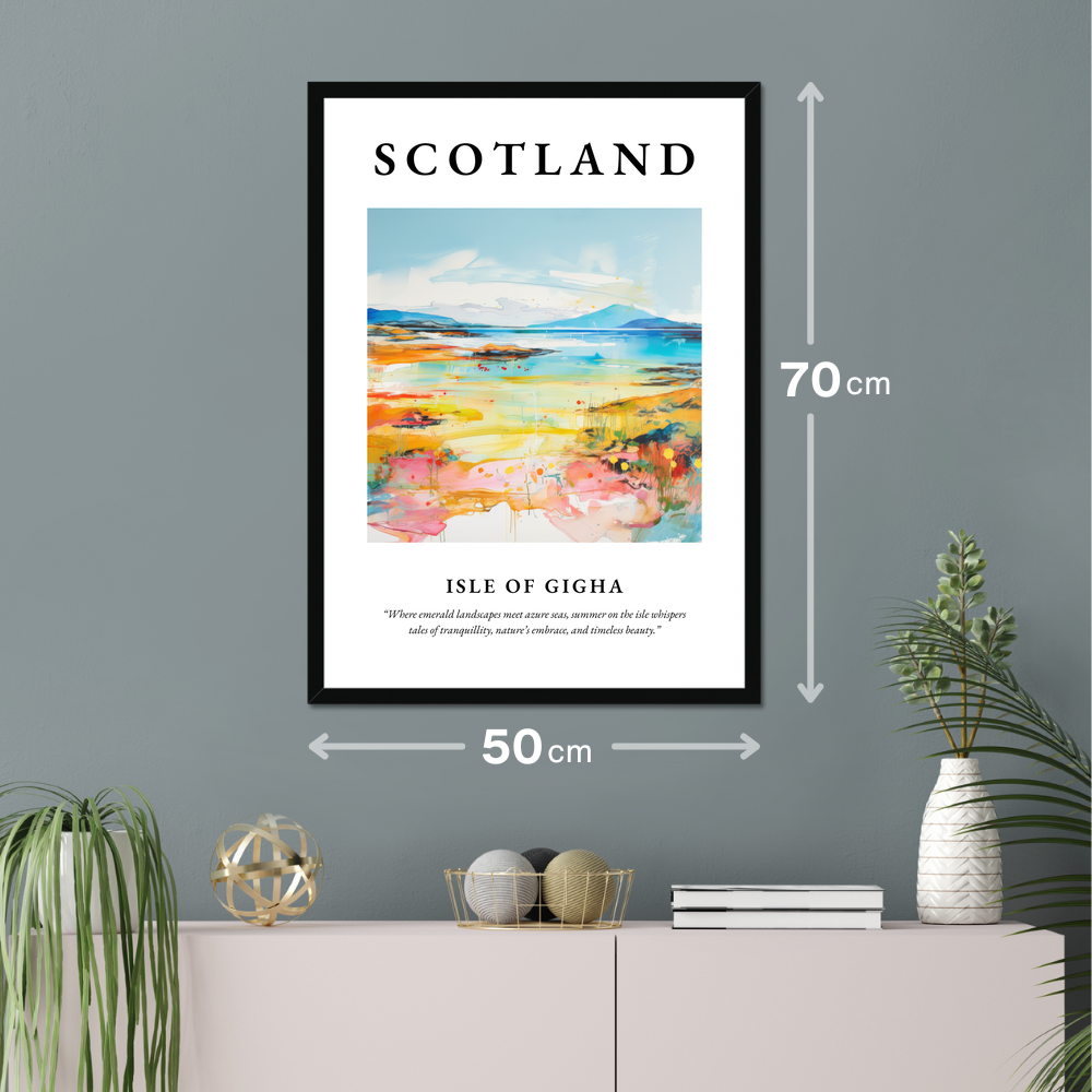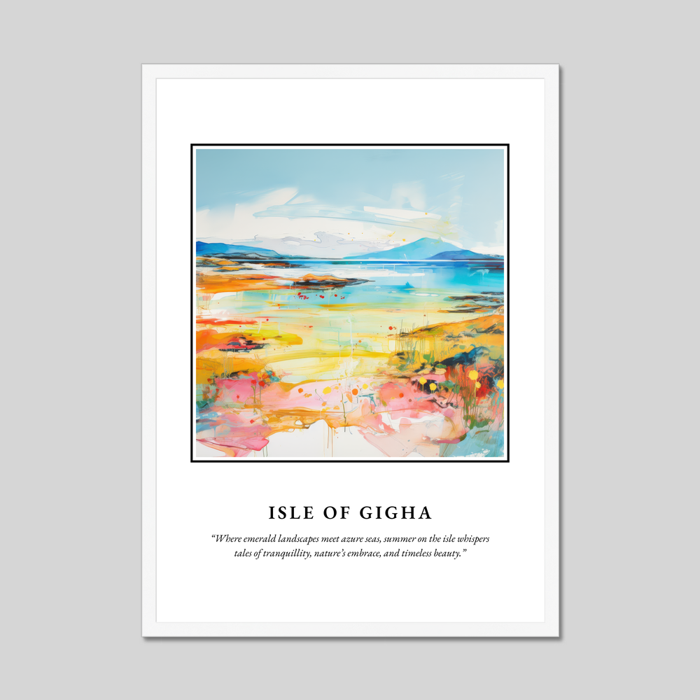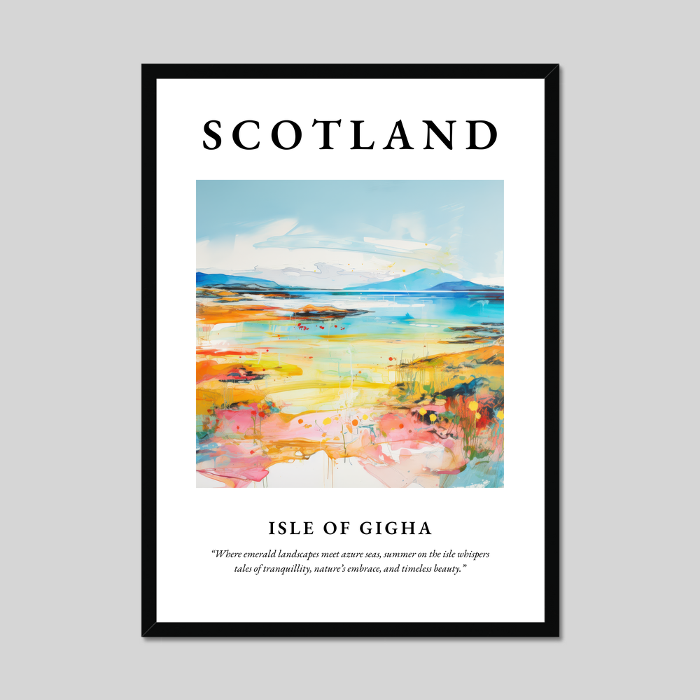 Discover the captivating allure of the Isle of Gigha with our 50cm x 70cm framed poster print, an exquisite piece from our “Scotland in Summer” collection. This large, eye-catching artwork is perfect for anyone who cherishes Scotland’s unique beauty, has fond memories of a visit to the isle, or simply has an affinity for abstract art.