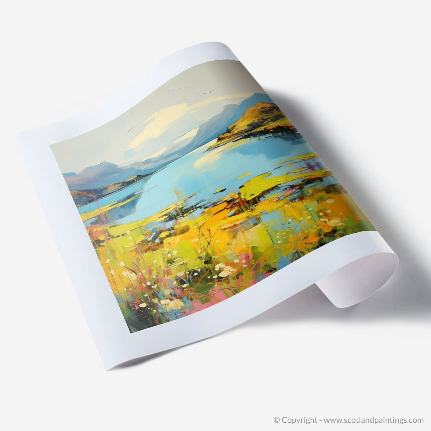 Capturing the vibrant essence of a summer's day in the Scottish Highlands, this contemporary print embodies the serene beauty of Loch Linnhe. The artwork presents a harmonious blend of natural splendour and modern artistic interpretation, where the placid waters mirror the expansive sky.