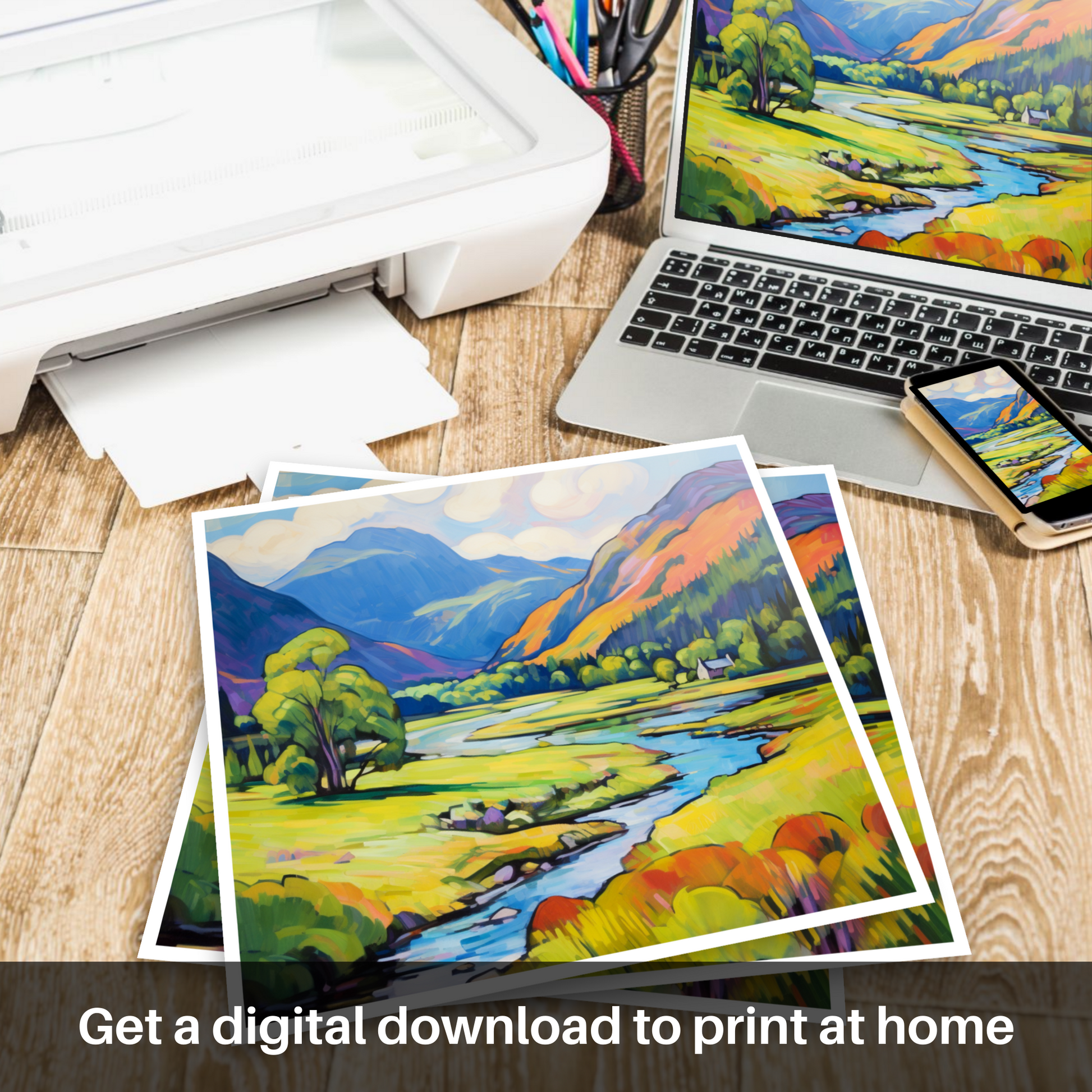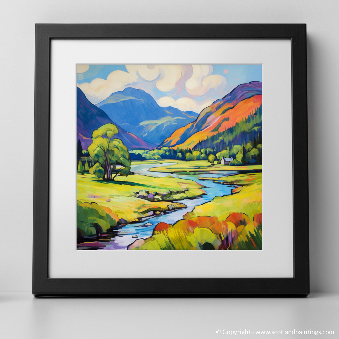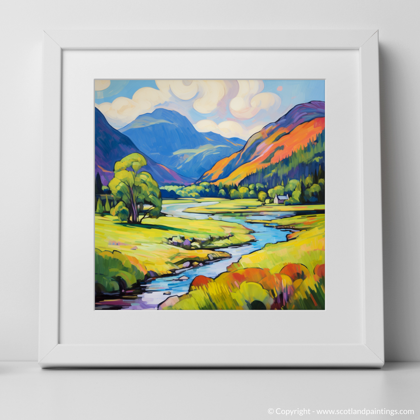 Capture the essence of the Scottish Highlands with this vibrant print inspired by the stunning Glenfinnan area. The artwork is a cascade of bold and emotive colours, characteristic of the Fauvist style, which prioritises painterly qualities and strong colour over the representational values of Impressionism.