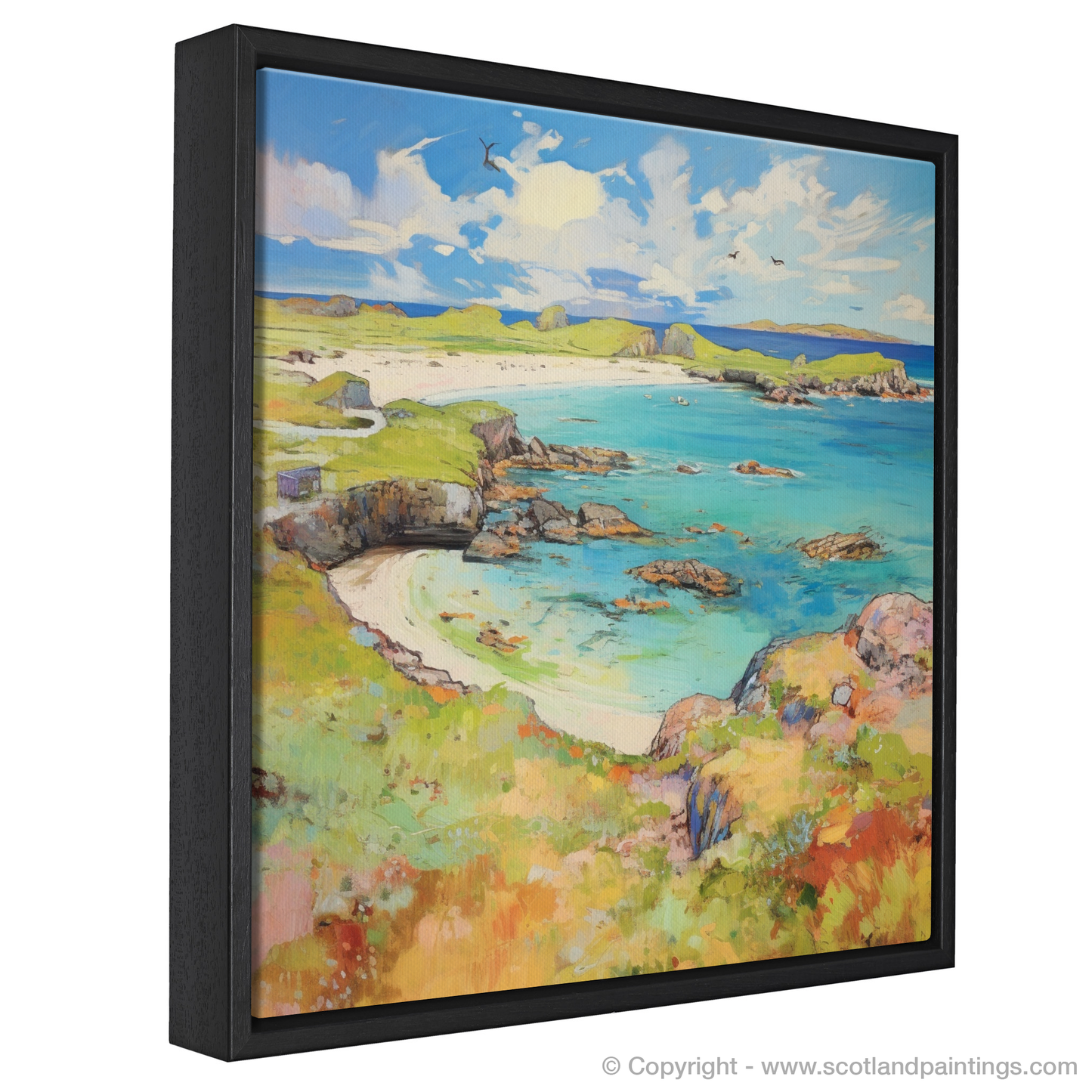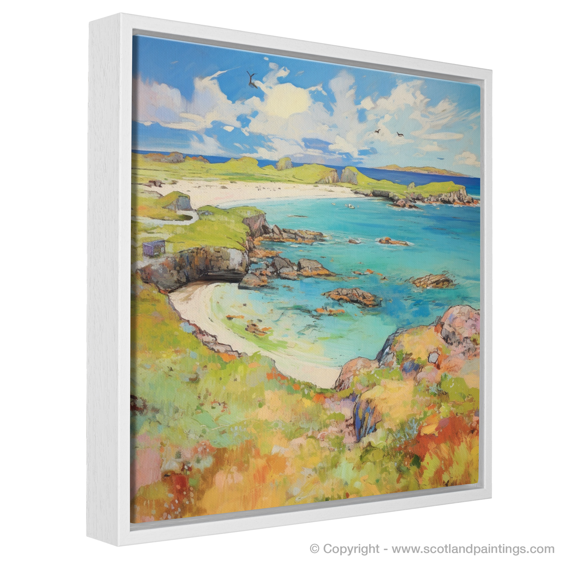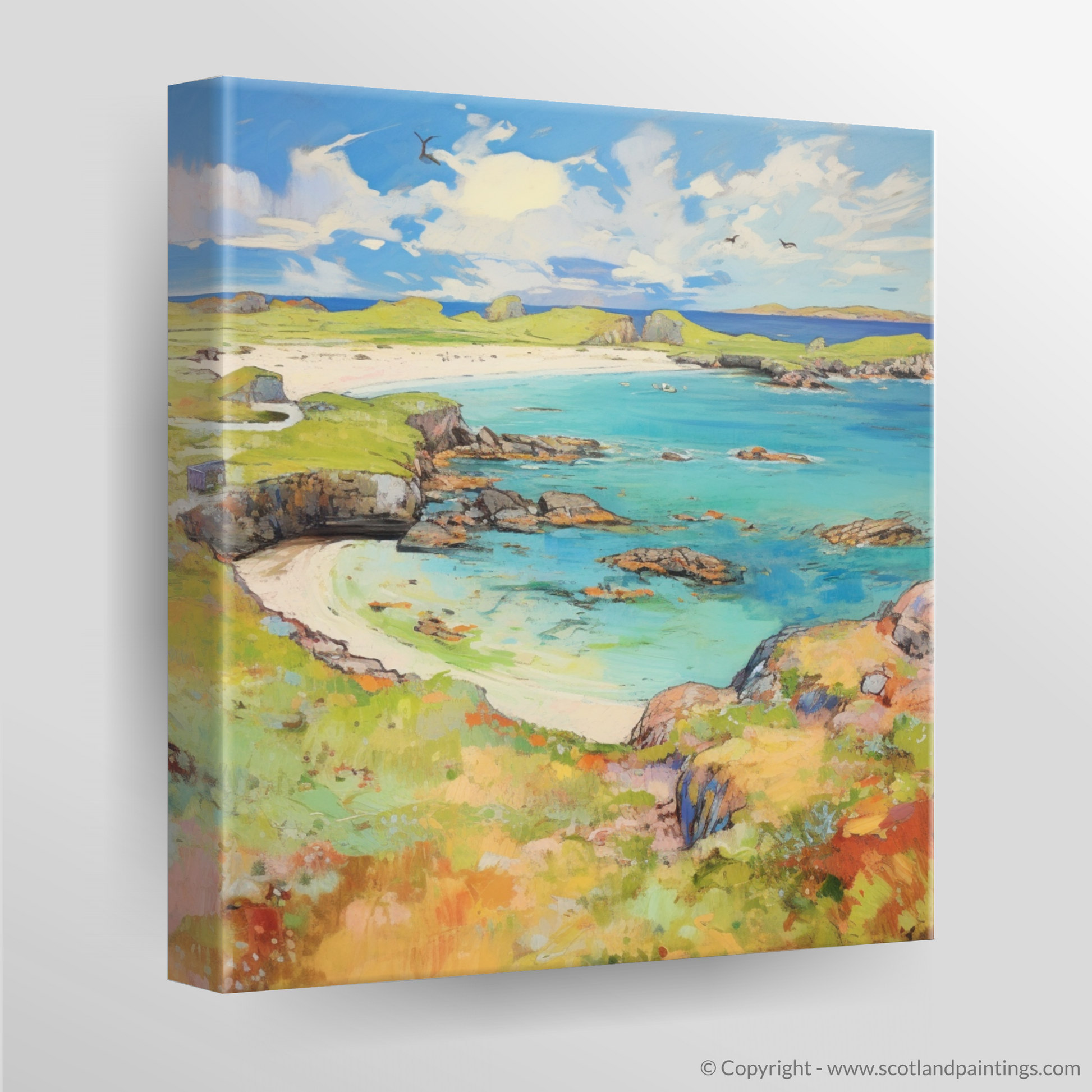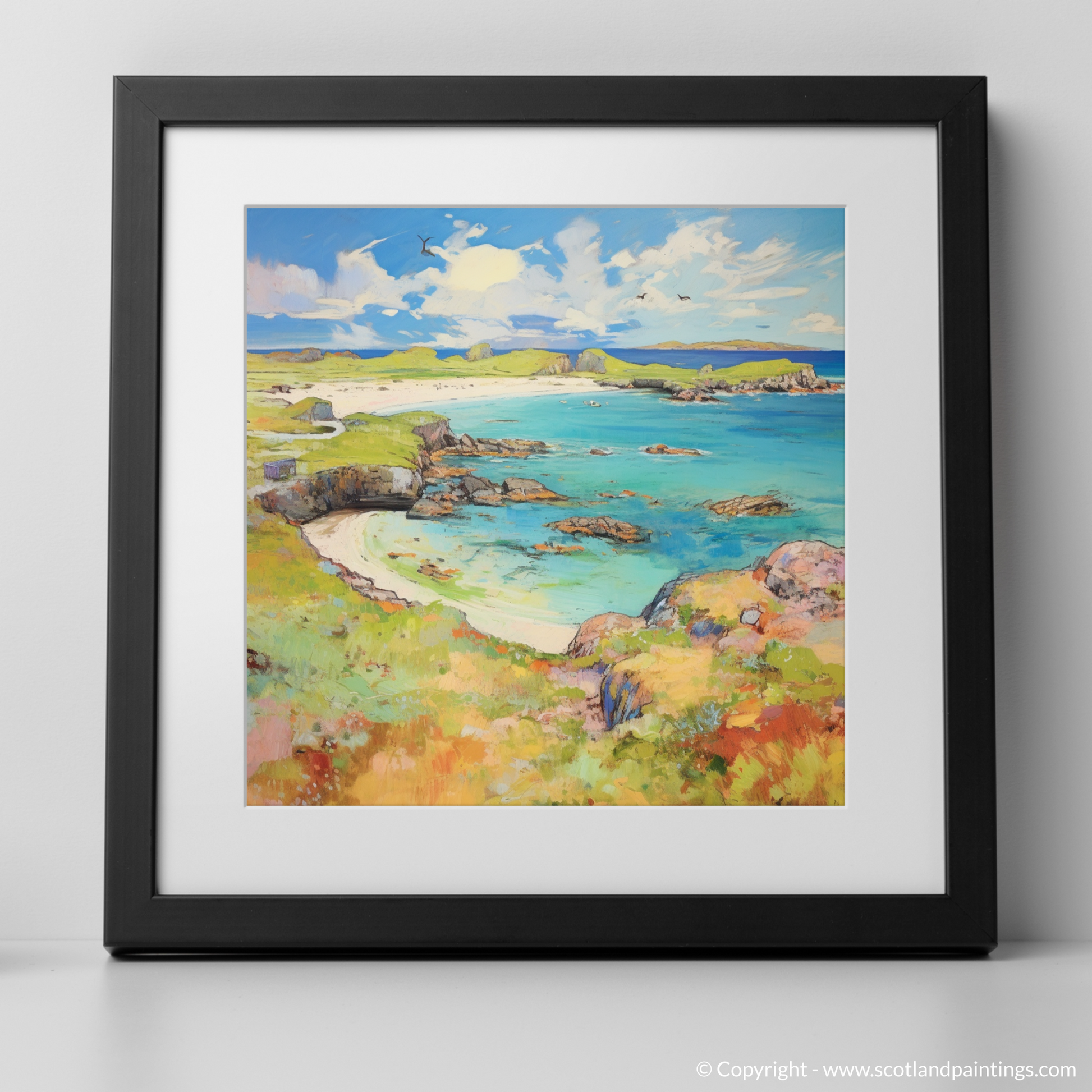 Capturing the ethereal beauty of Scotland's famed Isle of Skye, this print is a celebration of the archipelago's vibrant summer hues, where the azure embrace of the sea meets the warmth of the land. The artwork is a tapestry of textured brushstrokes that vividly echo the dynamic Scottish landscape.