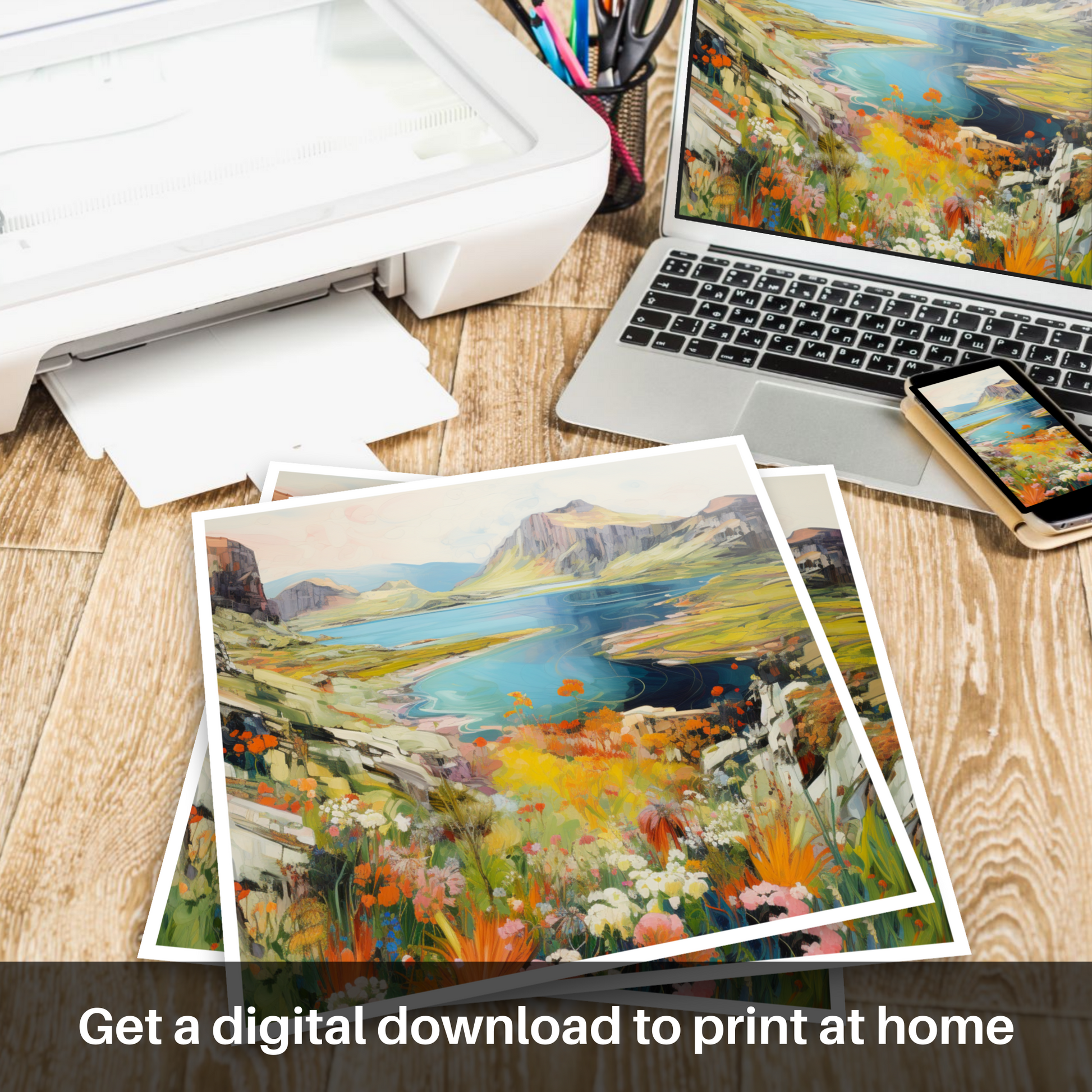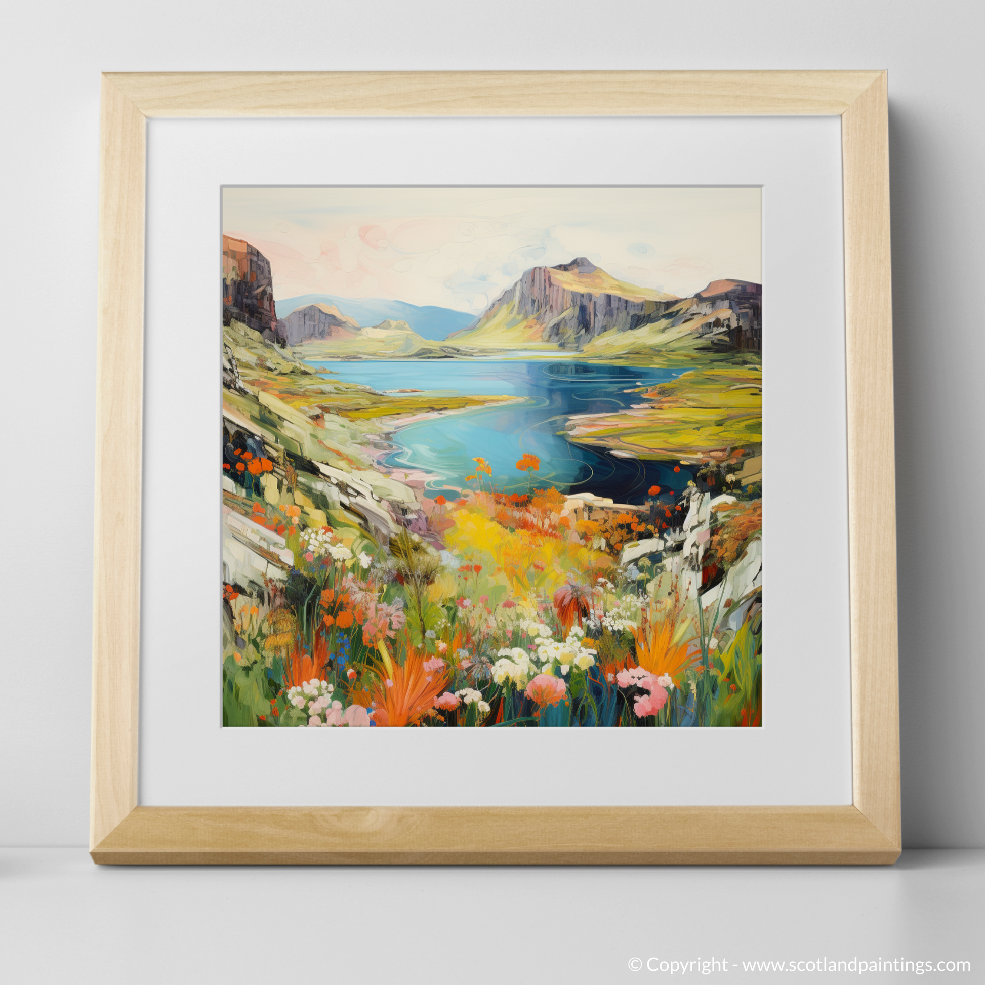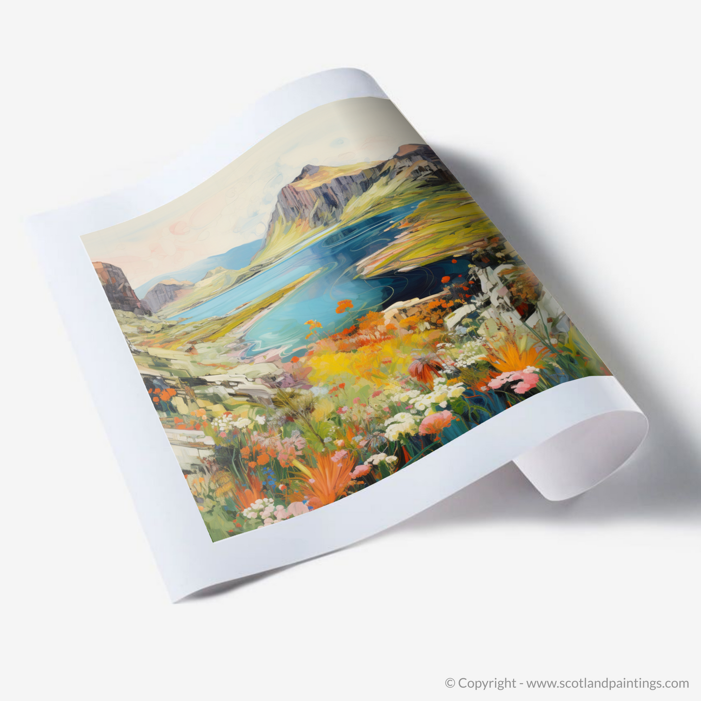 This contemporary print is a testament to the wild, untamed beauty of the Isle of Skye during the summer months, offering a piece of the Scottish highlands' eternal charm to be admired on any wall it graces.