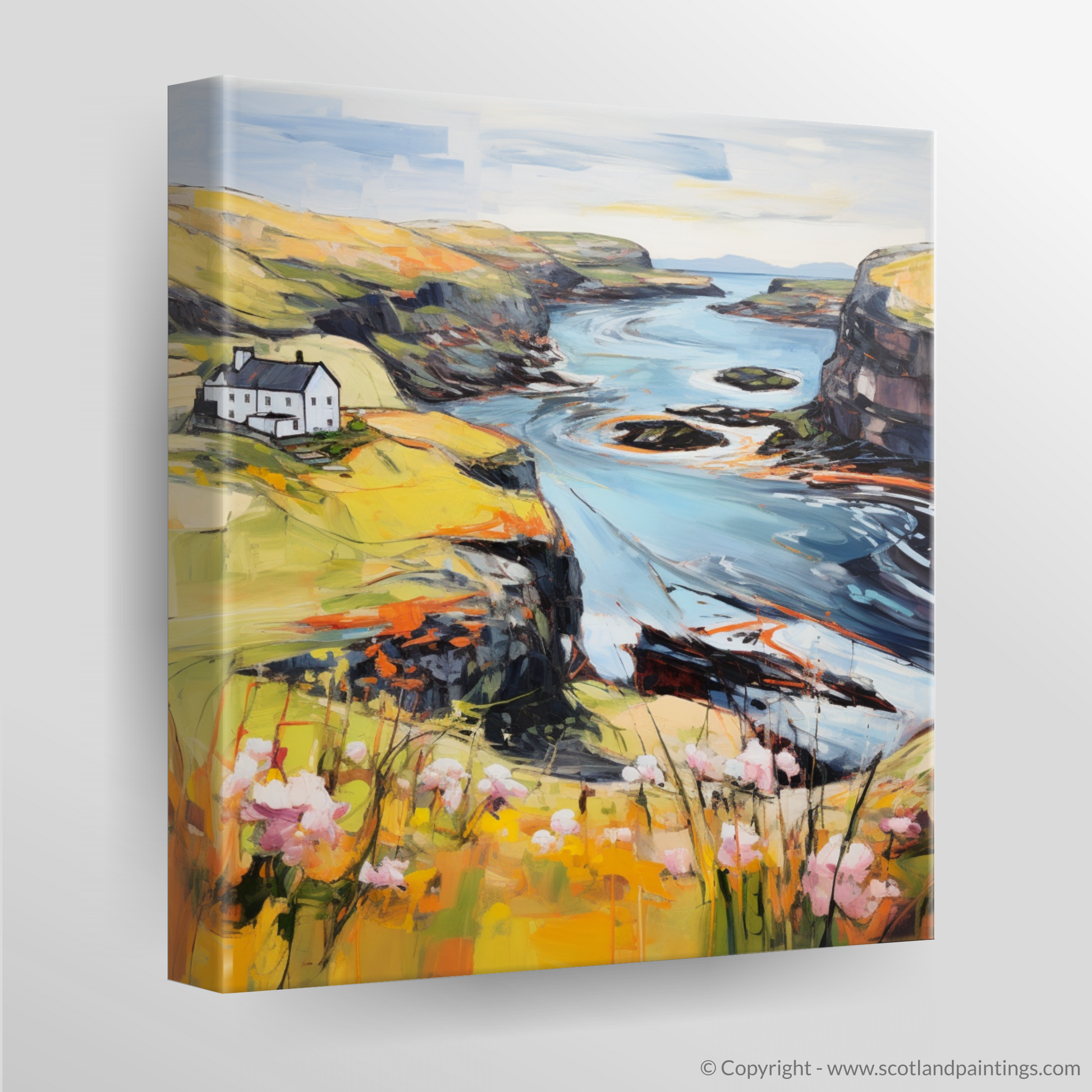 Painting and Art Print of Shetland, North of mainland Scotland in summer entitled "Summer Serenity in Shetland - A Contemporary Coastal Canvas".