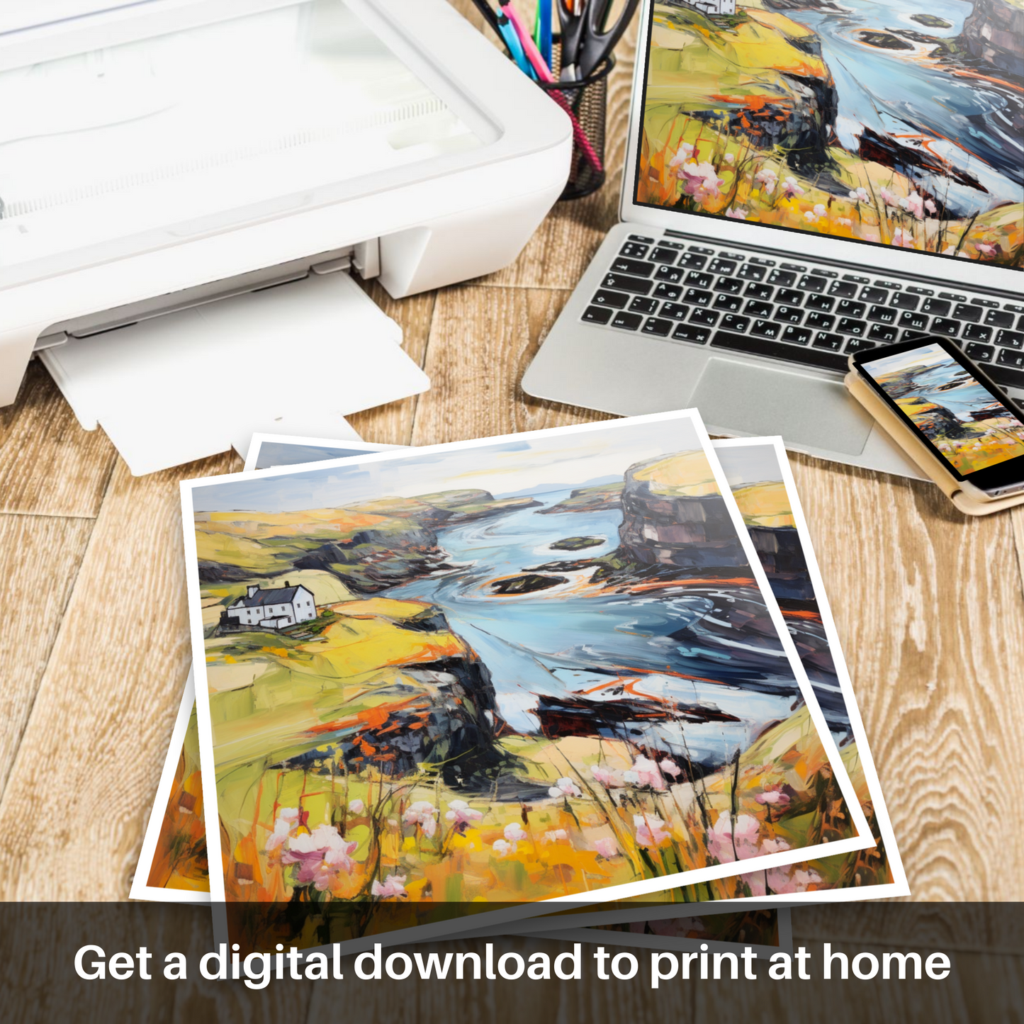 This contemporary interpretation of Scotland’s northern gem offers a blend of abstract and representational elements that evoke both the spirit of place and the freedom of artistic expression. As part of the 'Scotland in Summer' collection, this print is a testament to the untamed beauty of the Shetland Isles, offering an enduring piece of this breathtaking landscape to grace any space.