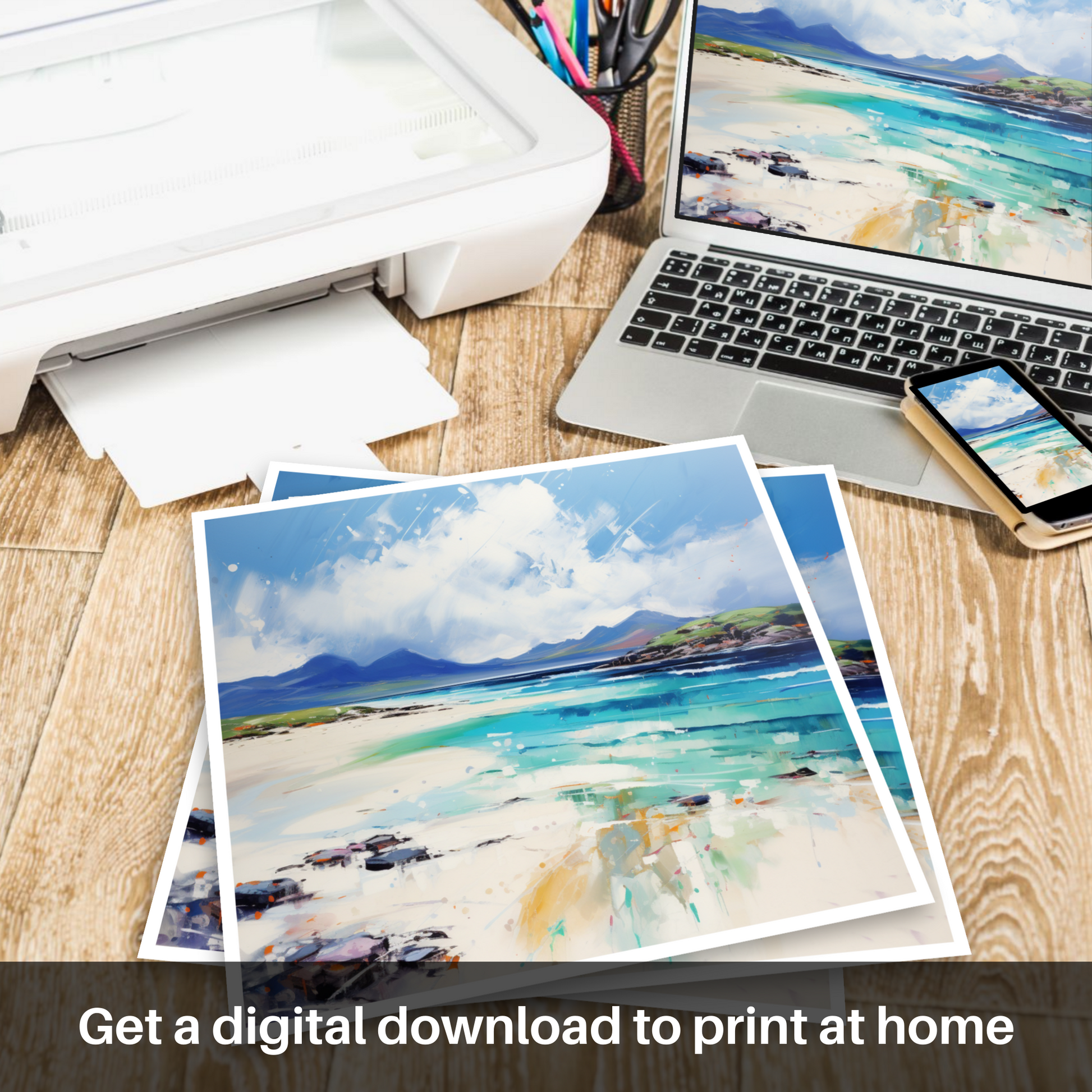 Painting and Art Print of Seilebost Beach, Isle of Harris in summer entitled "Abstract Seilebost: A Scottish Summer Symphony".