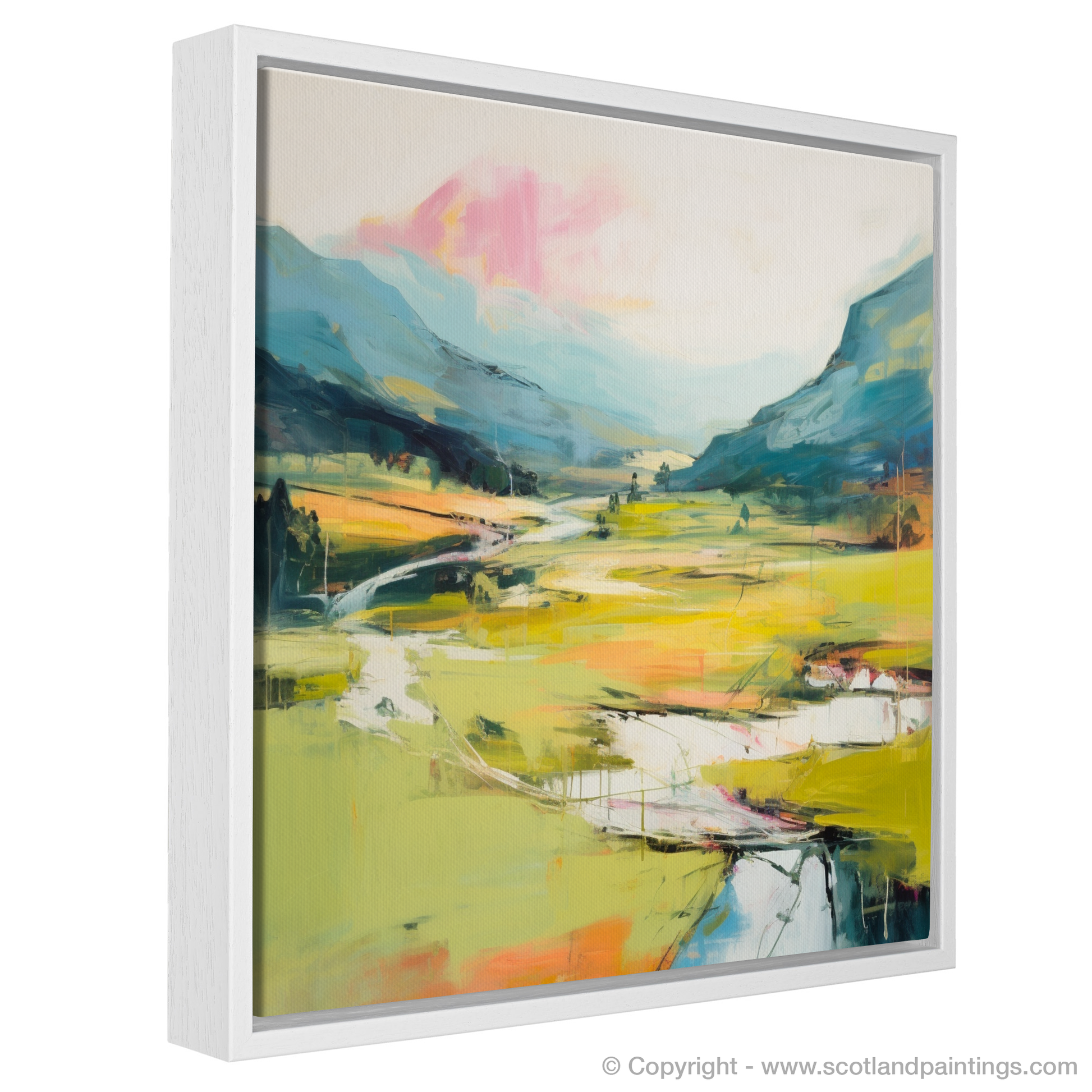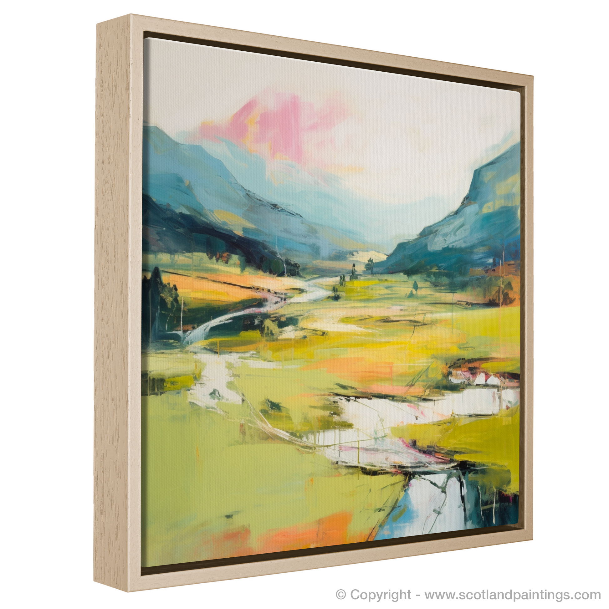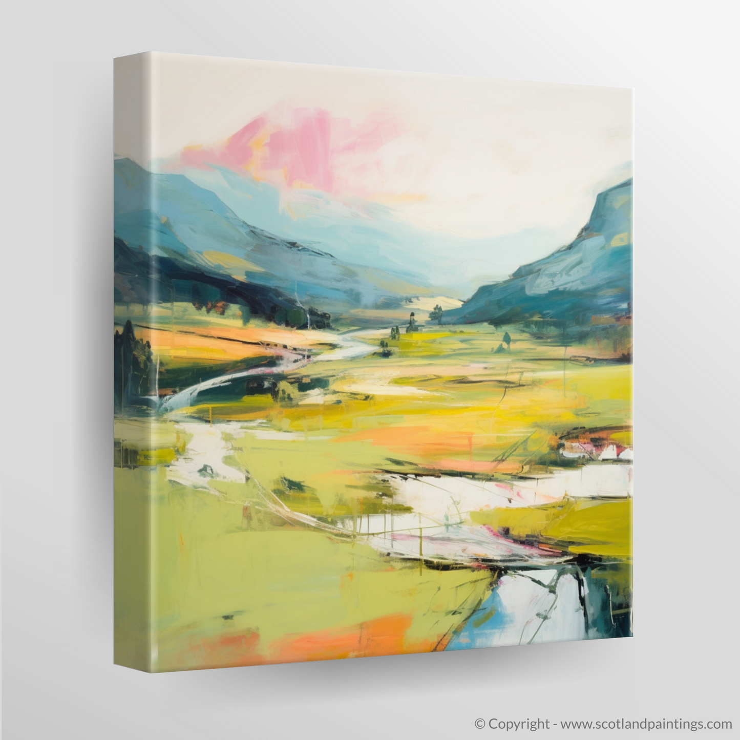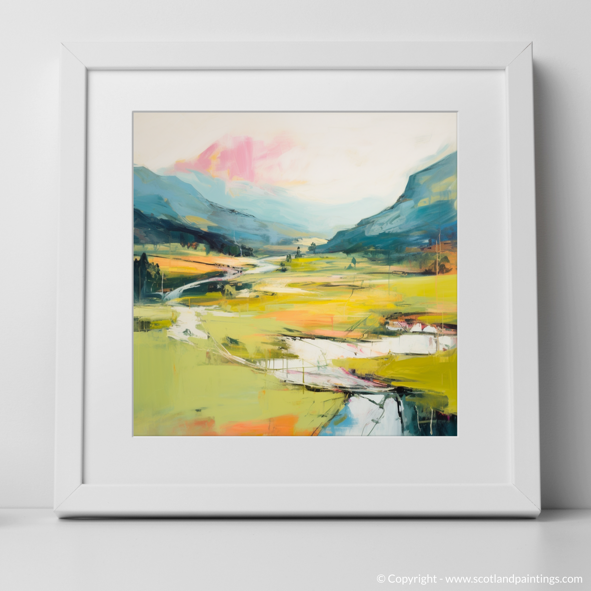 This stirring abstract print offers a contemporary interpretation of the sweeping vistas of Glen Tilt, Perthshire during the halcyon days of summer. The kaleidoscope of colours splashed across the canvas captures the essence of the verdant landscape, as vibrant hues of yellow, green, and hints of pink evoke the warmth and growth of the season.
