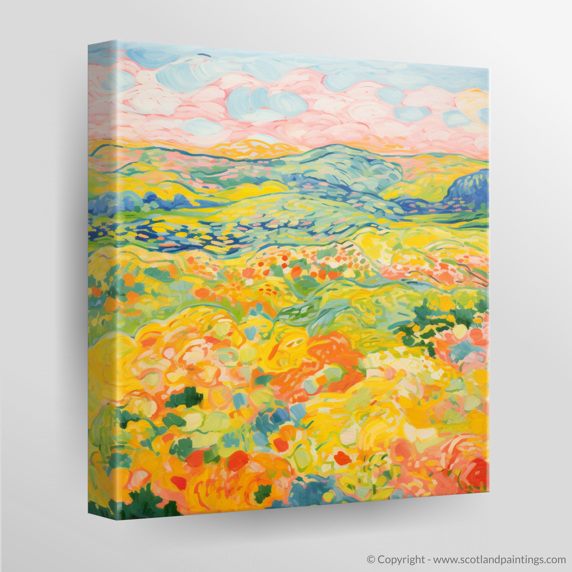 This piece offers an abstract interpretation where the usual boundaries of landscape features blend into a harmonious whole. The composition's pulsating rhythms and sweeps of colour transport one to a place where the senses are awakened, and the spirit of Glenesk's summer is vividly brought to life. It is a celebration of the season, sure to add a splash of colour and a touch of Scottish charm to any space.