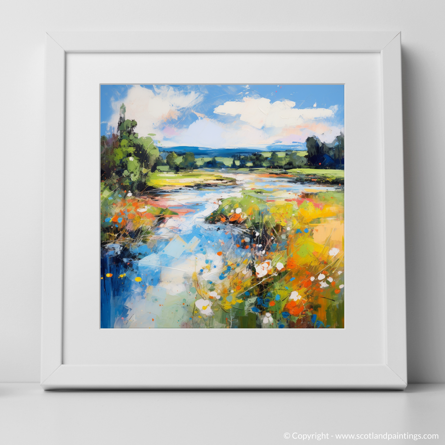 This print is an invitation to let the imagination roam free through the abstract shapes and forms, discovering the essence of a Scottish summer at its most joyous and alive. The essence of the landscape is captured with an expressive freedom that encourages a personal connection and evokes the sensory delights of a warm, breezy day by the river. Ideal for those who appreciate contemporary interpretations and wish to bring a touch of Scotland's natural beauty into their space.