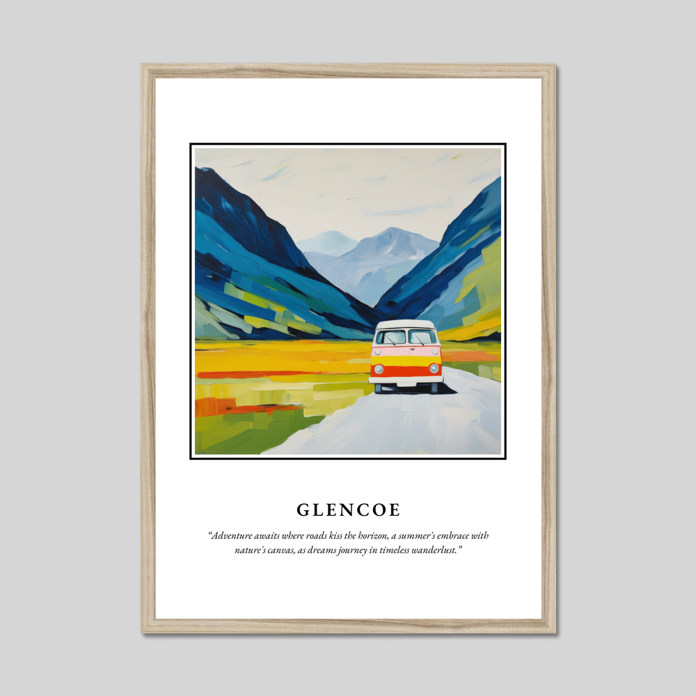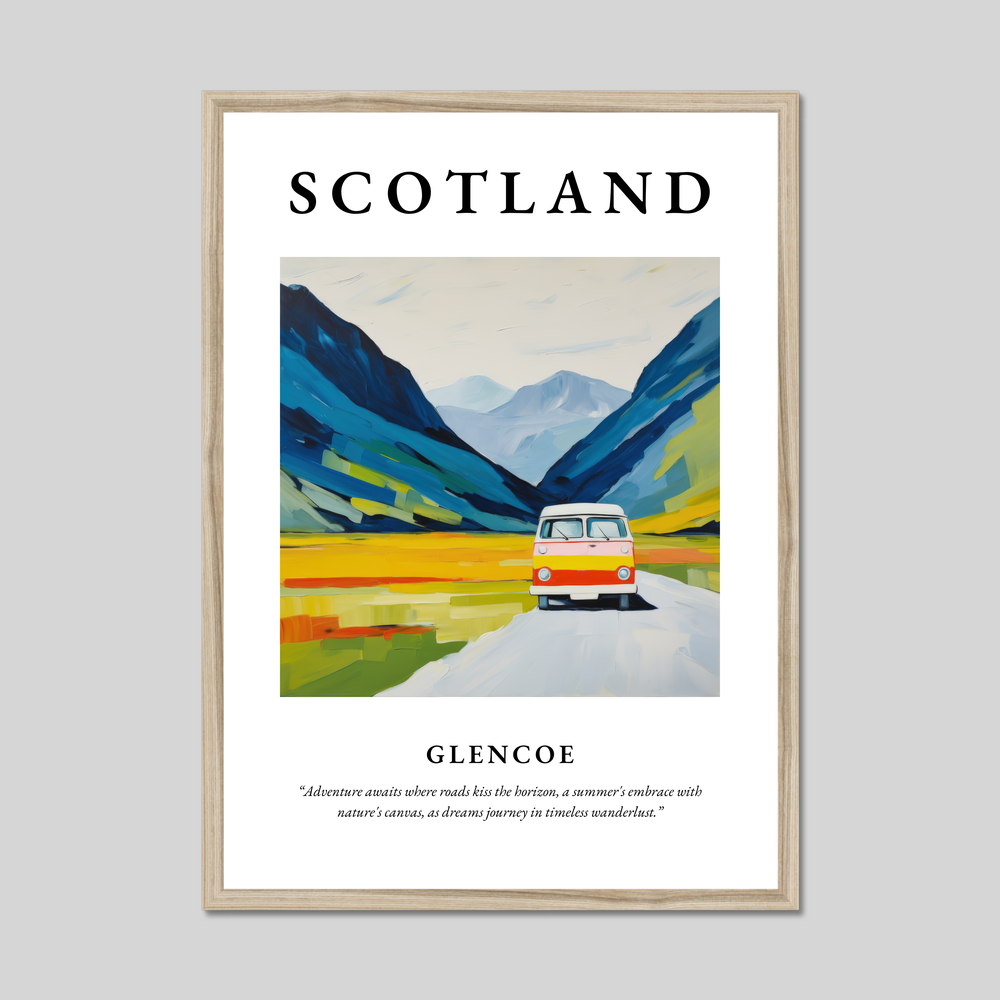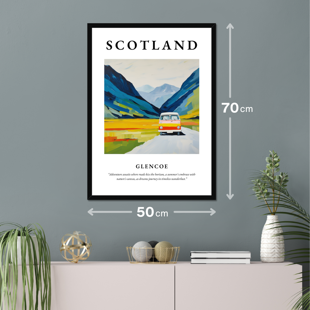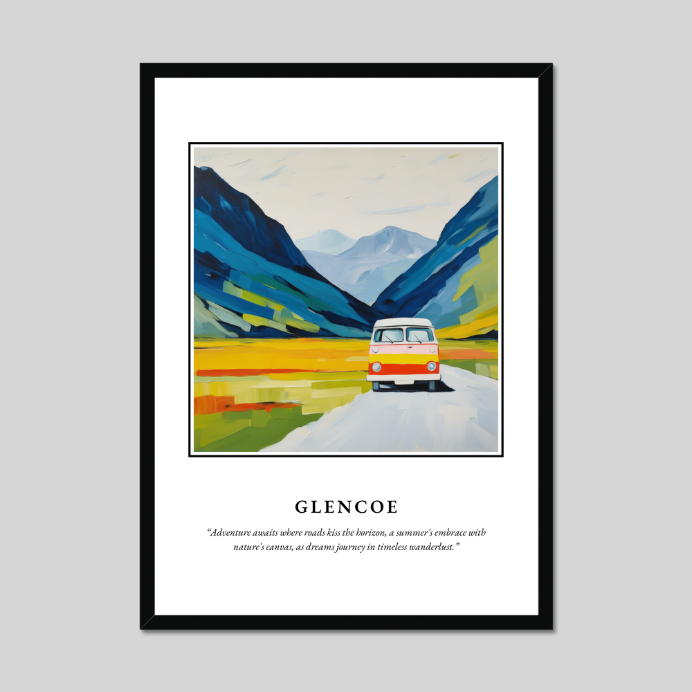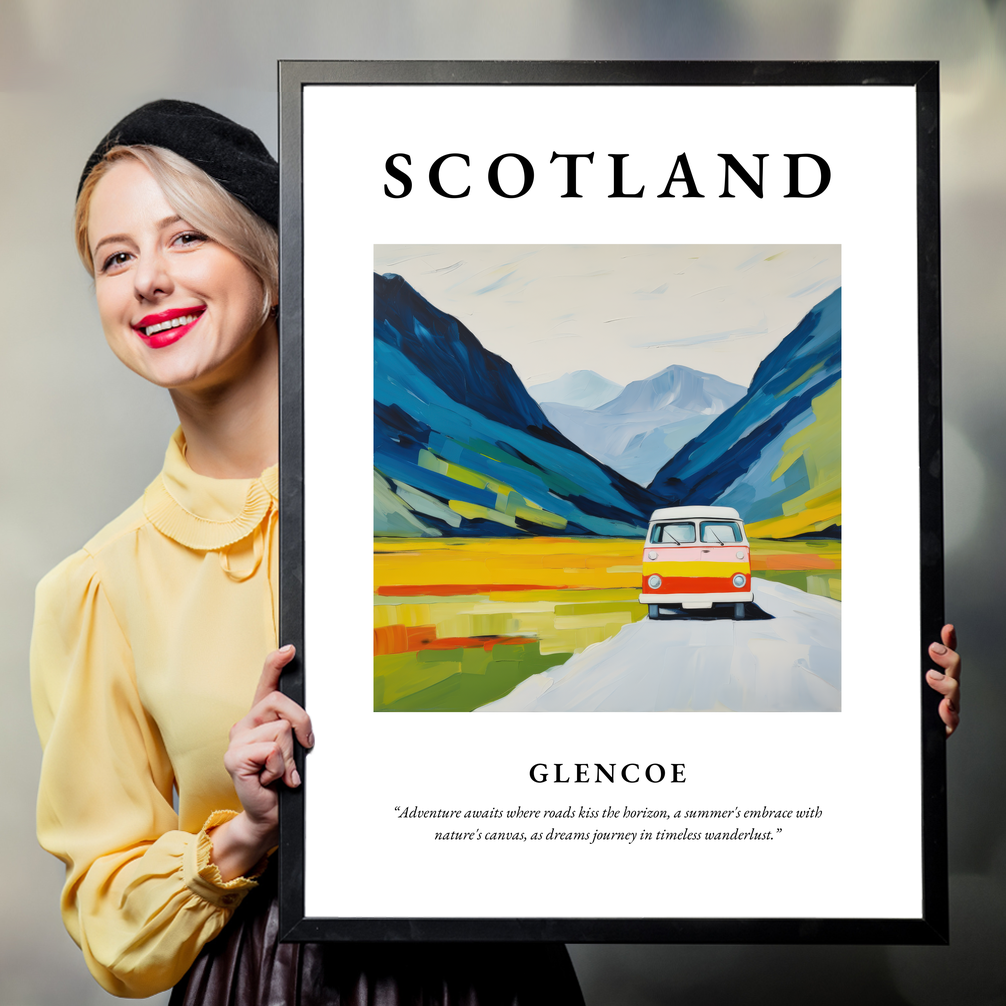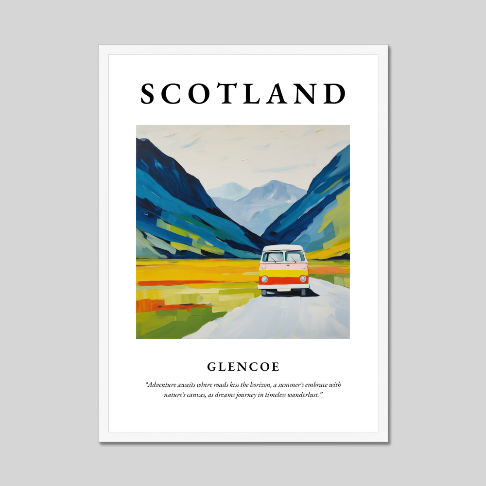 Whether you've visited Glencoe or dream of experiencing its allure, this poster serves as an enduring reminder of Scotland’s wild and beautiful heart. Let it transport you to a land where every journey is filled with promise, and every view offers the promise of adventure.