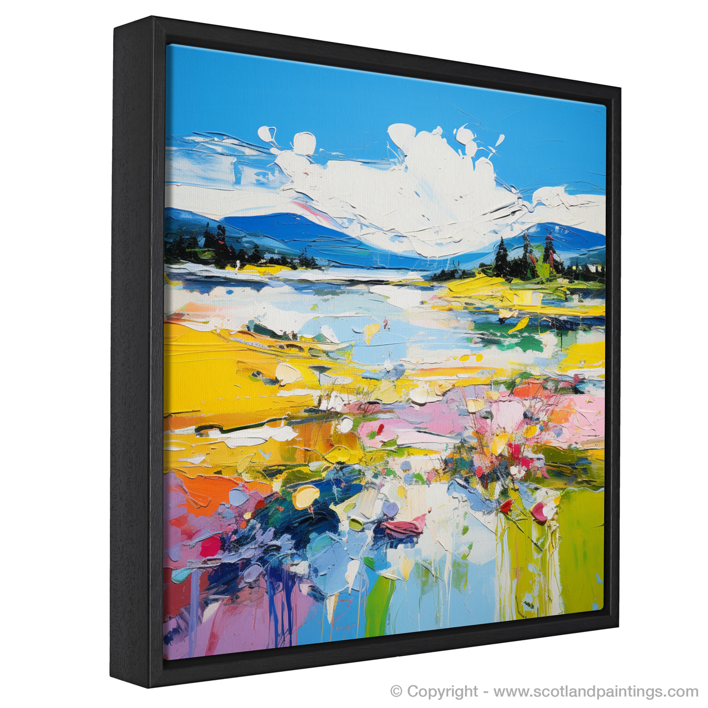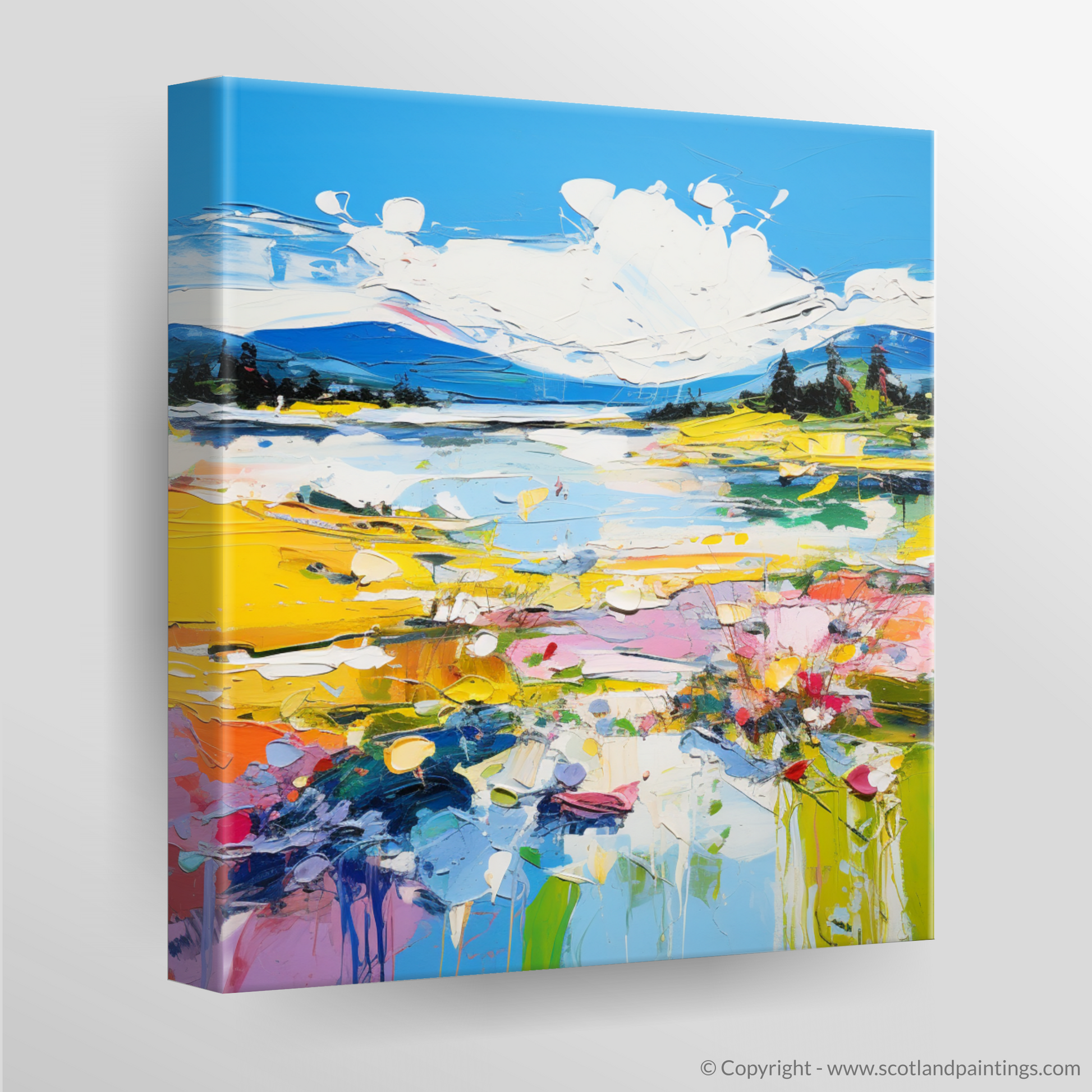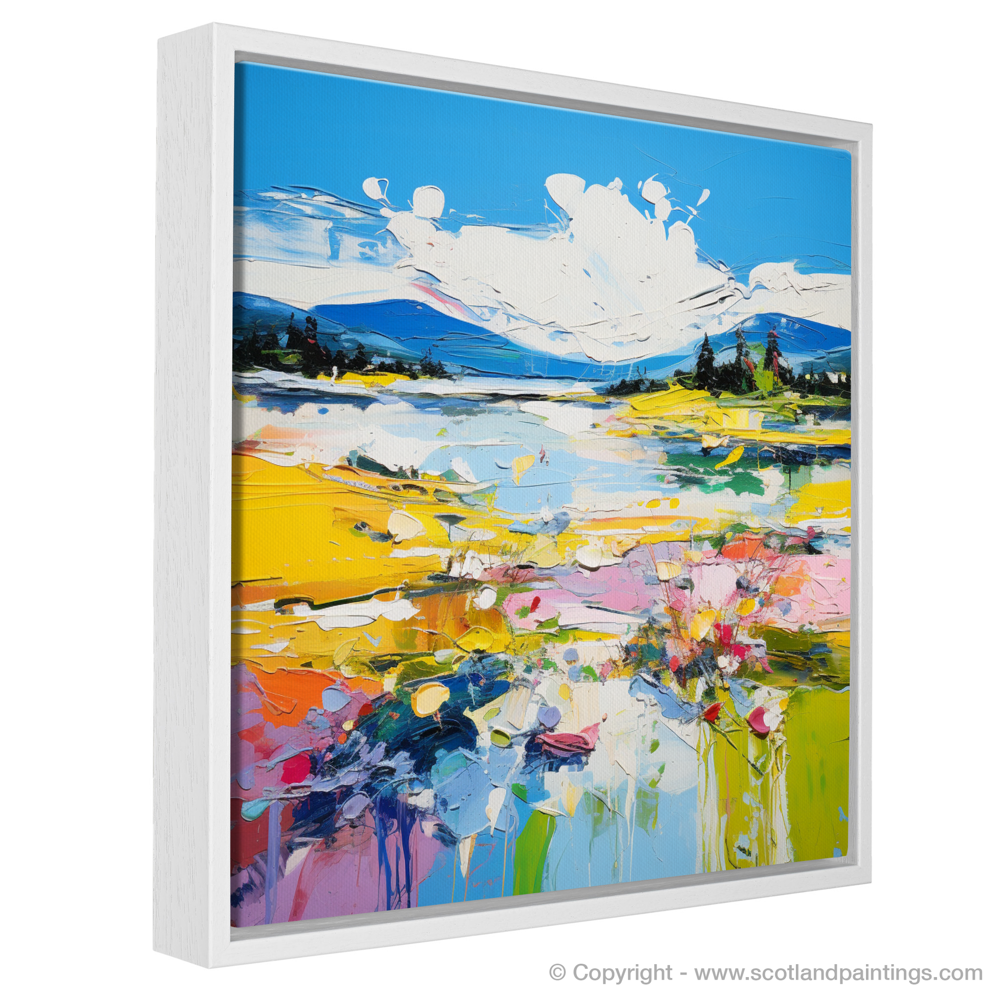 Capture the essence of Ayrshire's Loch Doon with this vibrant abstract print, a feast for the eyes that portrays the natural beauty of Scotland during the bright, flourishing months of summer. Bold strokes of white evoke the dynamic Scottish sky, where clouds appear to dance whimsically above the tranquil waters. Bursts of yellow and blue mirror the sun's reflection off the loch's surface, bringing a sense of warmth and radiance to the composition.