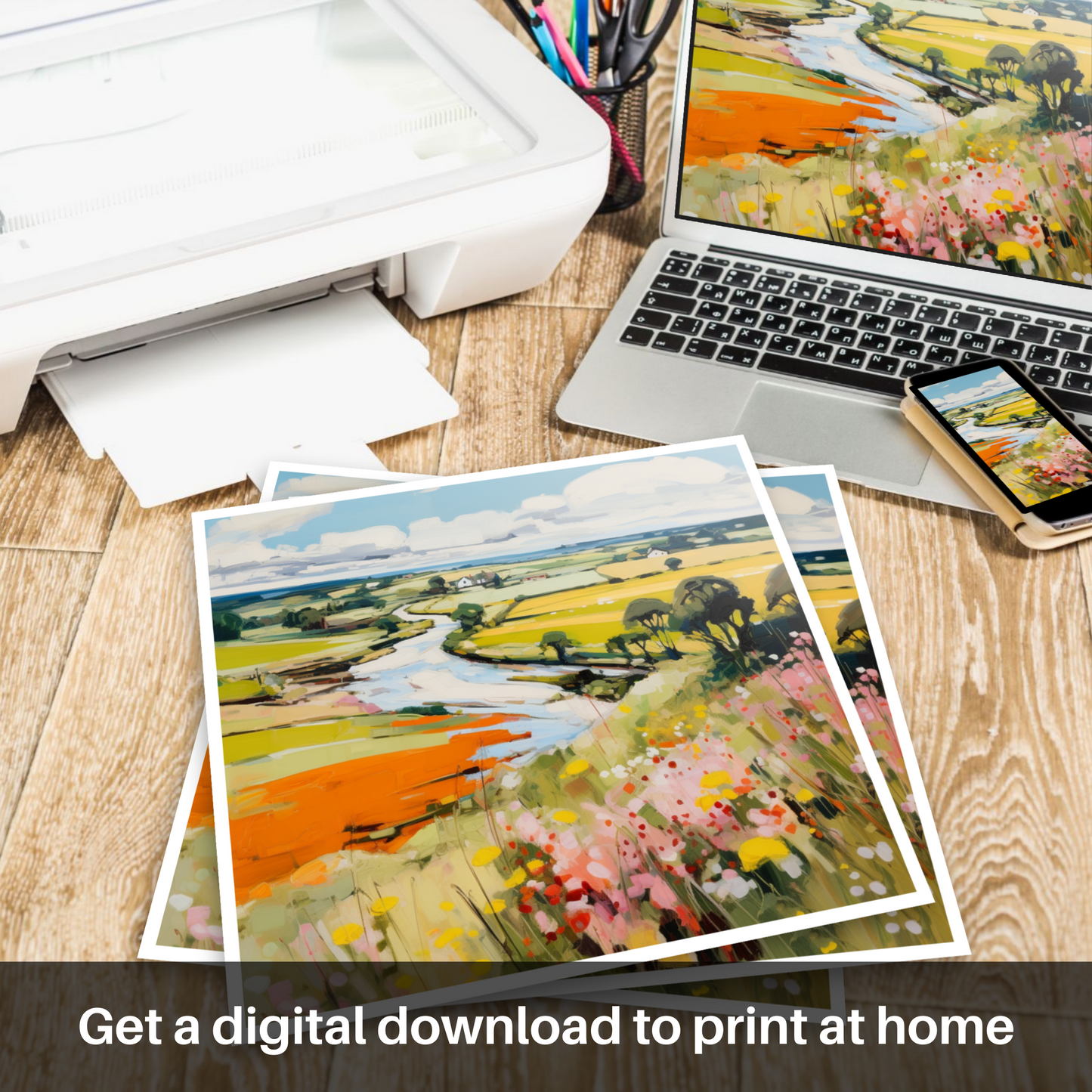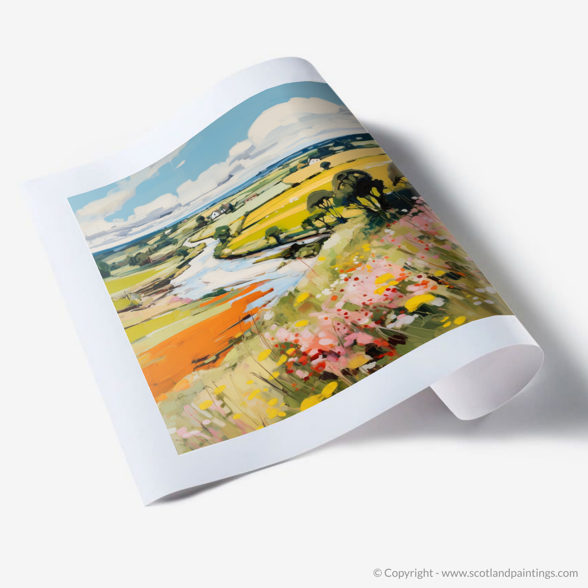 This print is a symphony of abstract elements that together form an homage to the Scottish summertime, offering a piece that is as much an invitation to feel as it is to observe. It holds a sense of place that is both specific and universal, perfect for anyone who wishes to bring the spirit of Scotland's pastoral landscapes into their home.