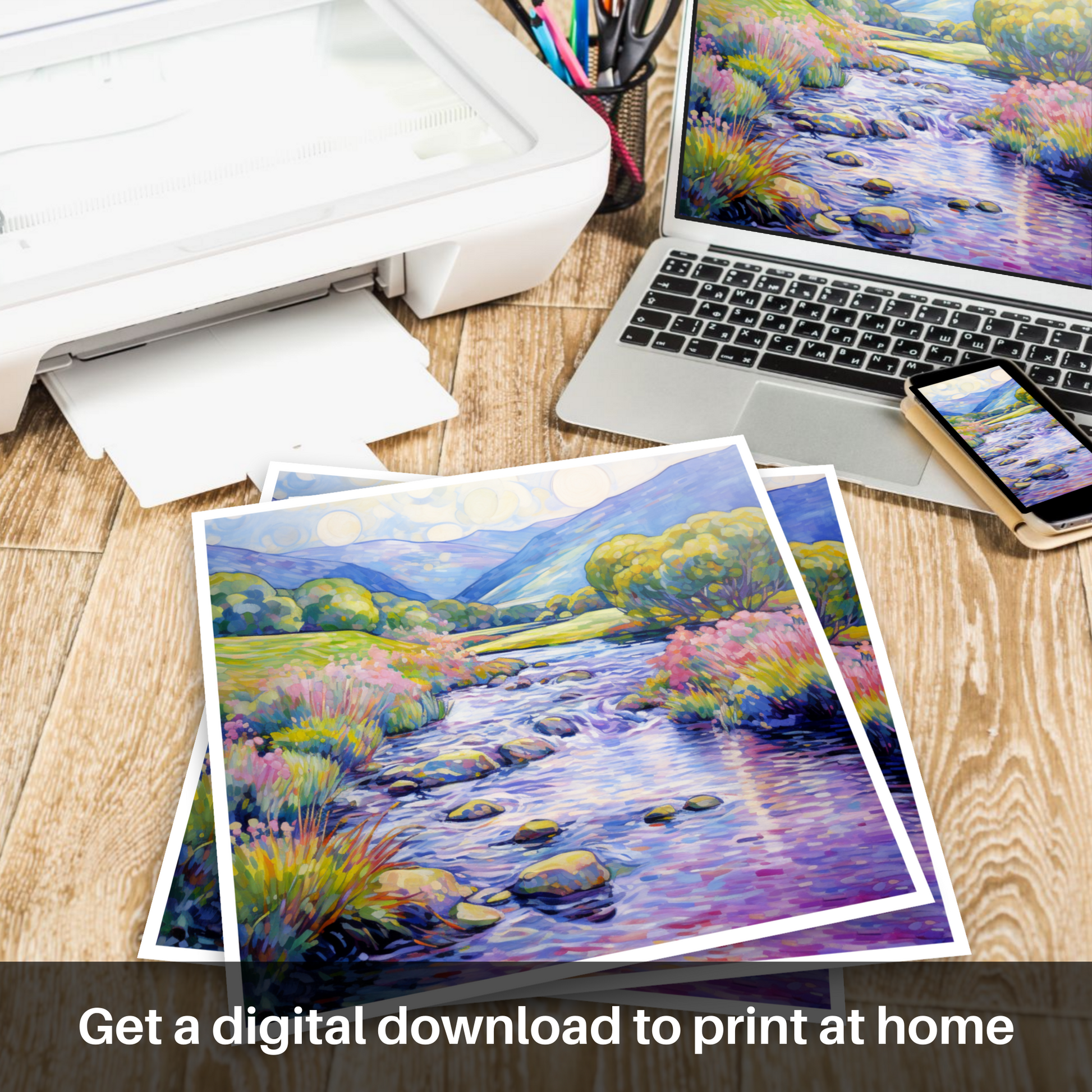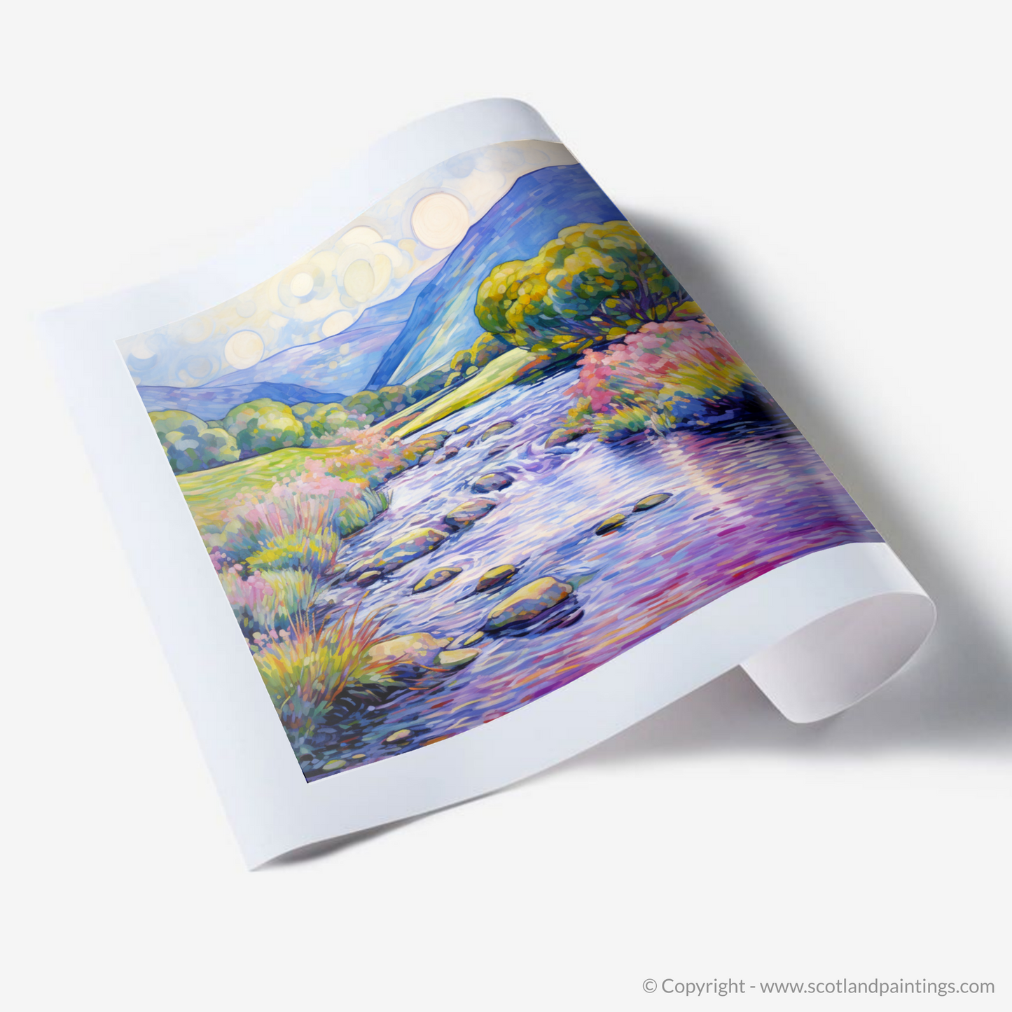 Capture the essence of Scotland's natural beauty with a vibrant print inspired by the picturesque River Orchy in Argyll and Bute. This exquisite piece is a symphony of colour and light, reflecting the radiant hues of a summer’s day in the Scottish countryside.
