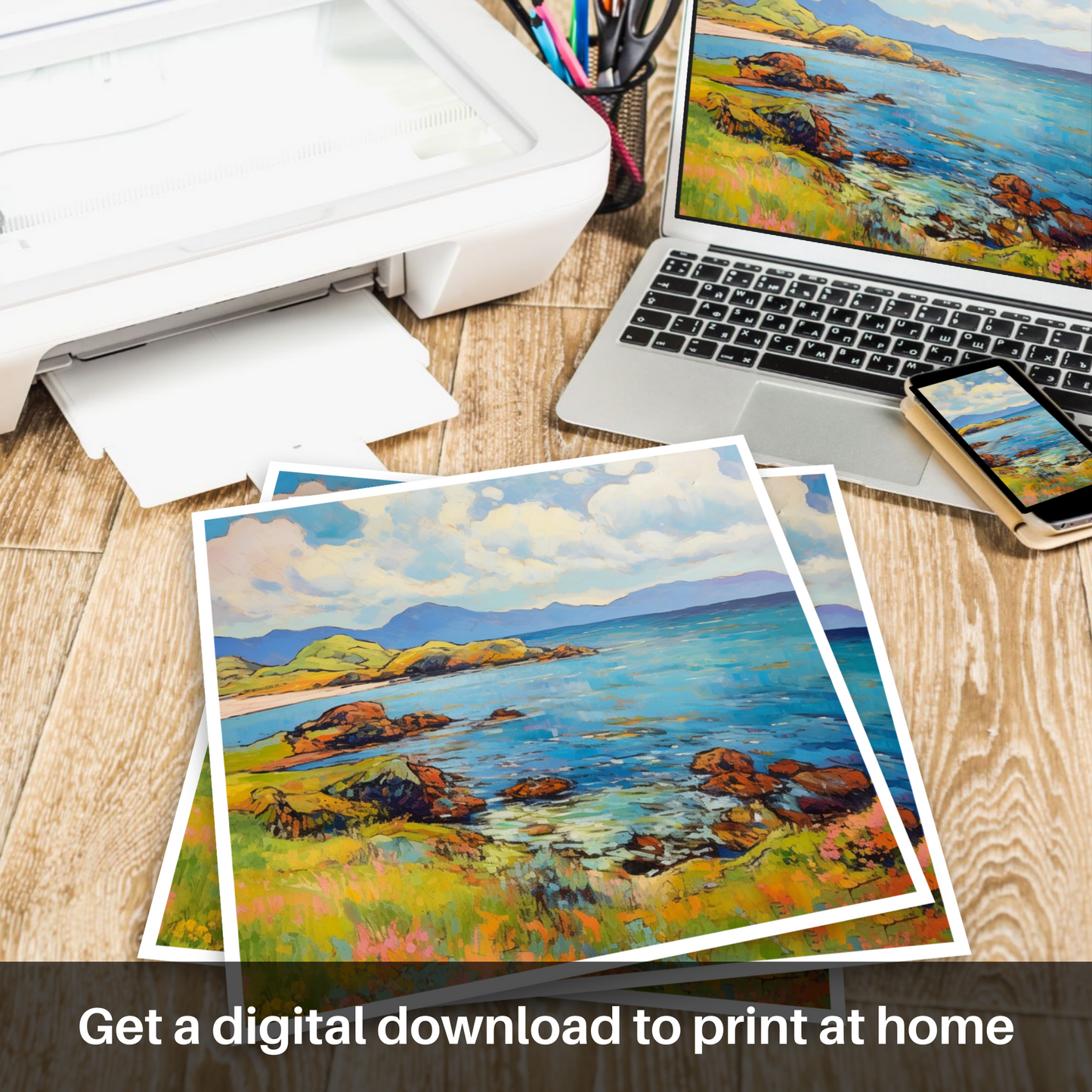 This painterly print invites viewers to bask in the serenity of Jura's enchanting scenery, making it an alluring addition to any space that seeks a touch of Scotland's timeless charm.