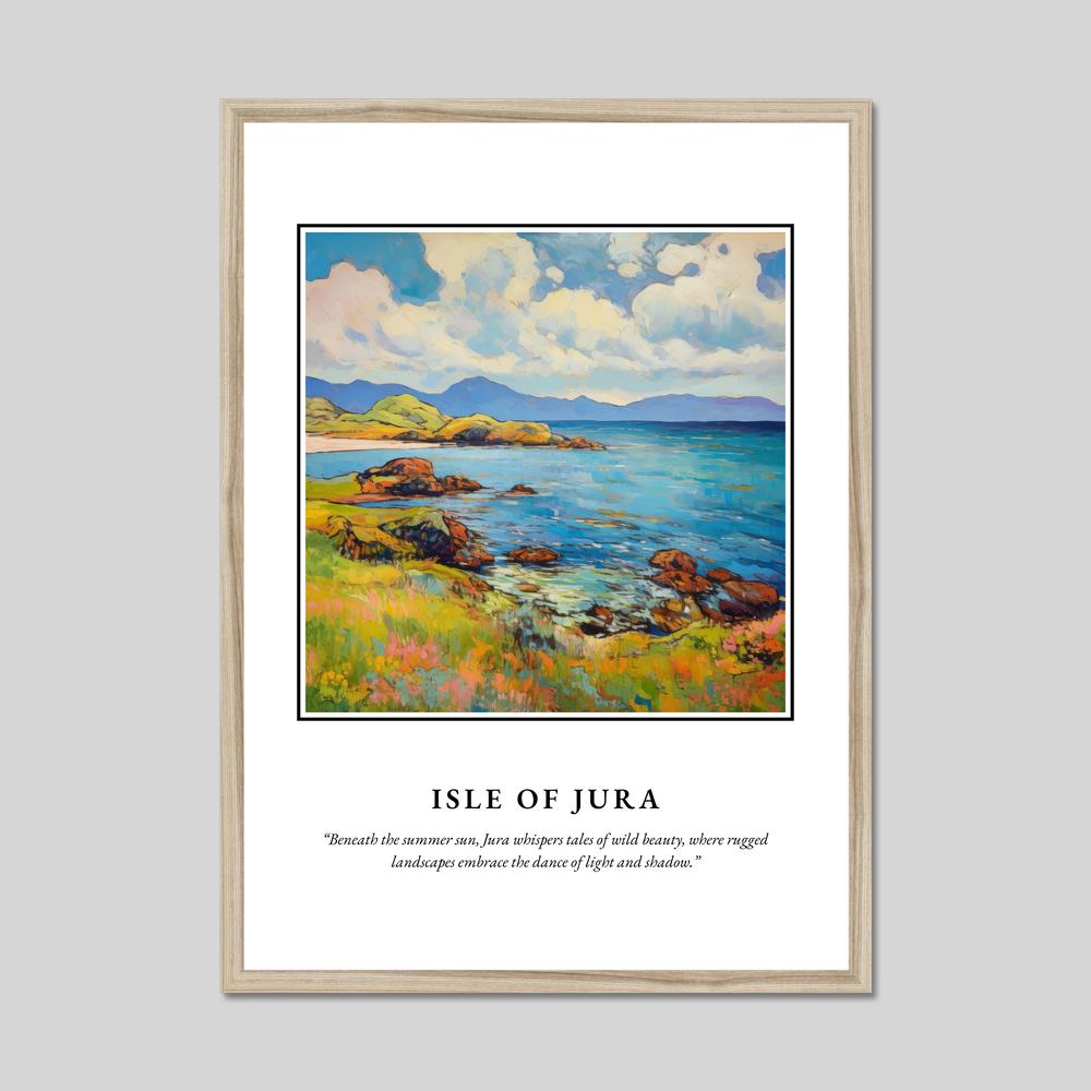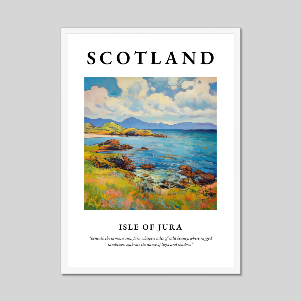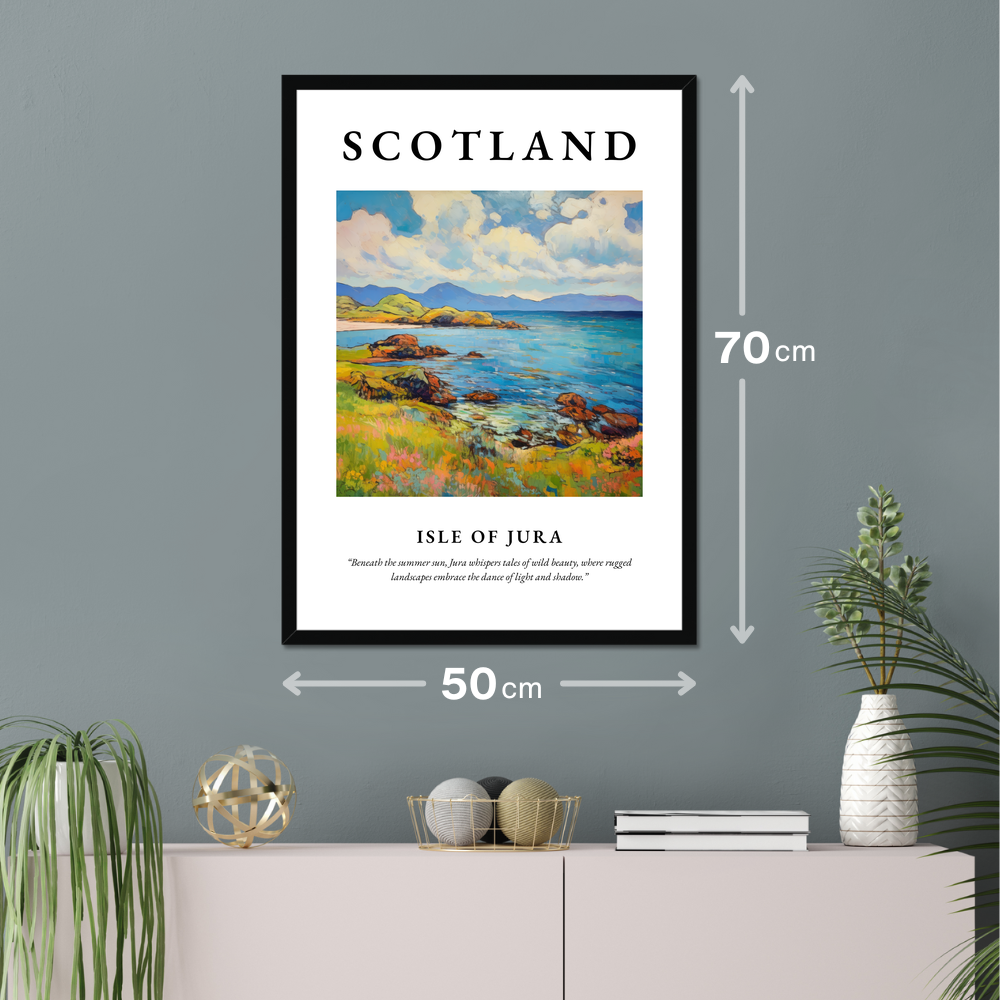 Immerse yourself in the enchanting beauty of Scotland with our stunning framed poster print, designed to capture the spirit of the Isle of Jura. Measuring an expansive 50cm x 70cm, this eye-catching piece is perfect for art aficionados, travel enthusiasts, or anyone with a profound connection to this idyllic location.