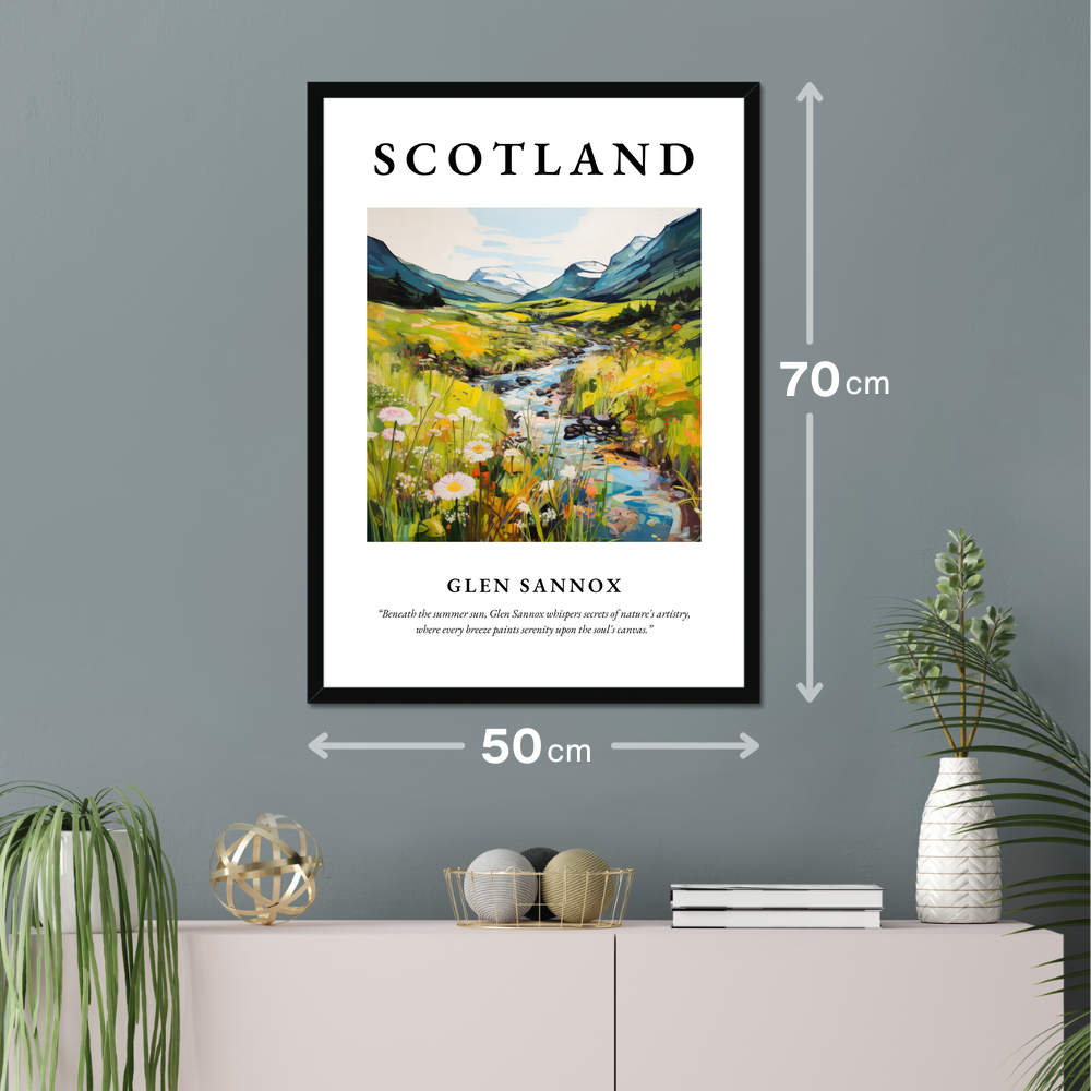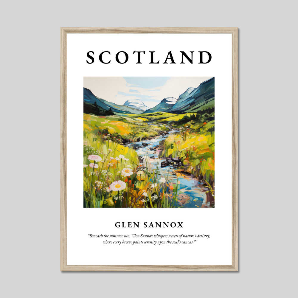 Introducing a captivating piece from our "Scotland in Summer" collection—an exquisite framed poster print that embodies the spirit and beauty of Glen Sannox. With dimensions of 50cm x 70cm, this striking artwork is more than just a visual delight; it's a gateway to emotion and memory. Whether you choose a black, white, or natural wood-effect frame, the poster's presence is profound, effortlessly covering a significant wall area without straining your budget.