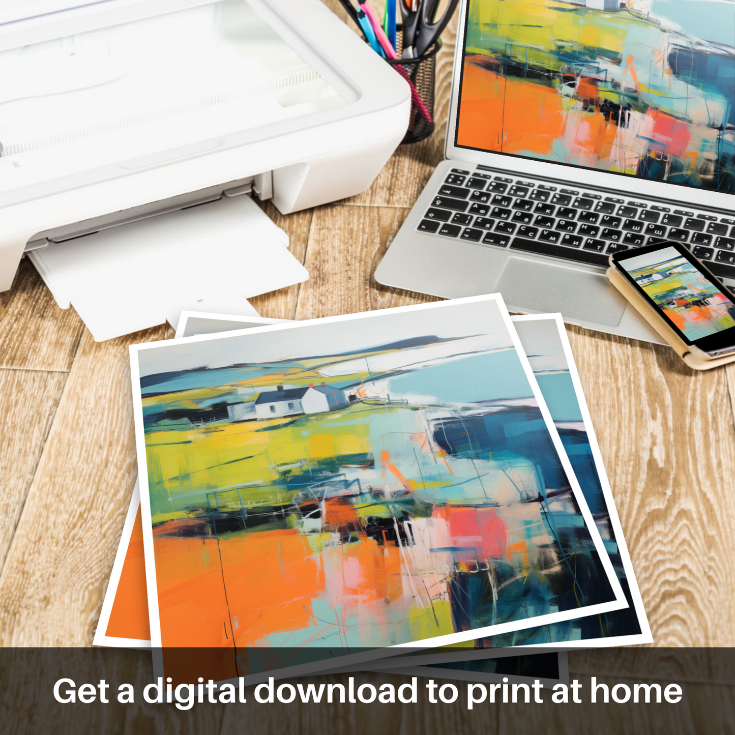 This print is an ode to the Scottish summer, inviting the observer to revel in the abstract beauty and vibrant atmosphere of Orkney, a truly captivating element of the 'Scotland in Summer' collection.